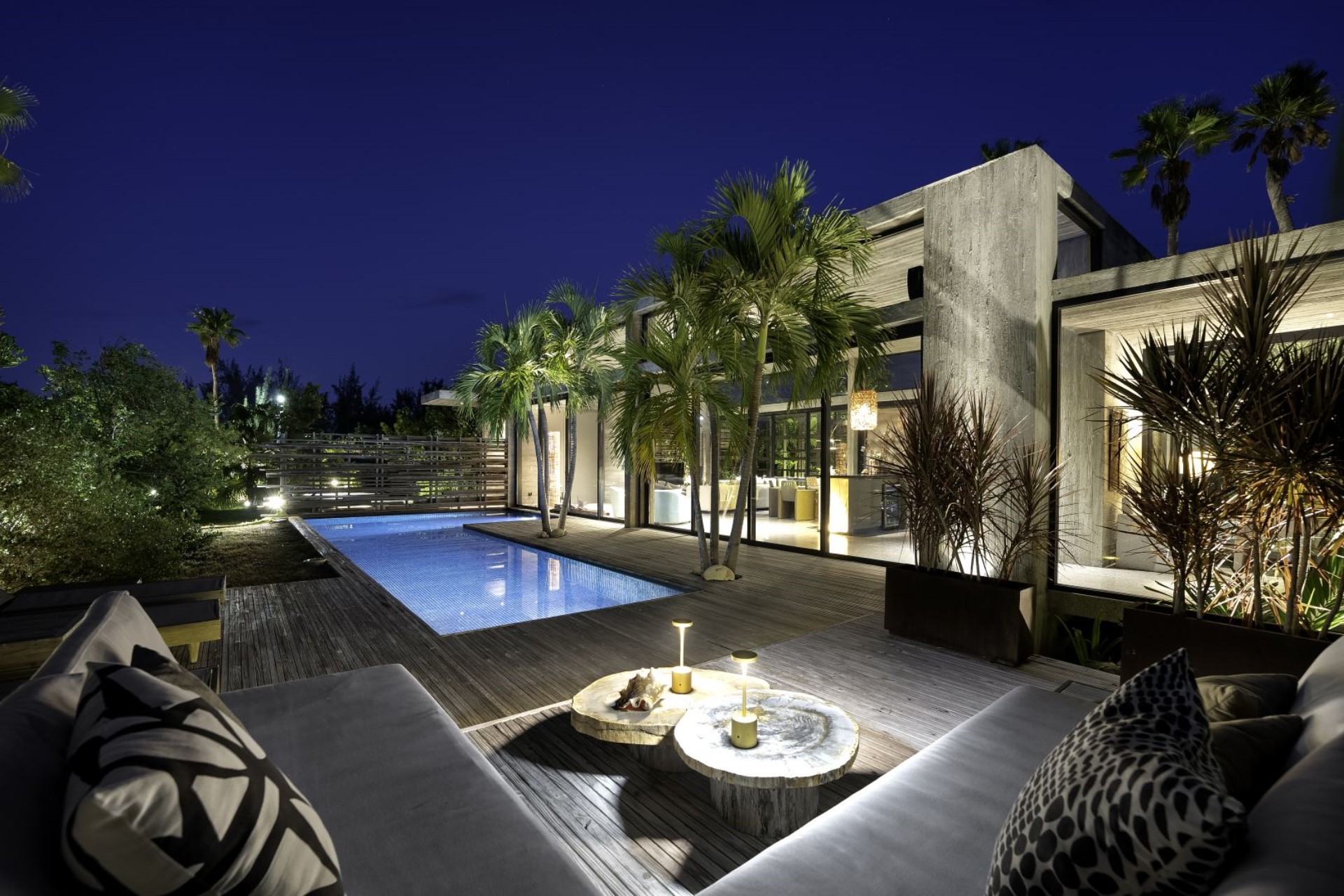 Villa Islander captures the essence of tropical living featuring extensive open plan living spaces designed in a modernist style using floor-to-ceiling windows, comfortable furnishings, natural wood and an amazing palette of greys.