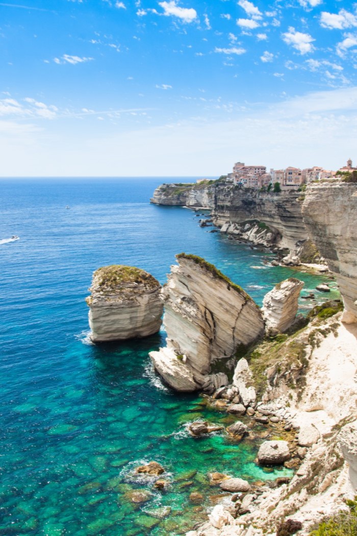 - The pretty Bonifacio, a town with narrow streets and churches perched high on the hills above the sea