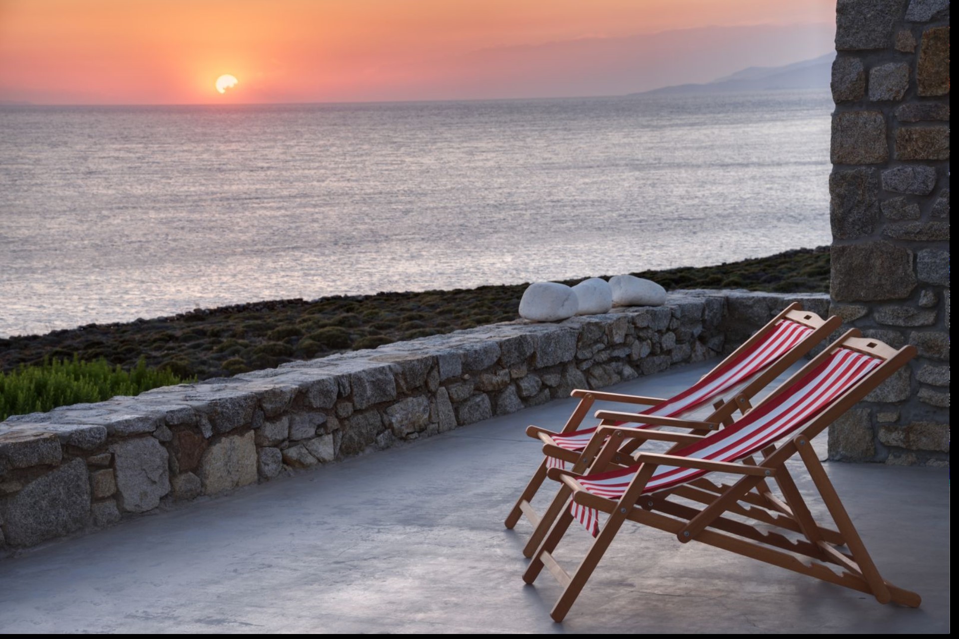 Big Blue Beach Villa enjoys one of the best seafront locations on Mykonos Island, just seven minutes’ drive from the town centre. Guests will be pampered in the most private setting, perfect for relaxing and tranquil holidays with the family. The panoramic views over the surrounding islands and the sunsets are some of the most beautiful in the world.