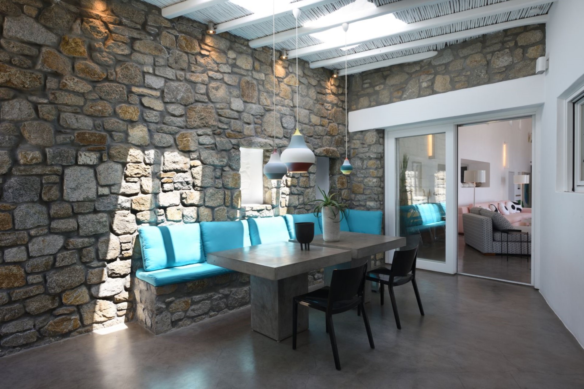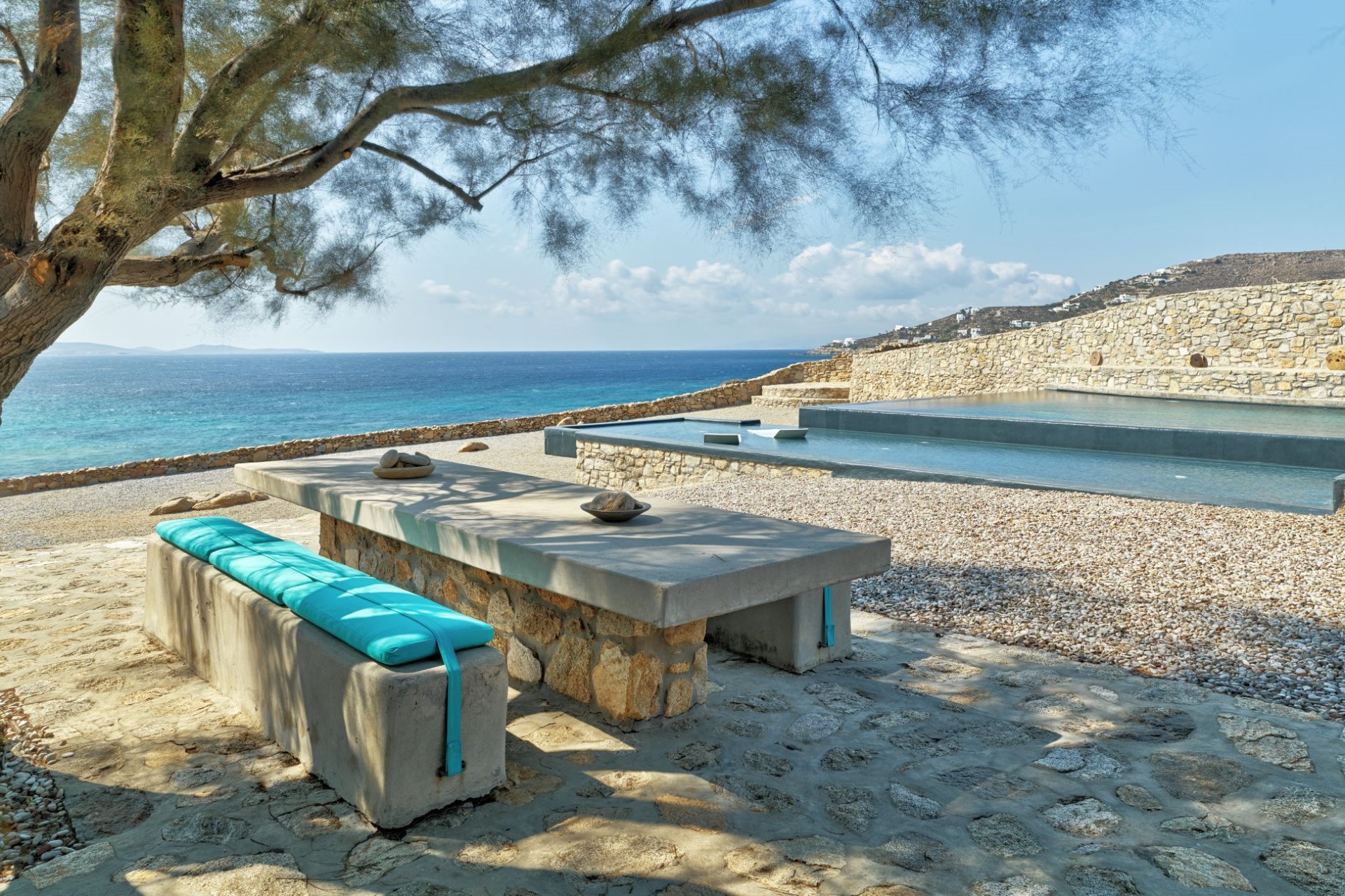 Enjoying a private and beautiful setting in a quiet bay, Big Blue Beach Villa is only 7 km from Mykonos town, striking the perfect balance between the vibrant atmosphere and the intimate feeling of tranquillity.