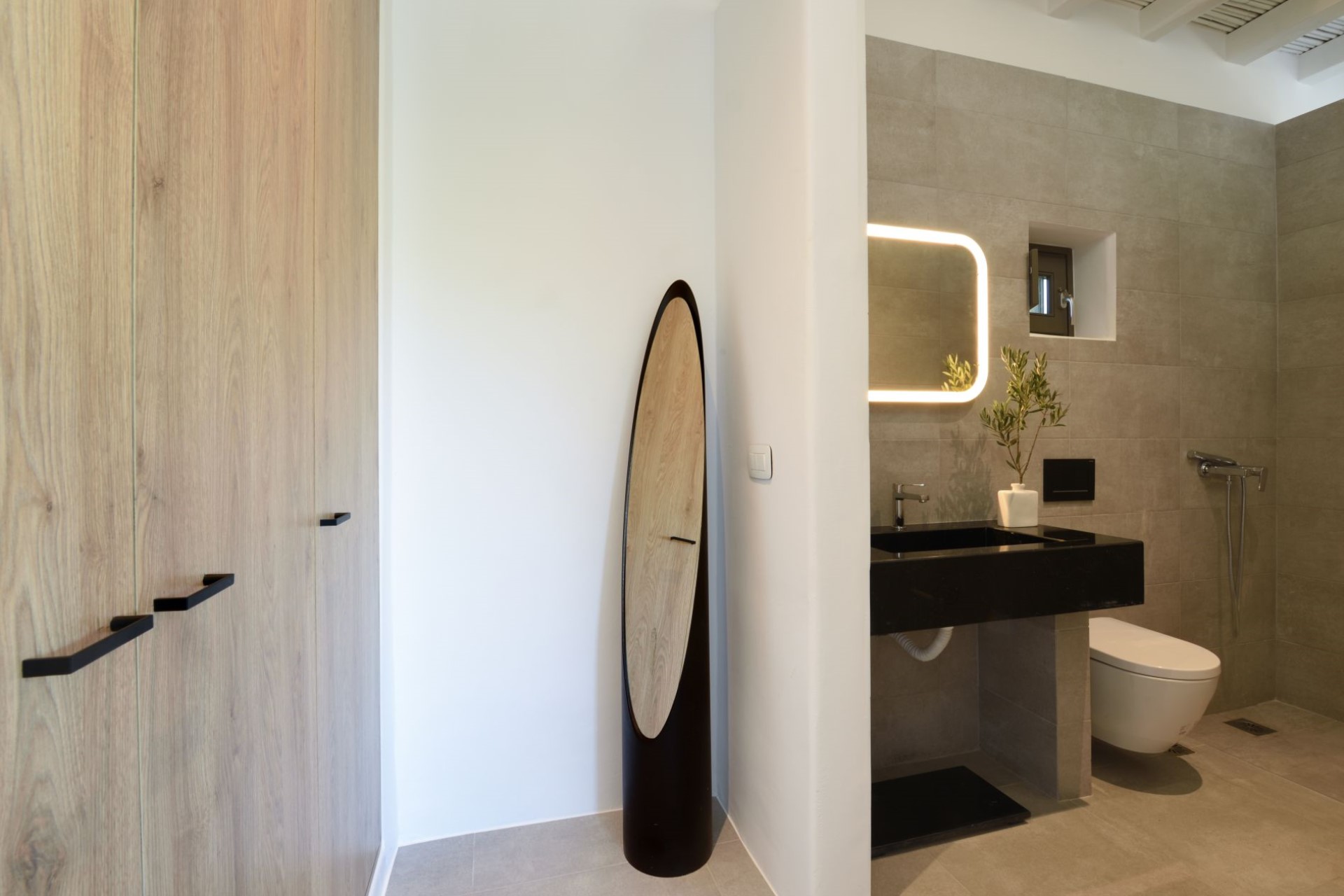 Bedroom 1 (Master) – double bed, walk-through dressing area, study, en-suite bathroom with shower & outdoor Jacuzzi, and private terrace with sea views