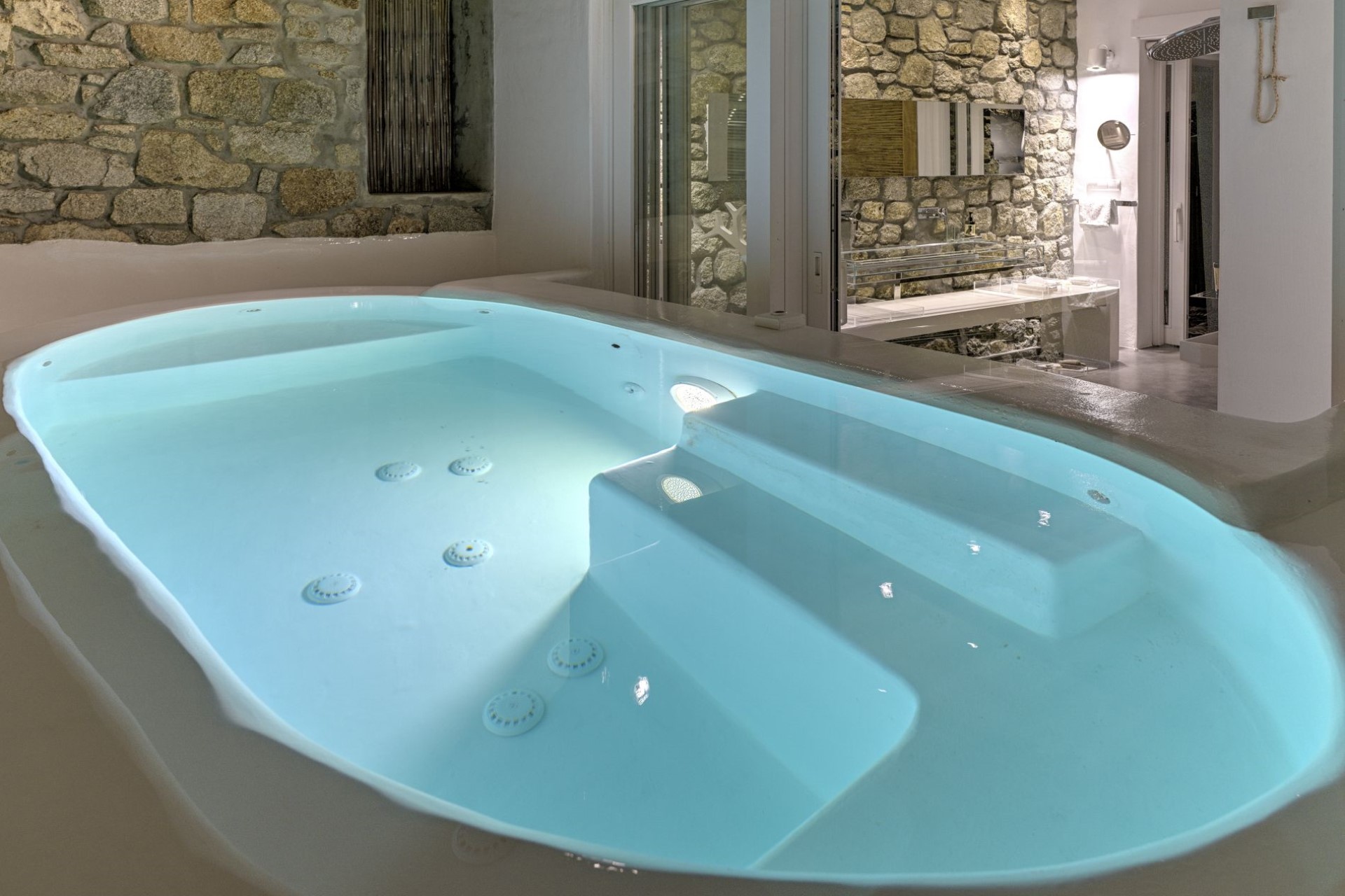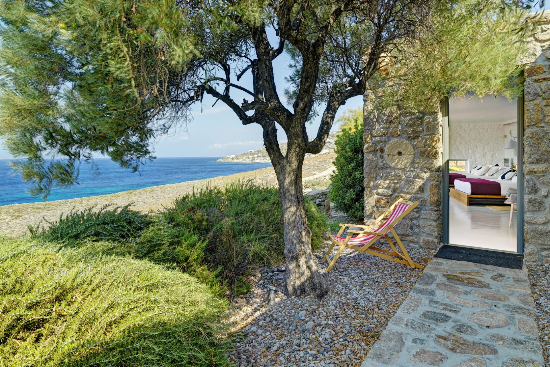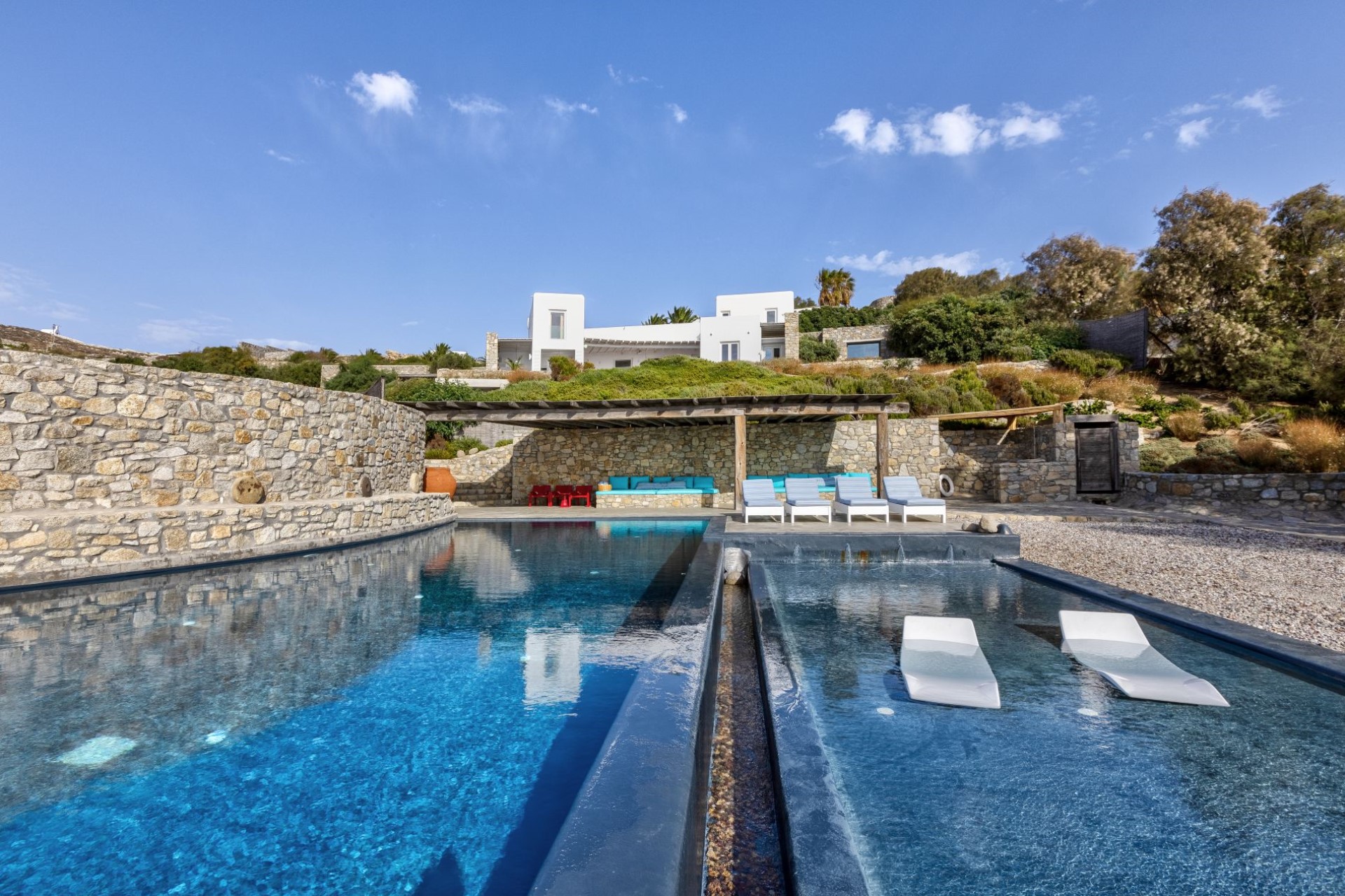Enjoying a private and beautiful setting in a quiet bay, Big Blue Beach Villa is only 7 km from Mykonos town, striking the perfect balance between the vibrant atmosphere and the intimate feeling of tranquillity.
