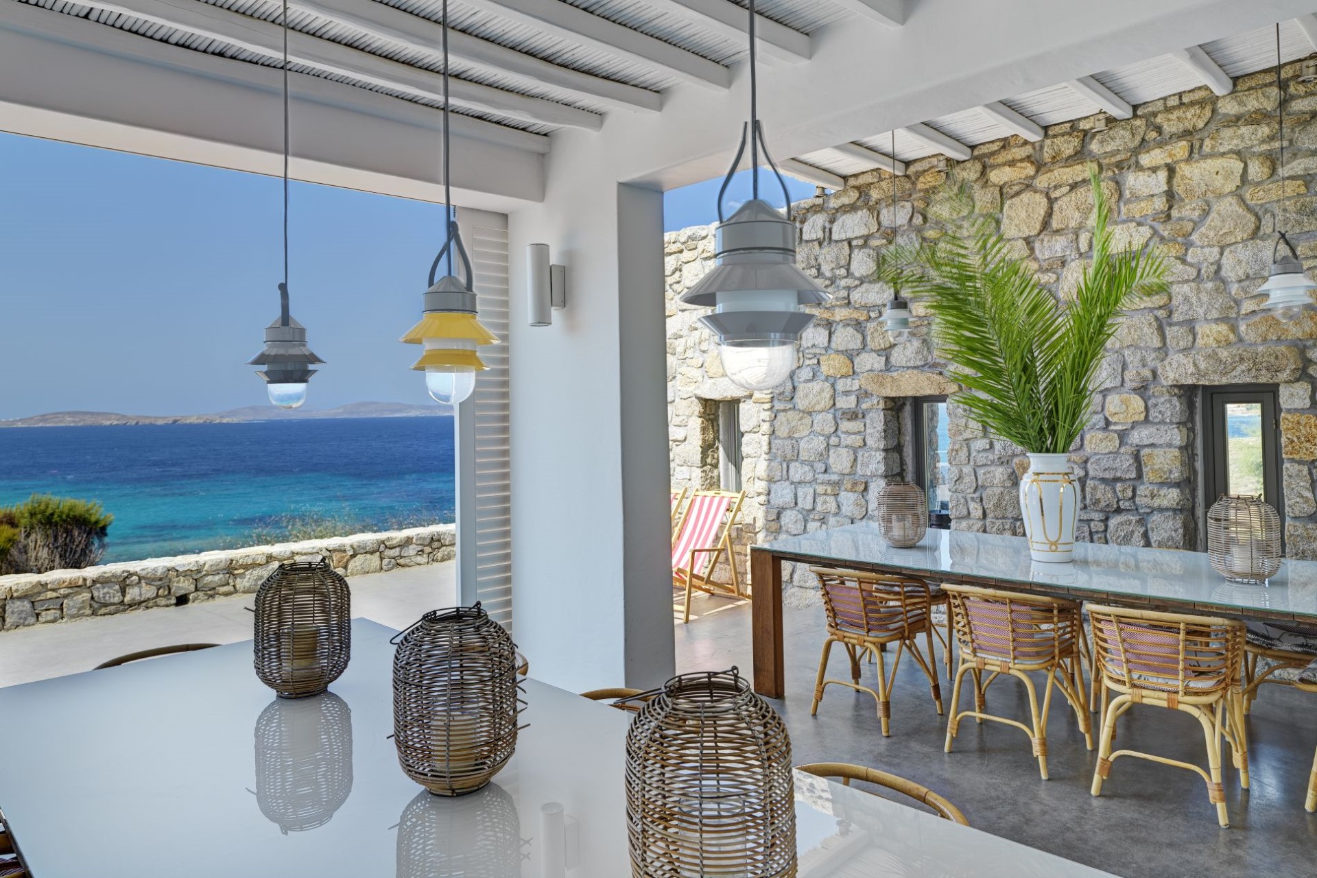 Big Blue Beach Villa enjoys one of the best seafront locations on Mykonos Island, just seven minutes’ drive from the town centre. Guests will be pampered in the most private setting, perfect for relaxing and tranquil holidays with the family. The panoramic views over the surrounding islands and the sunsets are some of the most beautiful in the world.