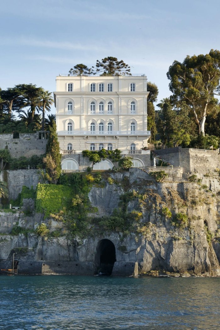 Villa Astor is a luxury property perched on top of a cliff on the Sorrentino coast. Thanks to its privileged location, the holiday villa affords impressive views of the neighboring bays, the Mediterranean Sea and of Vesuvius.