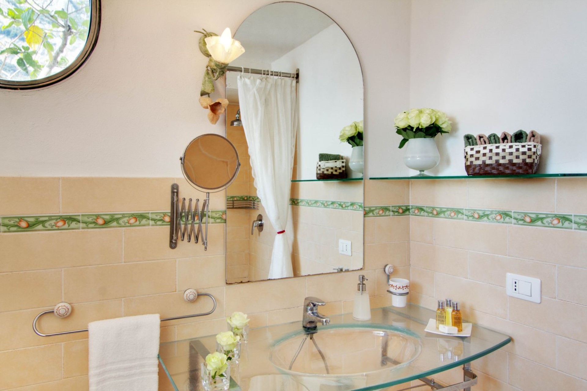 The villa is approximately 200 meters from the main coastal road that passes through Positano and access is via a pedestrian pathway of about 90 steps up to the front gate.
