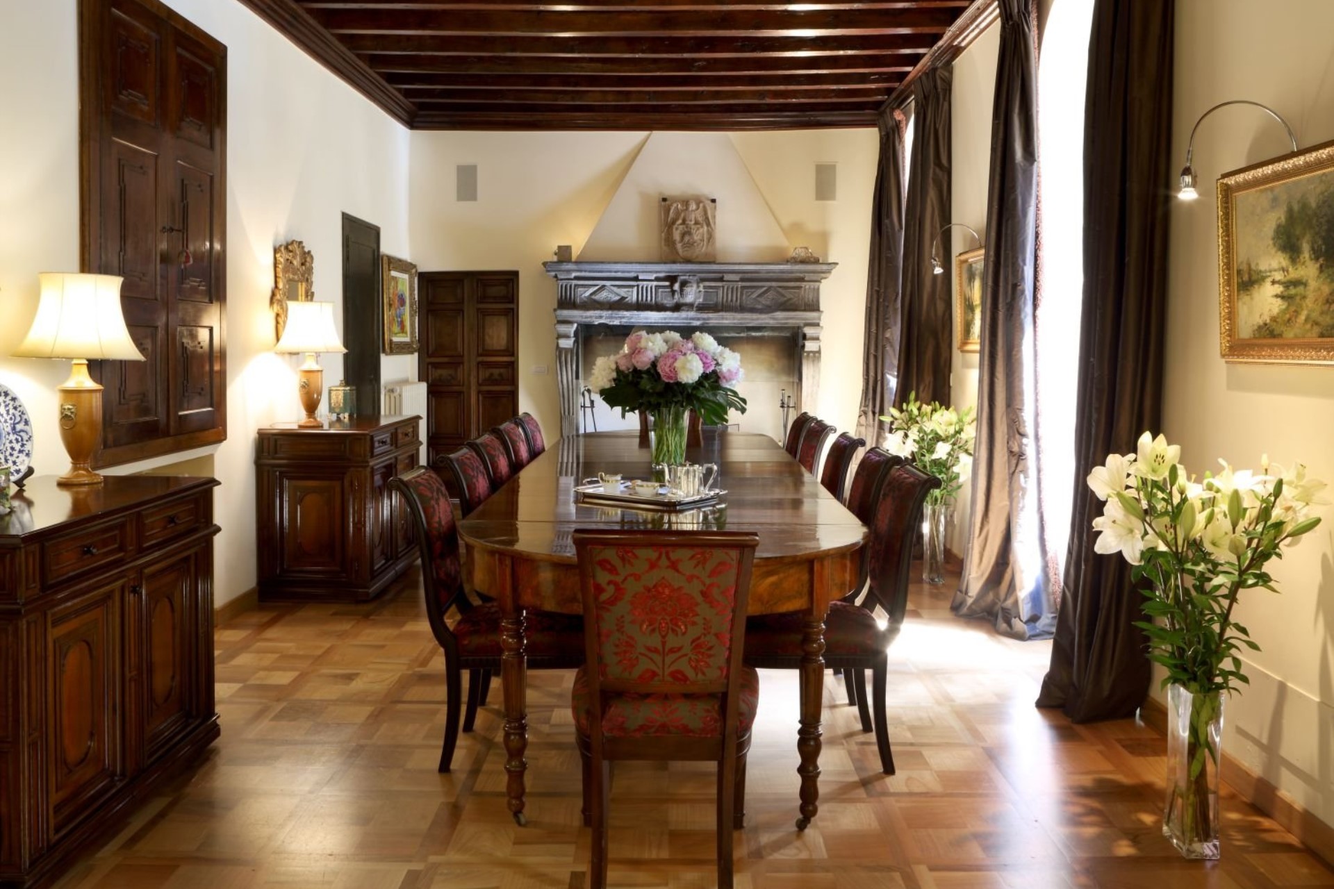 The property is comprised of three separate houses, all completely restored and offering first class modern facilities complemented by the finest Italian antique furniture, and artworks from all over Europe.
