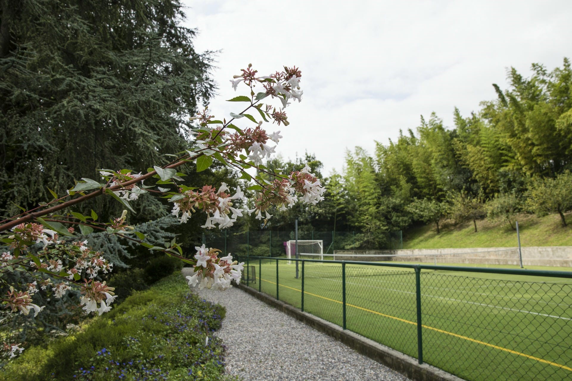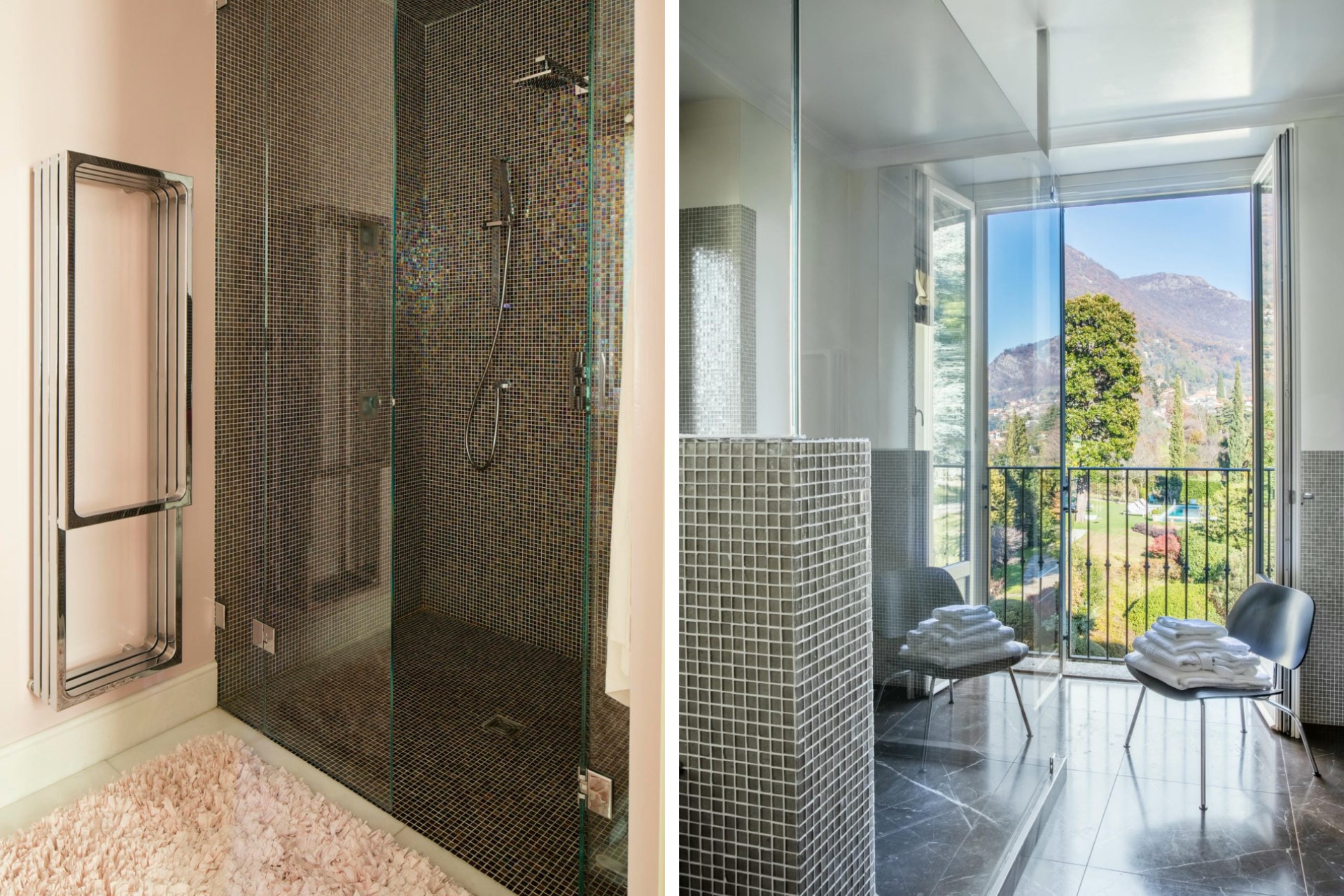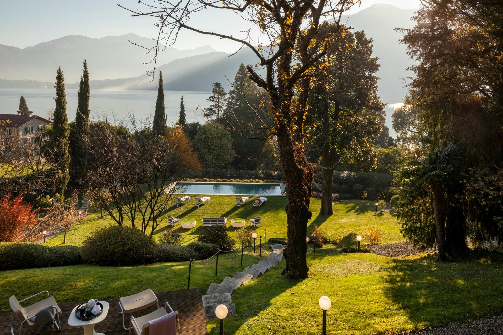 Outdoor living is a focus here, and guests can spend their days between the stunning pool, the secluded terraces, and the tennis court, which is discreetly tucked within the landscaped grounds. There are spaces for sunbathing and long al fresco lunches, quiet morning coffees under pergolas, and evenings spent dining outdoors as the sun dips behind the hills. The gardens are dotted with shaded sitting areas, offering unparalleled lake vistas.