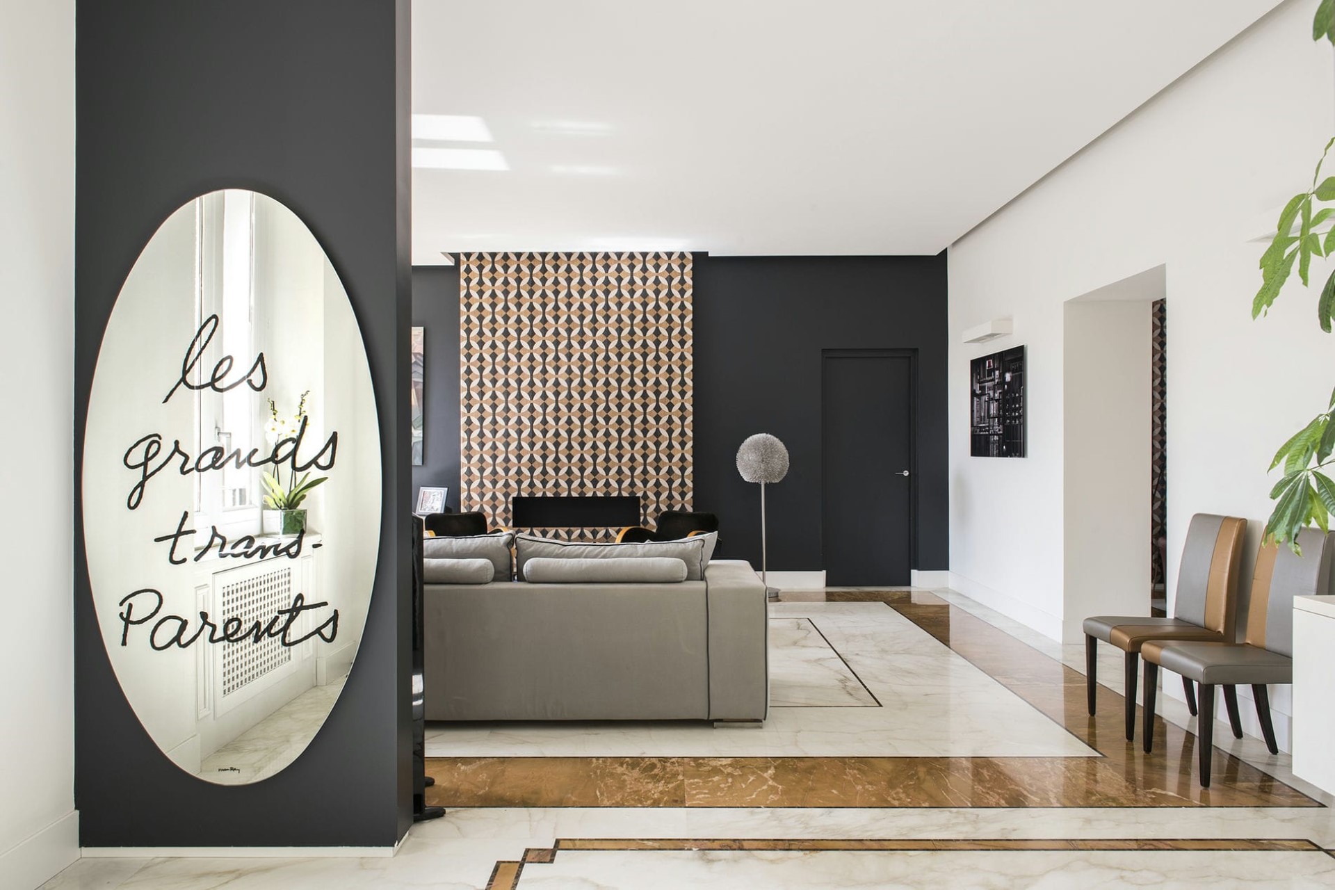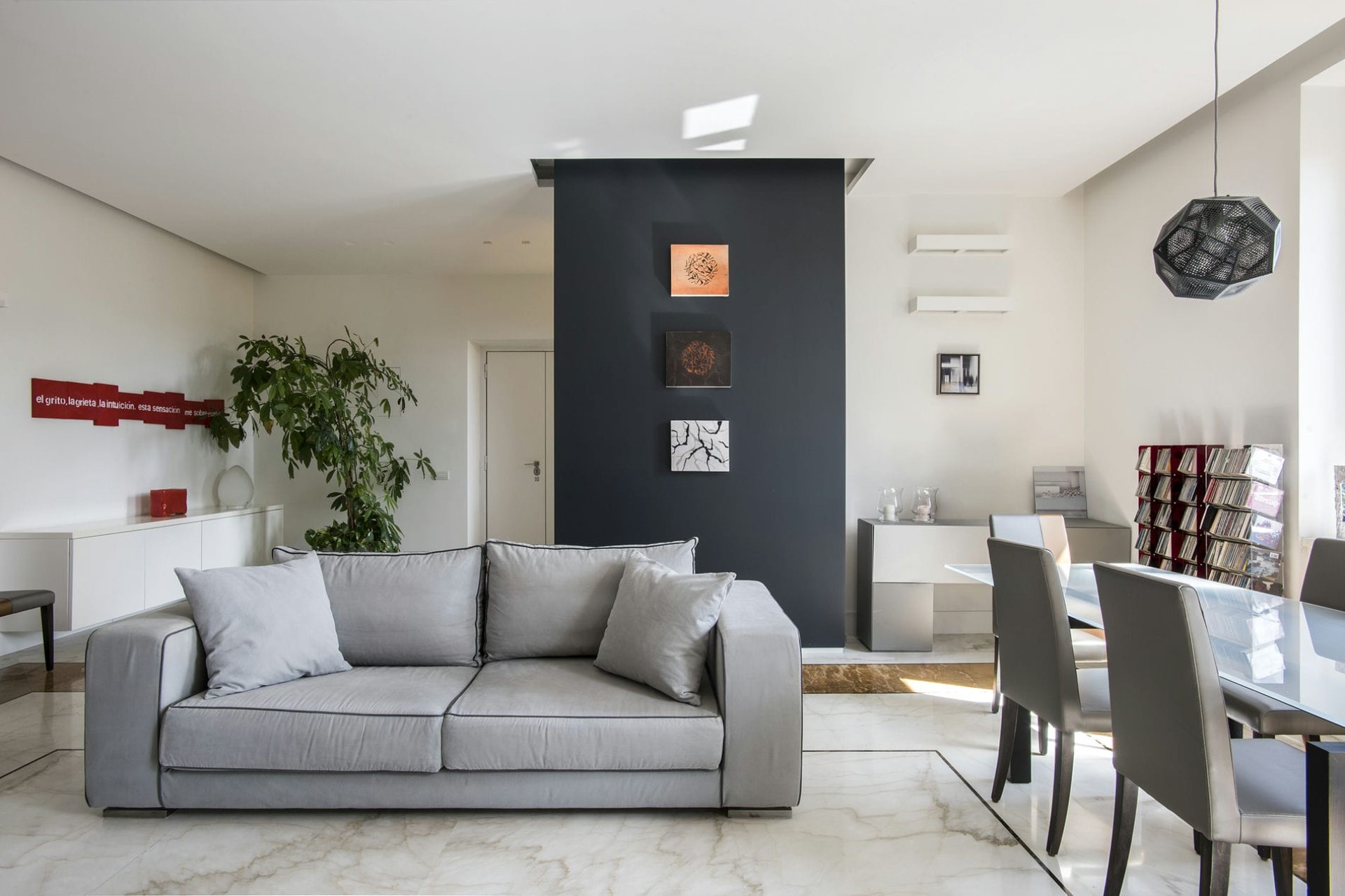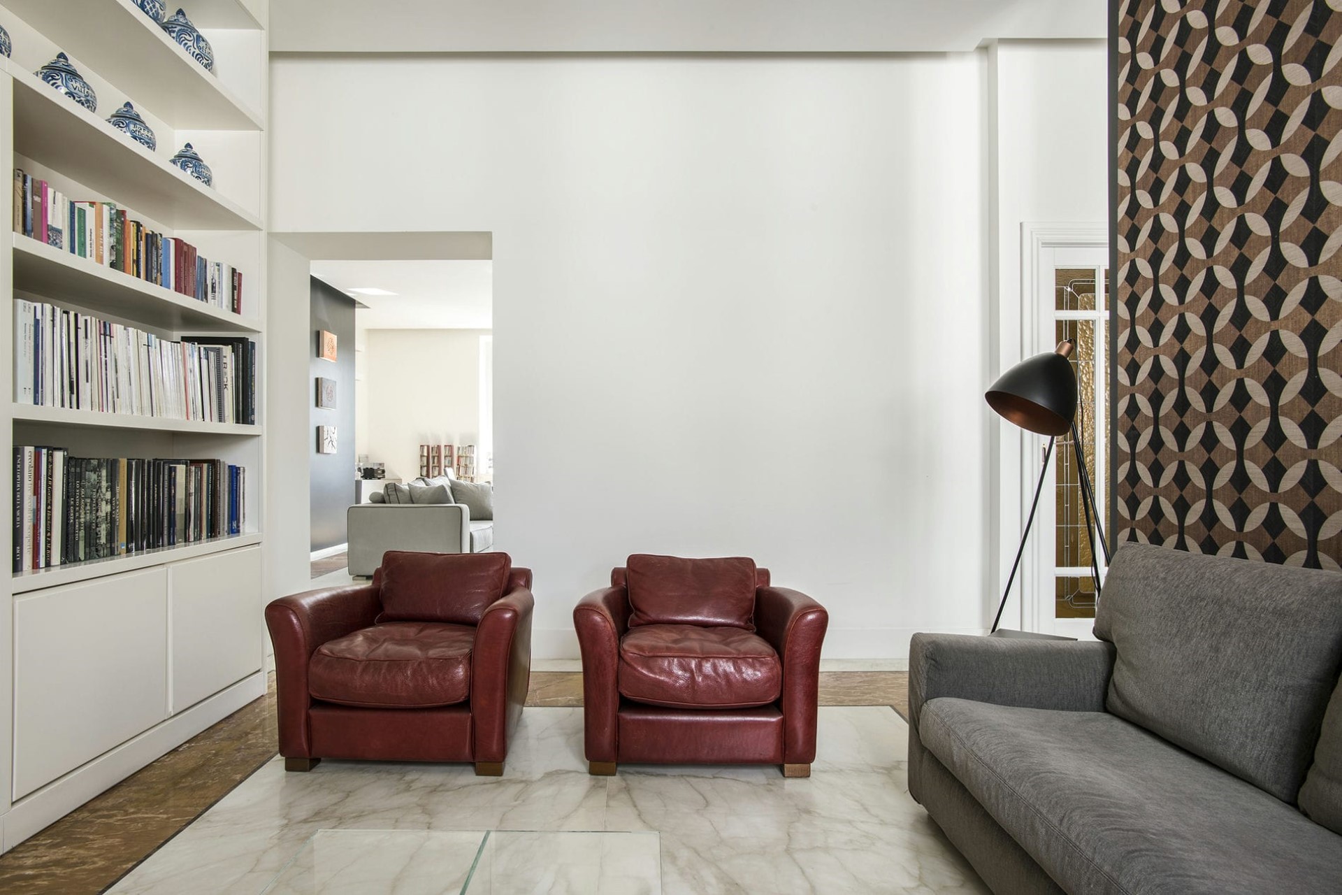Set within a beautiful historic building, the apartment has been expertly refurbished by a renowned architect, featuring sleek lines and chic Italian design throughout. An elegant entrance hall leads into a spacious lounge and dining room with marble floors, plenty of plush seating, and access to the private courtyard.