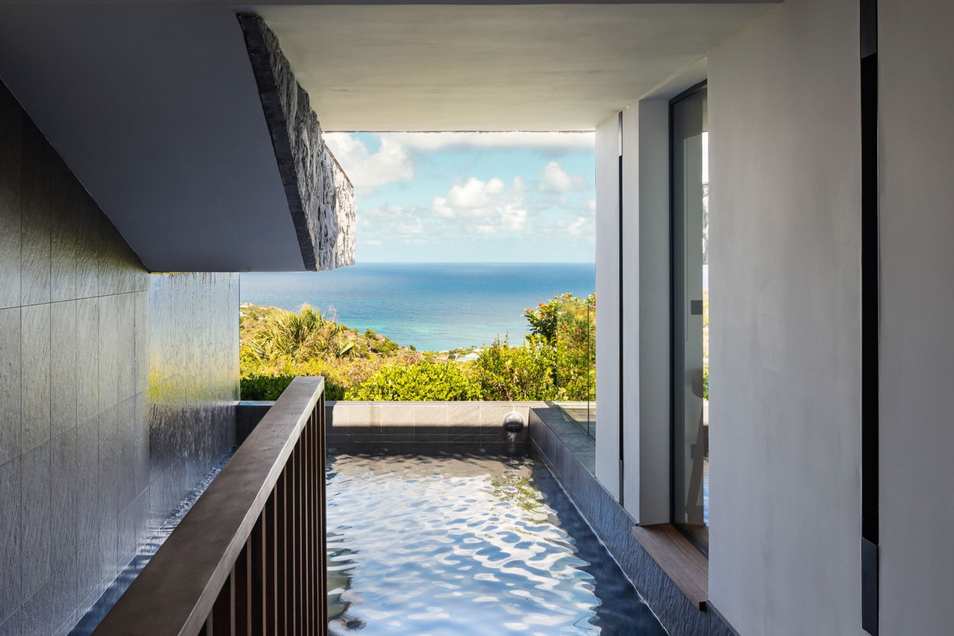 The villa’s outdoor spaces are a true highlight. A stunning heated infinity pool stretches out toward the horizon, providing the perfect spot to take in the views. Sun loungers line the pool, inviting guests to relax and soak up the Caribbean sun.