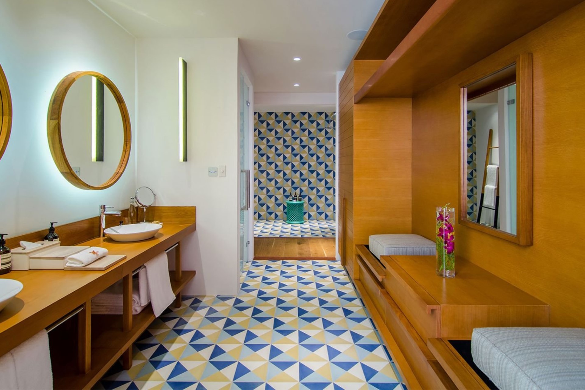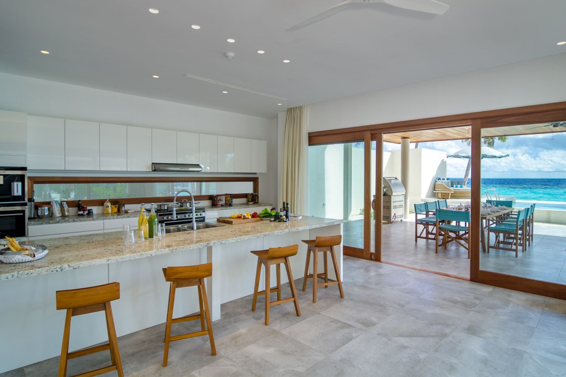 The eight well-appointed bedrooms are all decorated and furnished to the highest standard and with every luxury and comfort taken care of. Featuring not one, but two master suites, there is ample space for several couples/groups to share the residence and not sacrifice privacy or space. Each master suite boasts an incredible super-sized bed, facing the Indian ocean, via the glass fronted balcony. Guests can listen to the sounds of the waves lulling them into a restful slumber, from the calming cocoon of their luxury bed, ready for the picturesque sunrise the next morning. They also feature en-suite facilities with an ocean view bathtub, walk-in rain showers, and an al fresco shower courtyard.