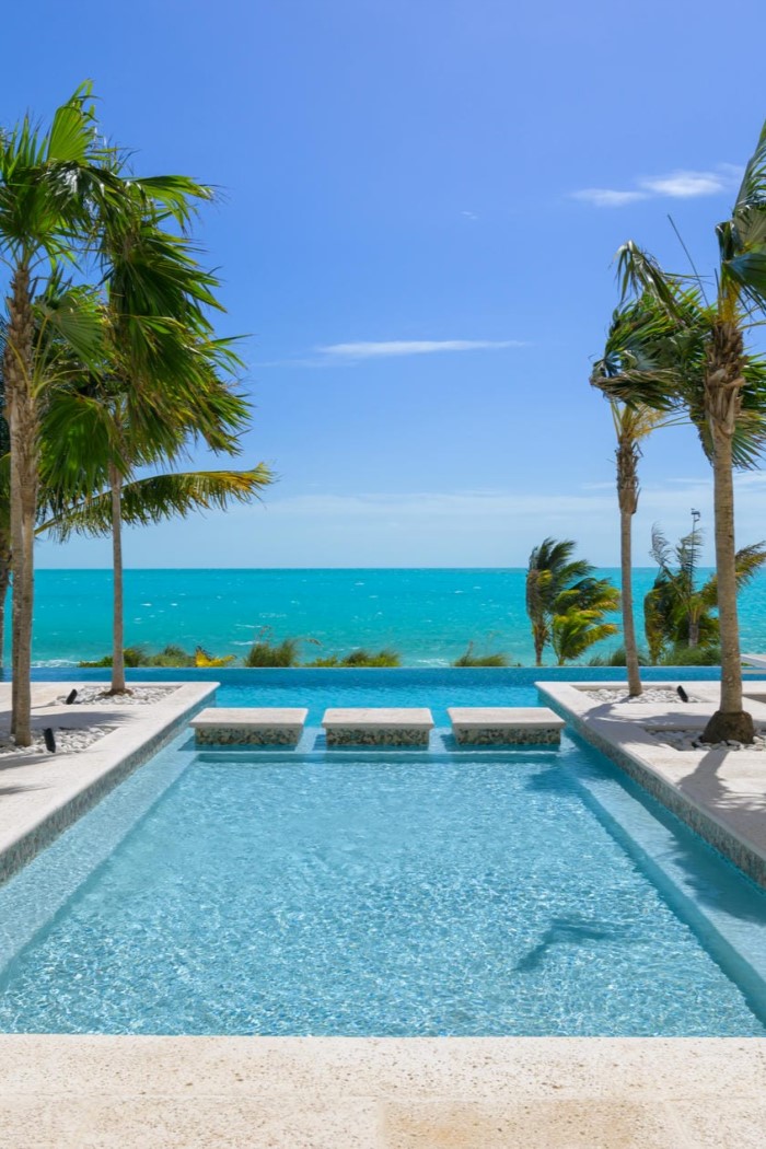 A luxurious beachfront villa in Turks and Caicos with a private swimming pool and expansive outdoor living spaces