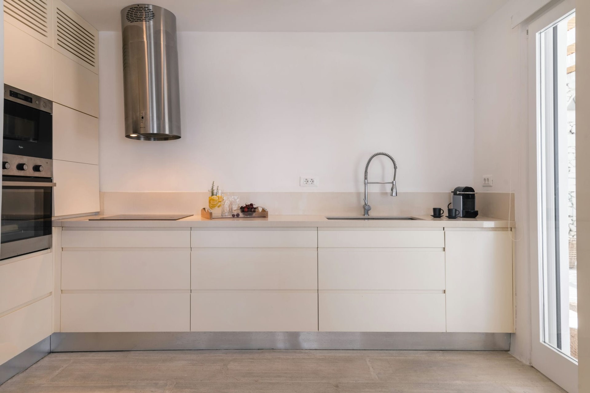 The main villa houses three double en-suite bedrooms upstairs, all with sea or garden views and veranda access. An independent guest house offers two further king-size en-suite bedrooms, a shared living space, and a kitchenette—perfect for families or groups of close friends travelling together. A sixth bedroom is located in a separate studio near the terrace, complete with a double bed and two sofa beds, offering privacy and flexibility for children, teens, or additional guests.