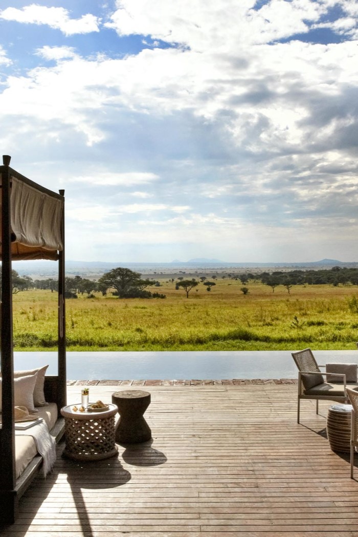 Singita Serengeti House is the perfect place to experience the safari areas of Tanzania. Serene river valleys intersect lush woodlands, verdant forests, expansive plains, and sunburned grasslands. This contemporary lodge offers uninterrupted views across the Serengeti, where wild animals roam freely, often stopping for a drink at the property’s watering hole.