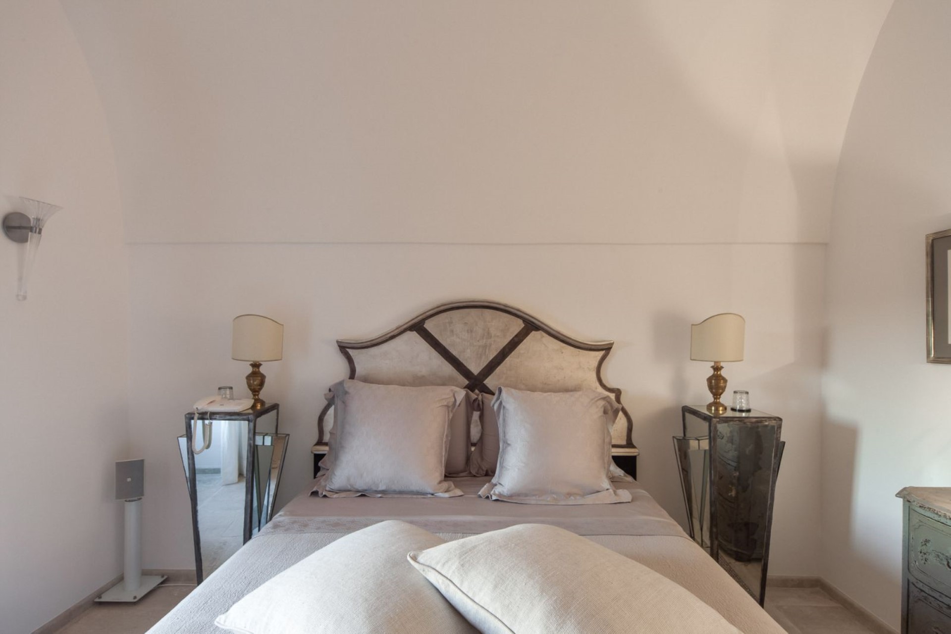 The sleeping area is composed of five beautifully appointed suites, which boast private entrances, vaulted ceilings, and antique furniture.