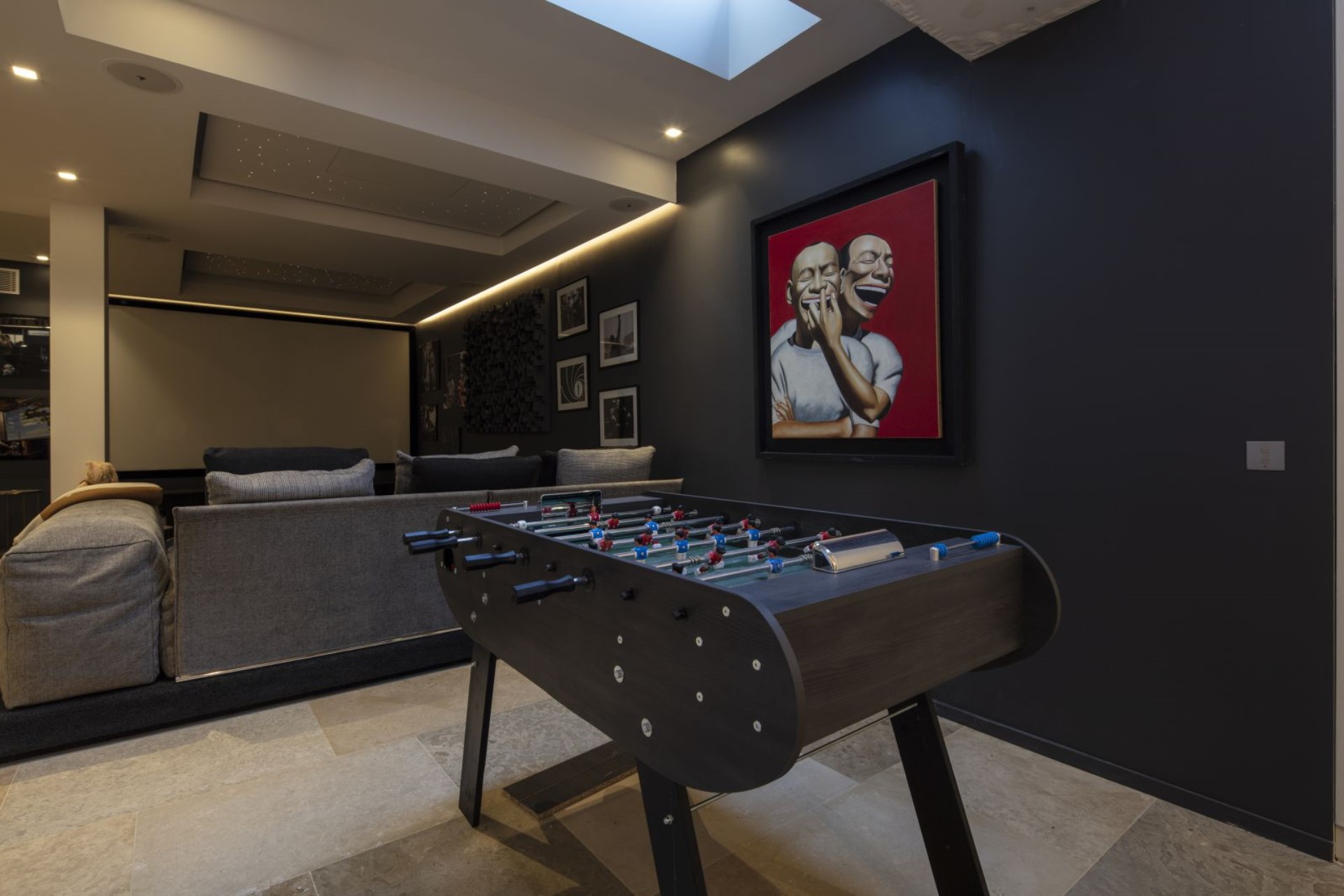To keep everyone entertained there is a games room with pool table, table football and gym equipment, a cinema room with media library, and massage room for some holiday pampering.
