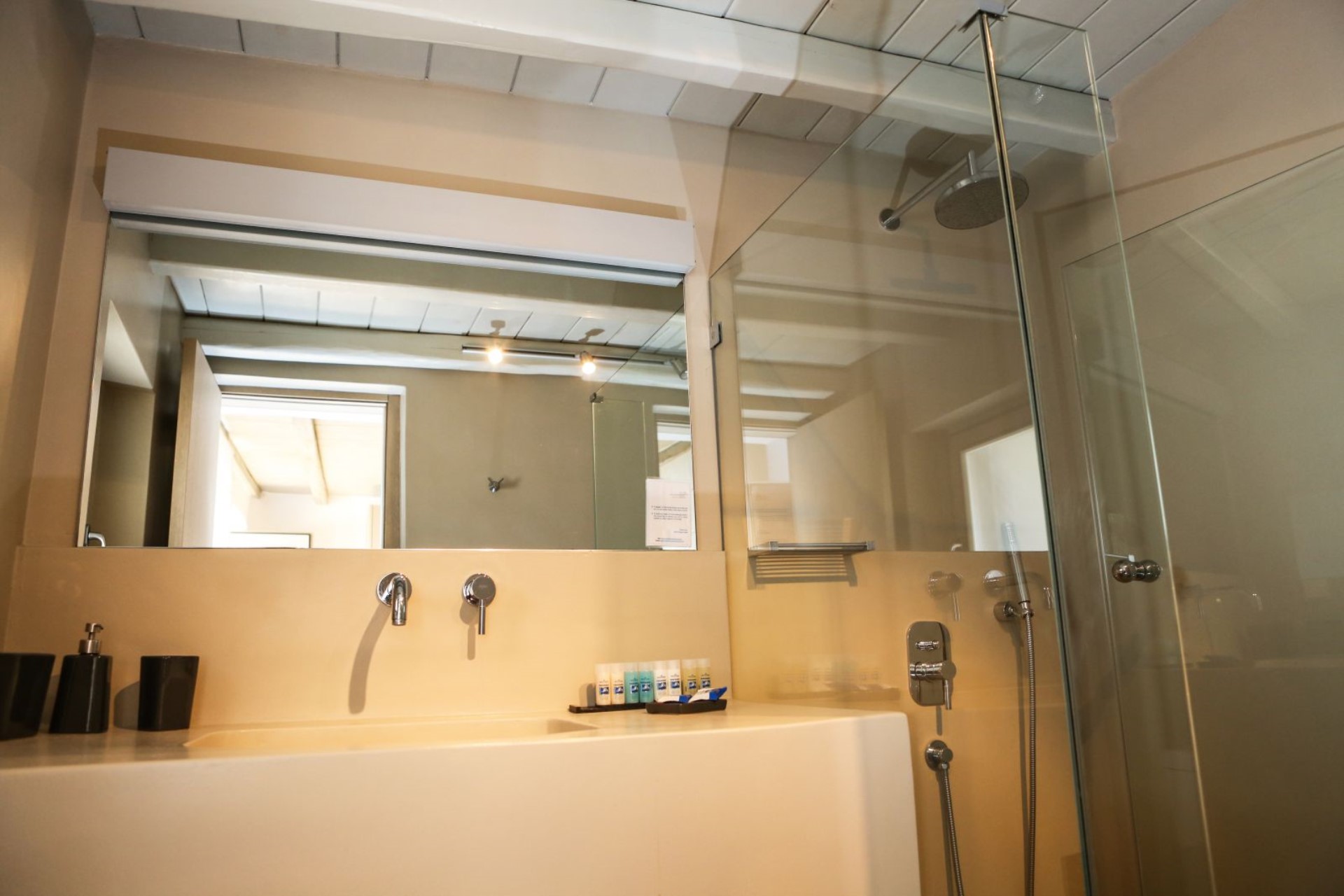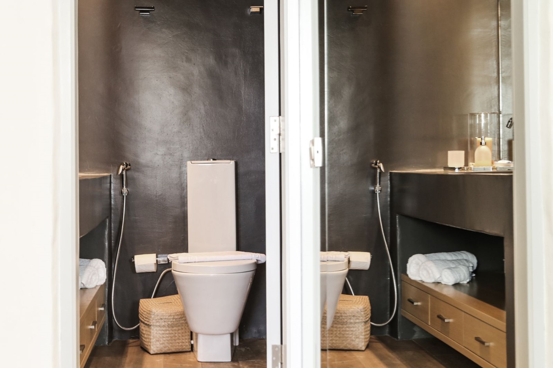 Bedroom 5 – double bed, bathroom with shower, and direct courtyard access with sitting area