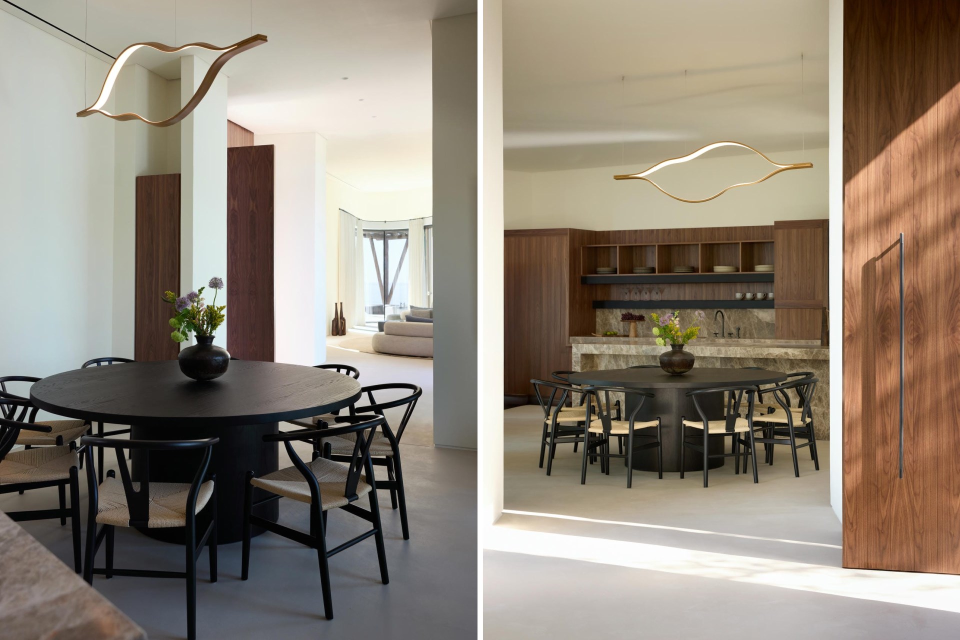 The two villas sit discreetly within the estate’s 10,000 square metres of grounds. Each has its own identity and self-contained spaces, yet both have been designed with a consistent style that blends laid-back luxury with modern functionality. Each villa offers a generous open-plan living area that connects to outdoor dining and lounge spaces. Both also boast a private sauna and hammam.