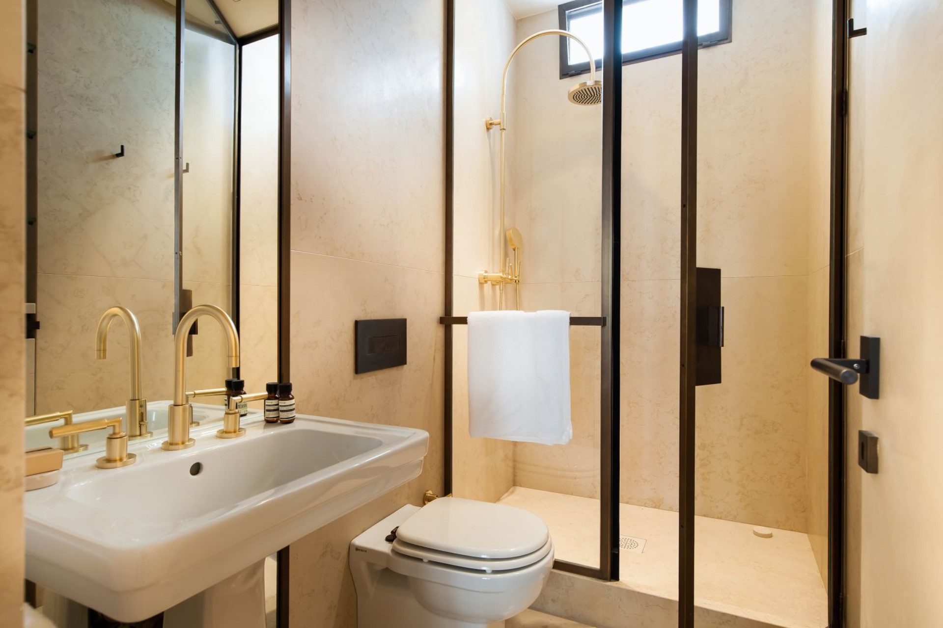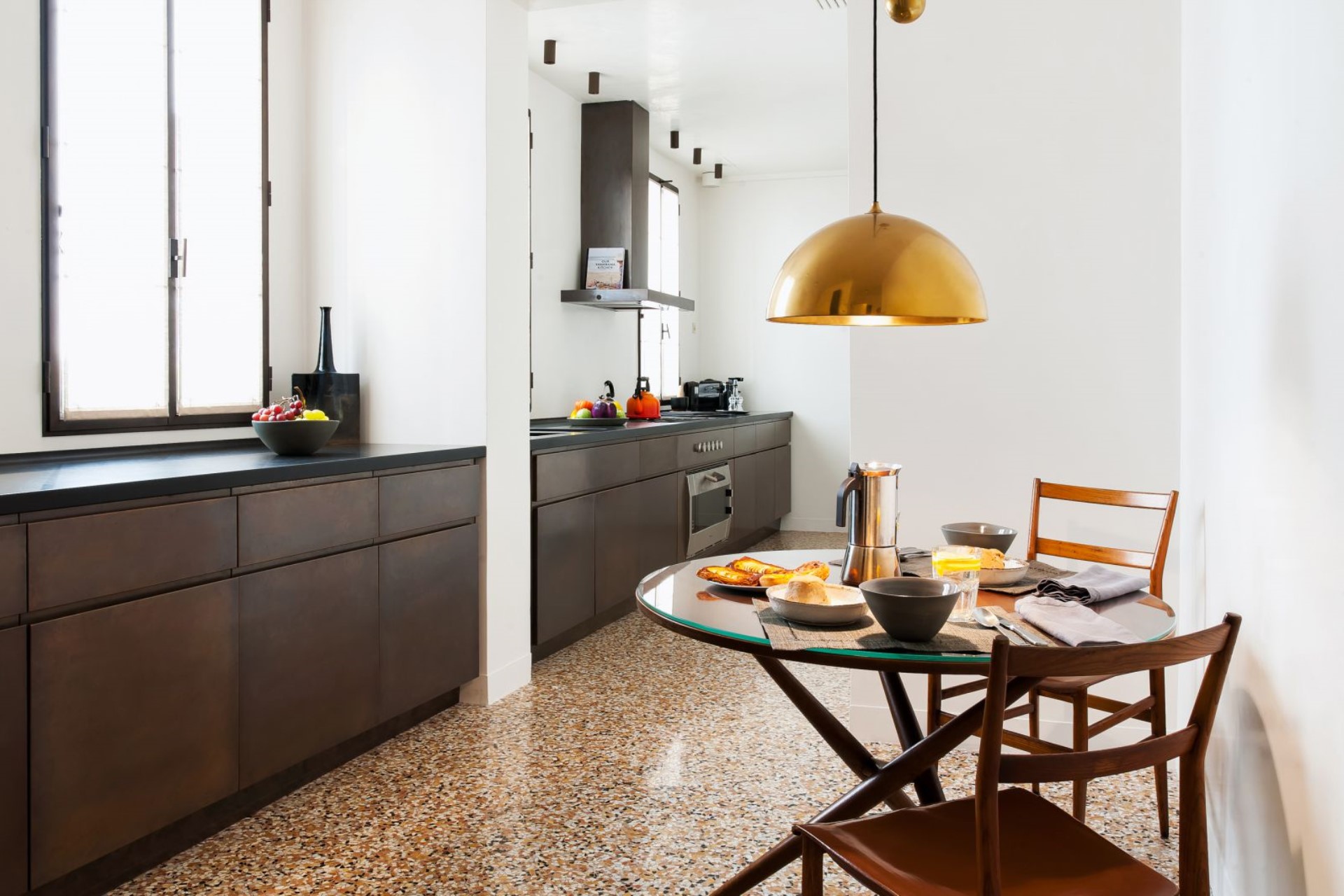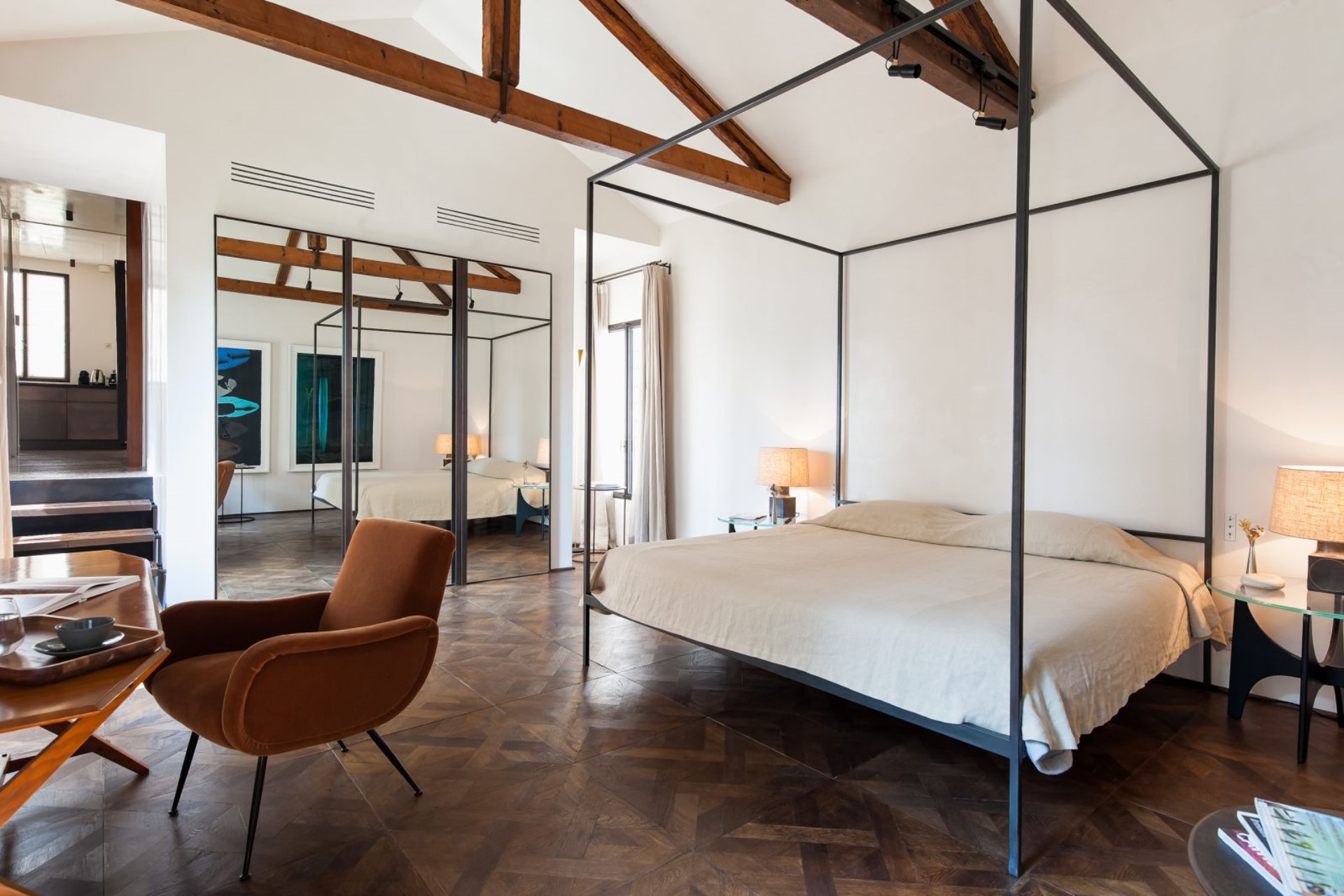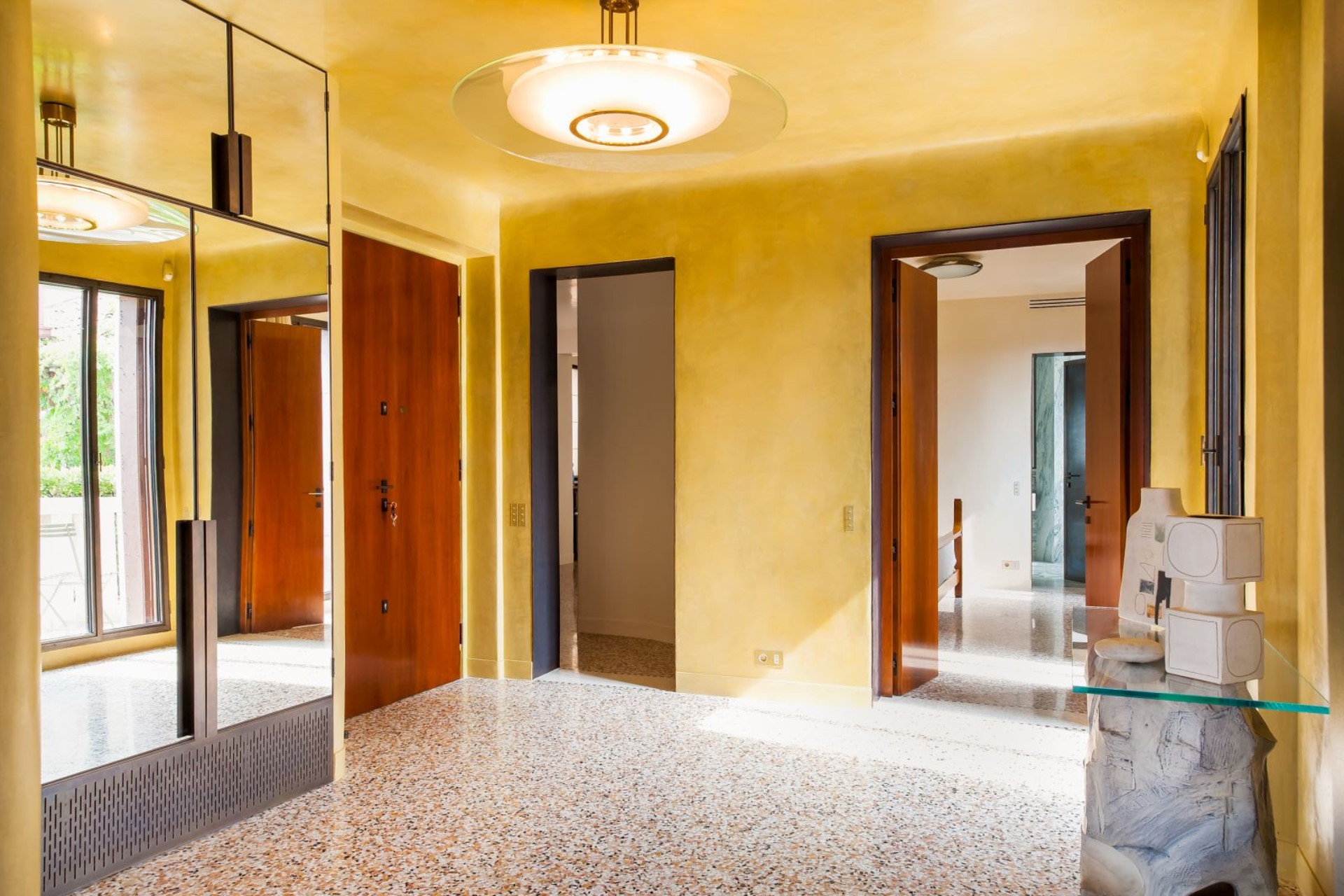 The apartment has been masterfully designed and decorated by one of Venice’s leading architects, in collaboration with one of France’s leading interior decorators, drawing inspiration from the work of Carlo Scarpa. Its elegant features include terrazzo floors, creamy Marmorino walls, bronze windows, and stunning marble bathrooms.