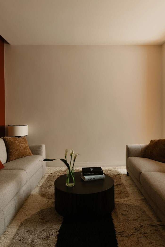 The heart of this luxury home is its cosy yet sophisticated lounge area with plush seating and burnt orange feature walls. Ideal for those working remotely, there is also a cosy study corner with a work desk overlooking an internal courtyard.