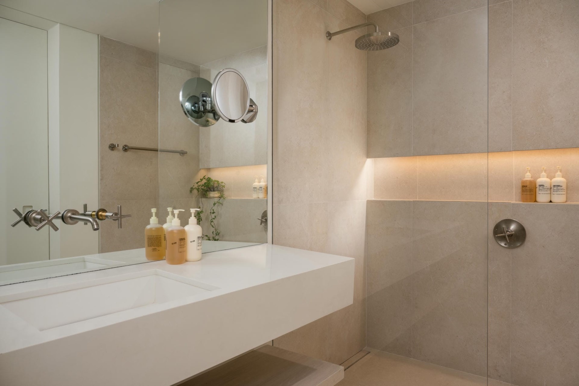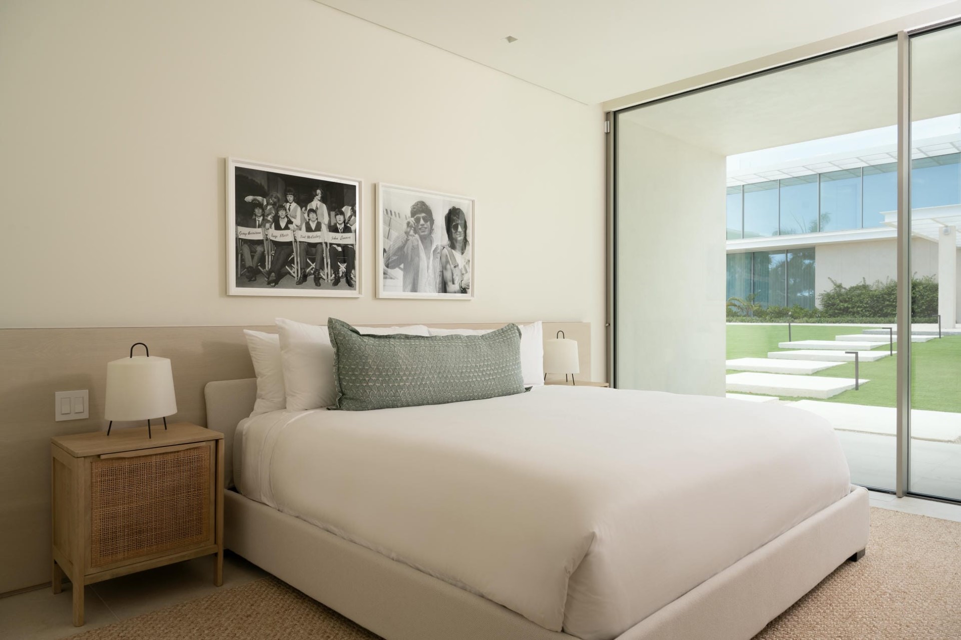 Seven luxurious bedrooms, each with en-suite facilities, are spread throughout the main villa and a guest house at the rear of the building. The Master Suite occupies the whole top floor, with a luxurious king-size bed, an en-suite bathroom with an indulgent tub, a private terrace with panoramic ocean views, plus easy access to the stunning roof terrace. Four guest suites occupy the villa’s first floor, each with king-size beds and en-suite facilities. The remaining two bedrooms are in a separate guest house behind the villa, offering guests extra privacy and beautiful garden views.