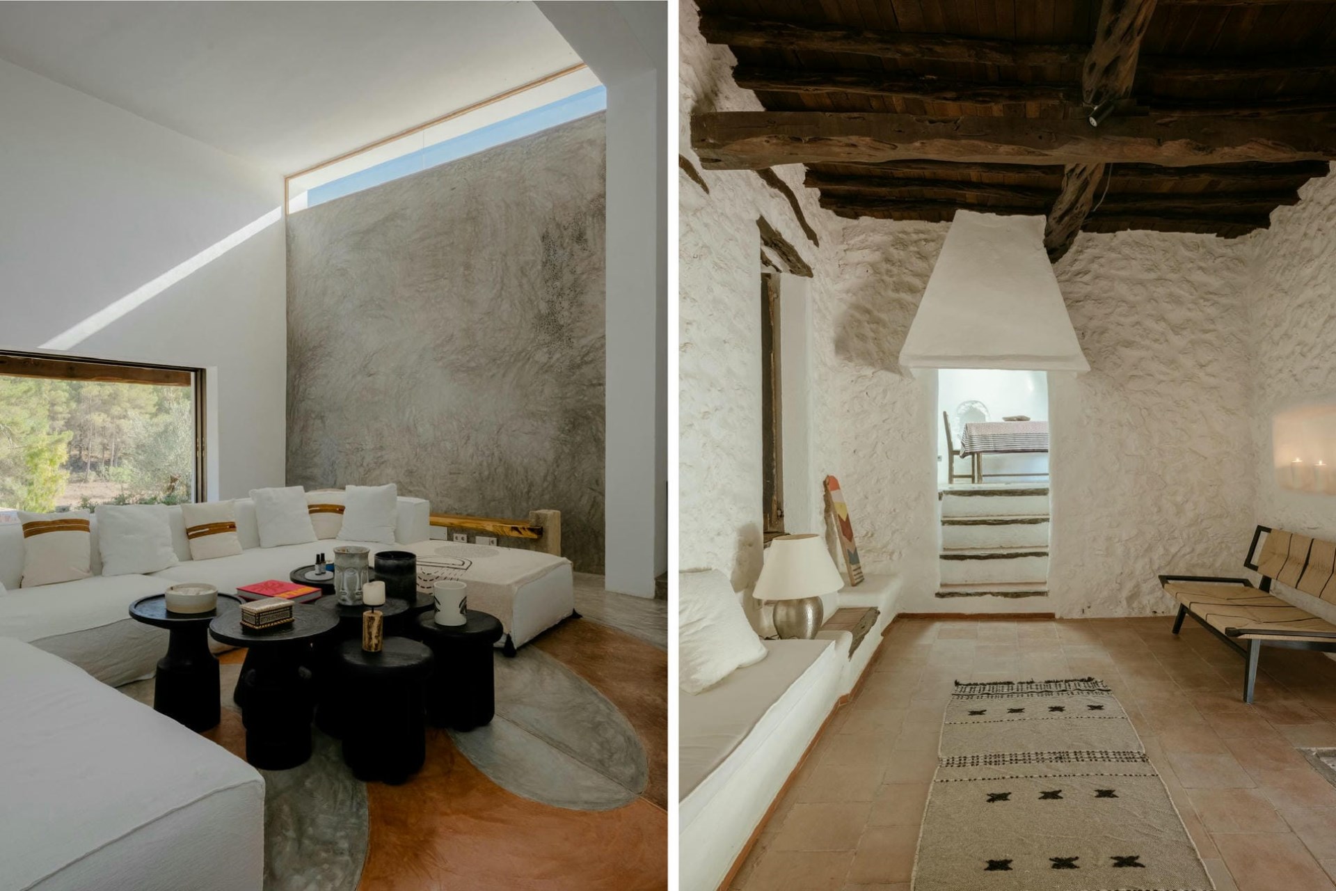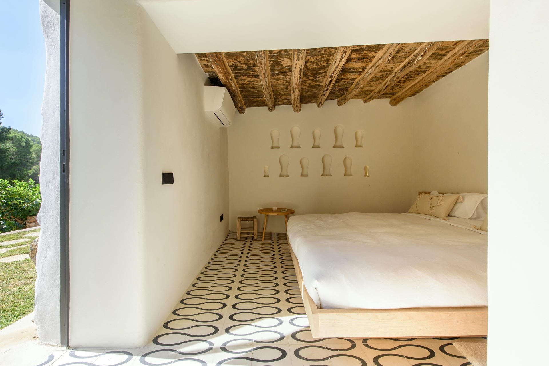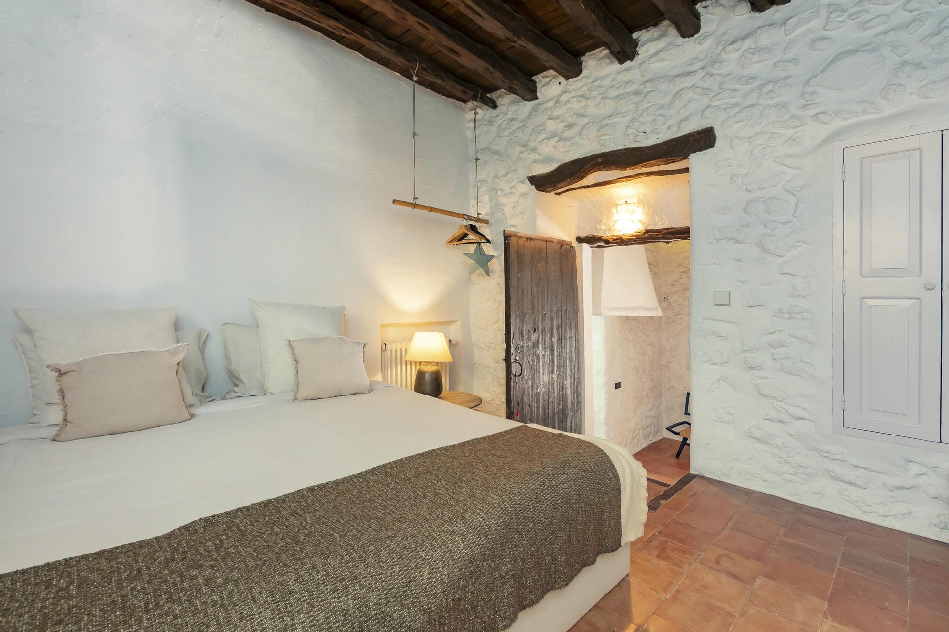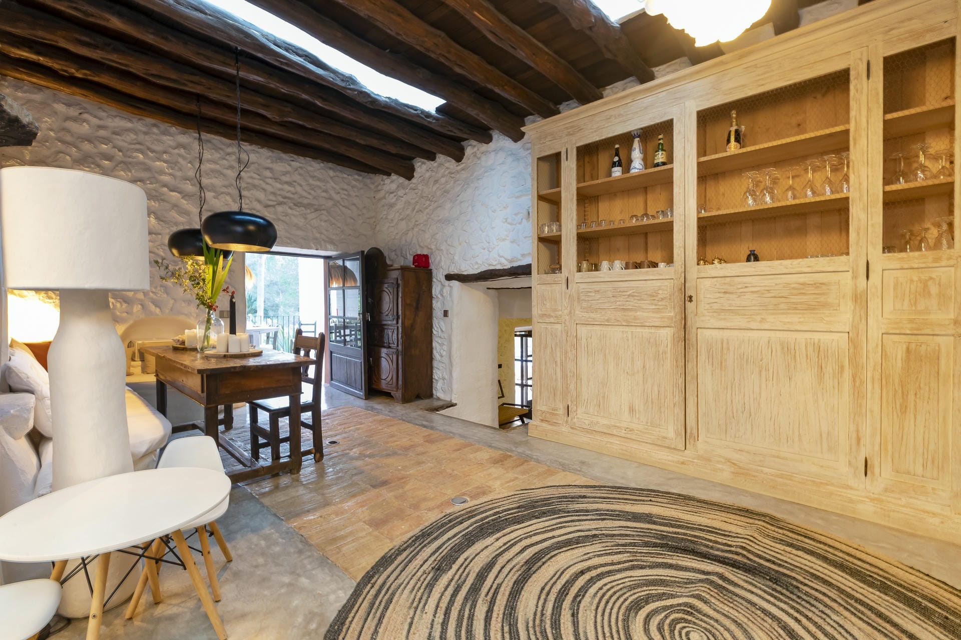 The interiors of this traditional Ibizan home – initially built in the 1800s – have been carefully restored, artfully blending traditional elegance with contemporary design features. Spacious rooms with stone walls, wood-beamed ceilings, and terracotta floors offer plenty of space for relaxation and enhance the property’s connection with nature.
