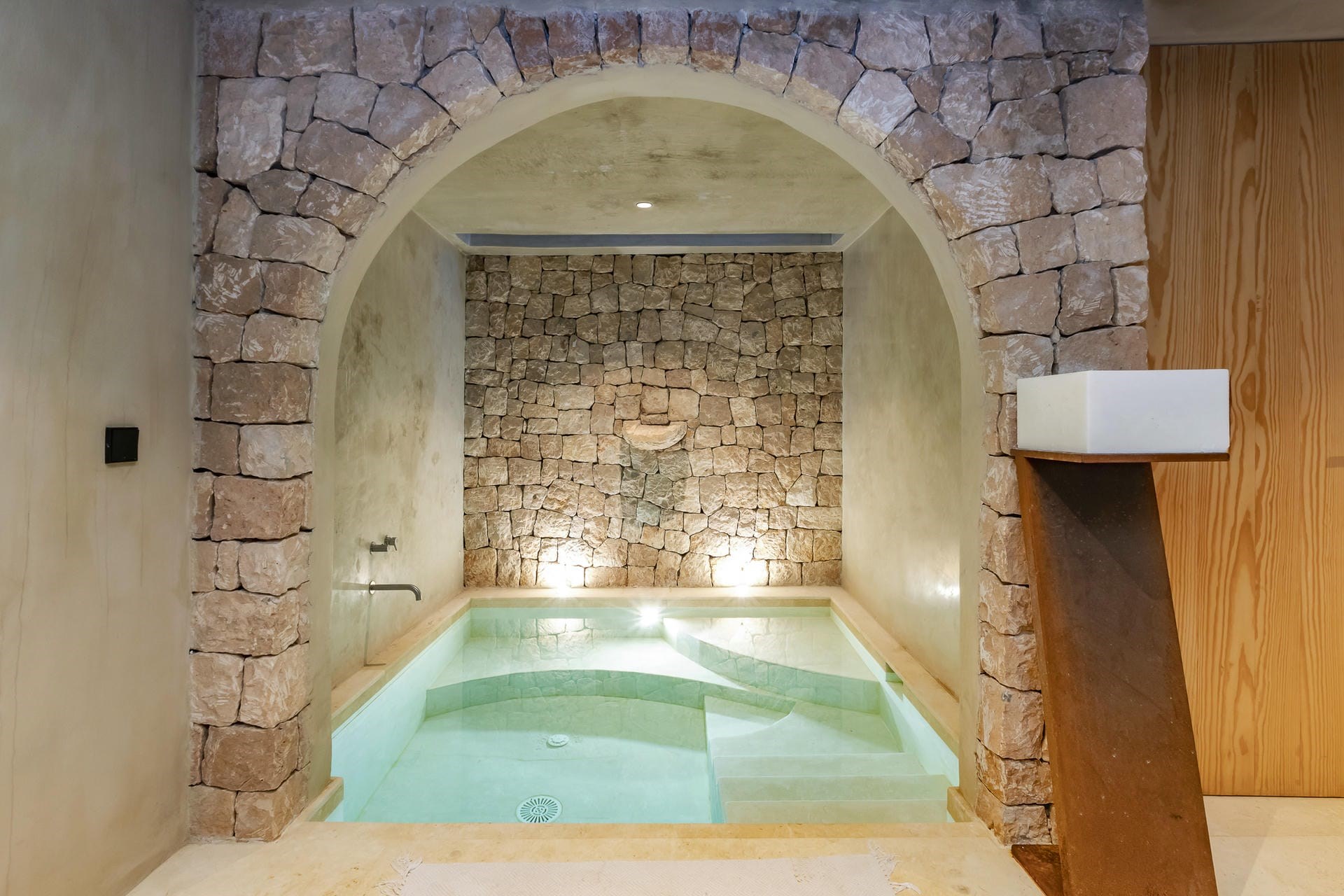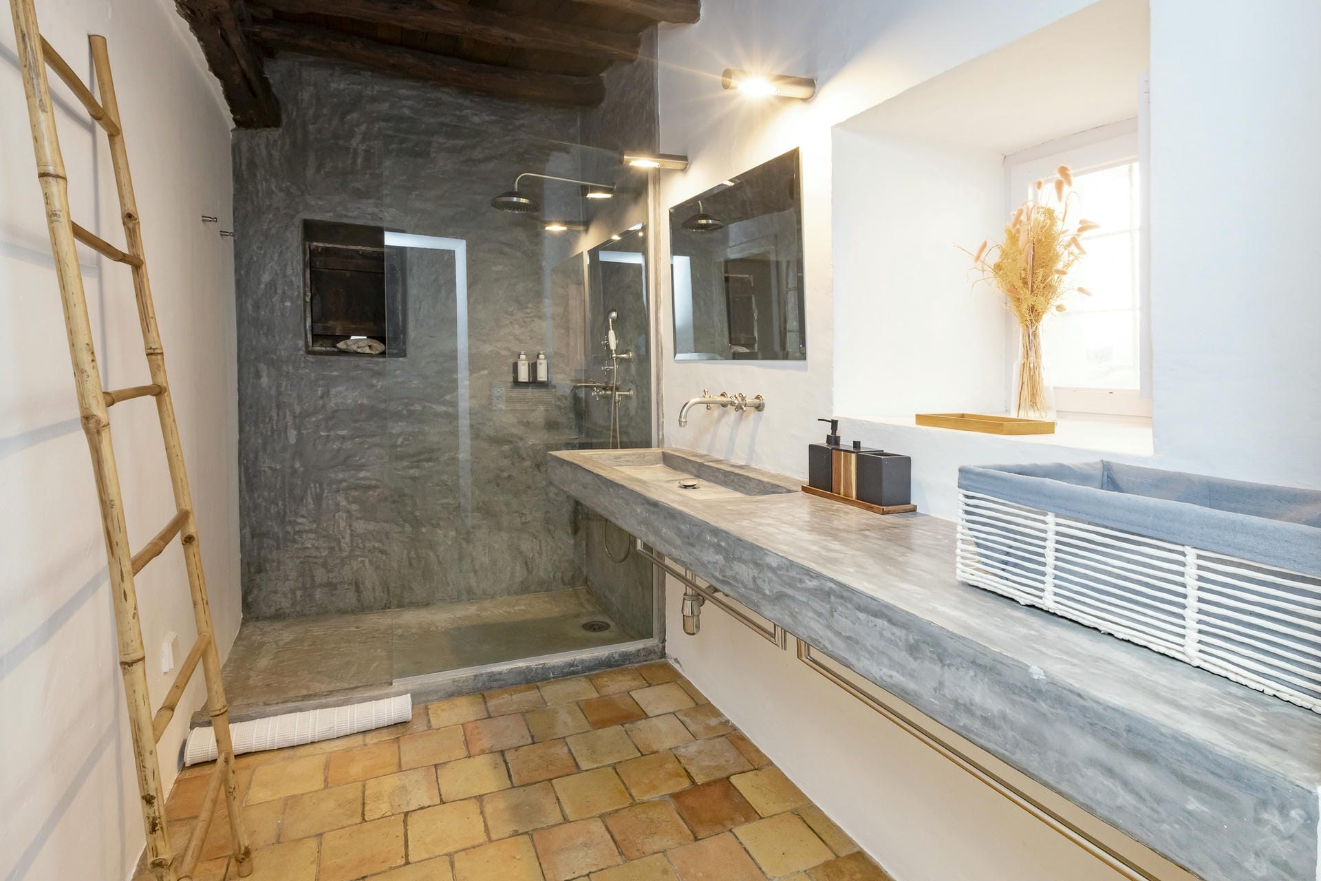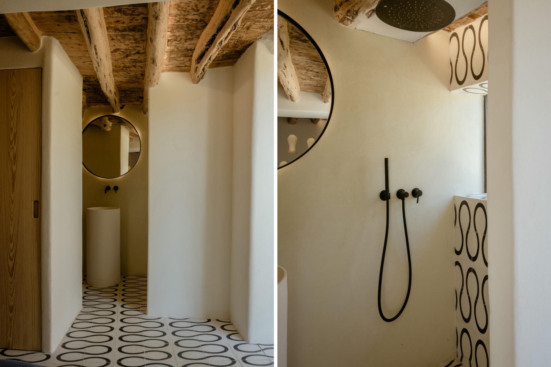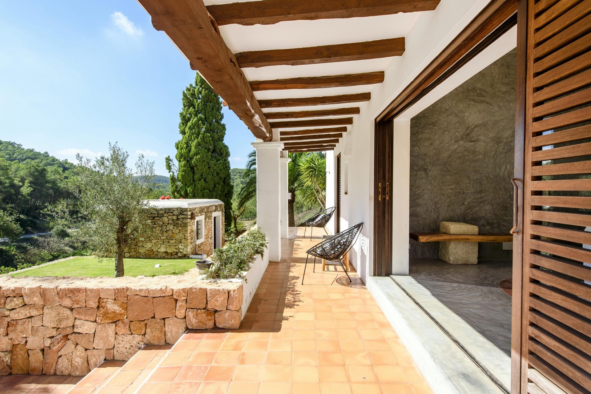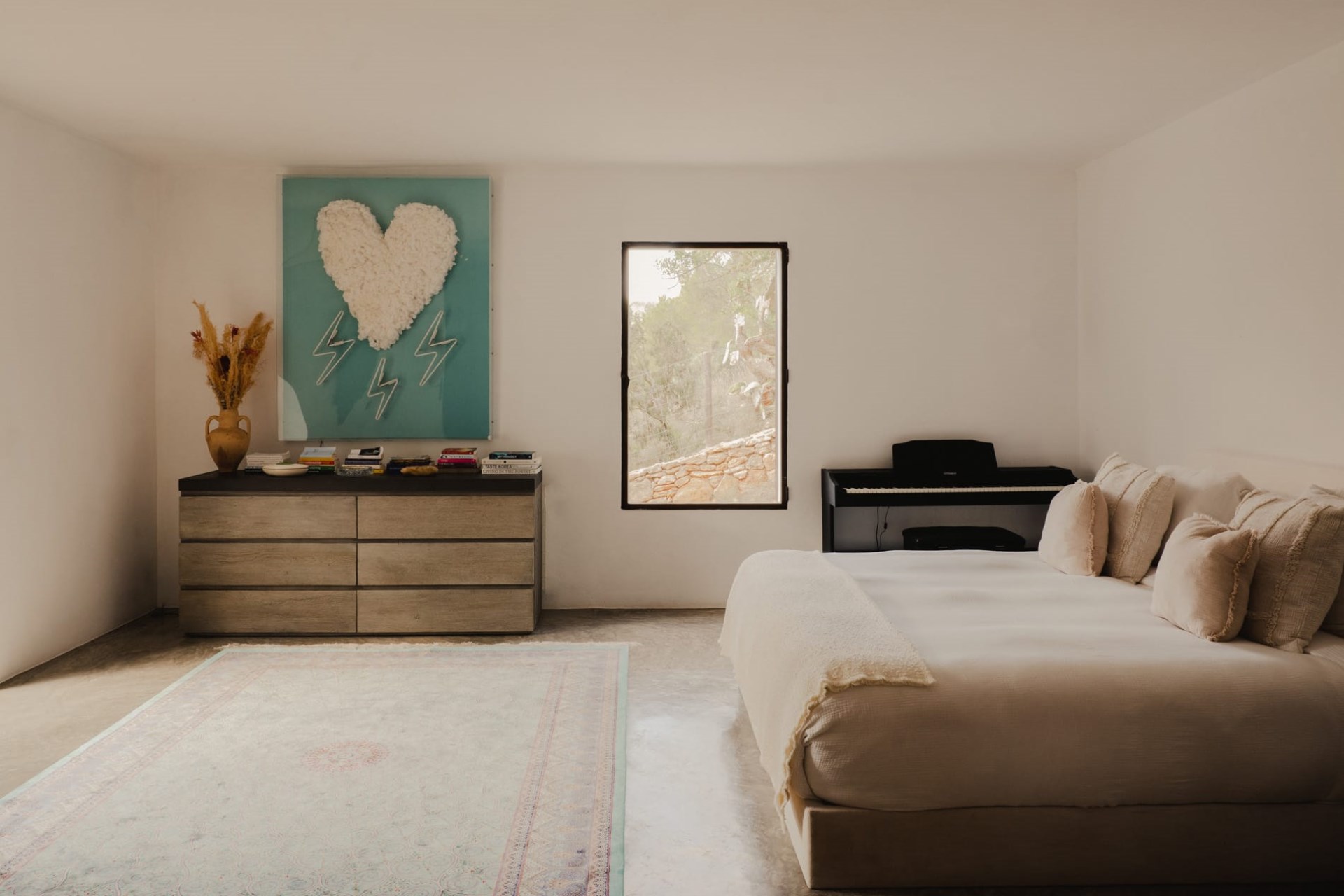 The interiors of this traditional Ibizan home – initially built in the 1800s – have been carefully restored, artfully blending traditional elegance with contemporary design features. Spacious rooms with stone walls, wood-beamed ceilings, and terracotta floors offer plenty of space for relaxation and enhance the property’s connection with nature.