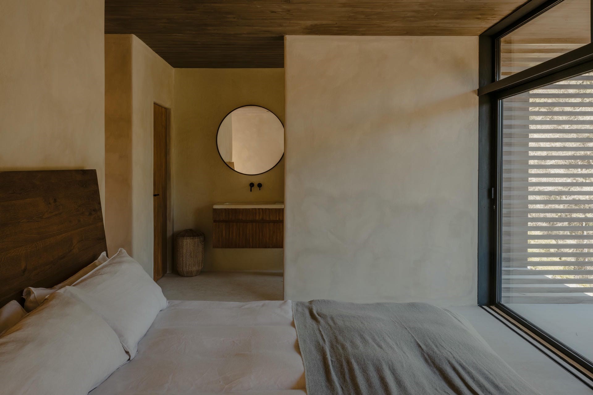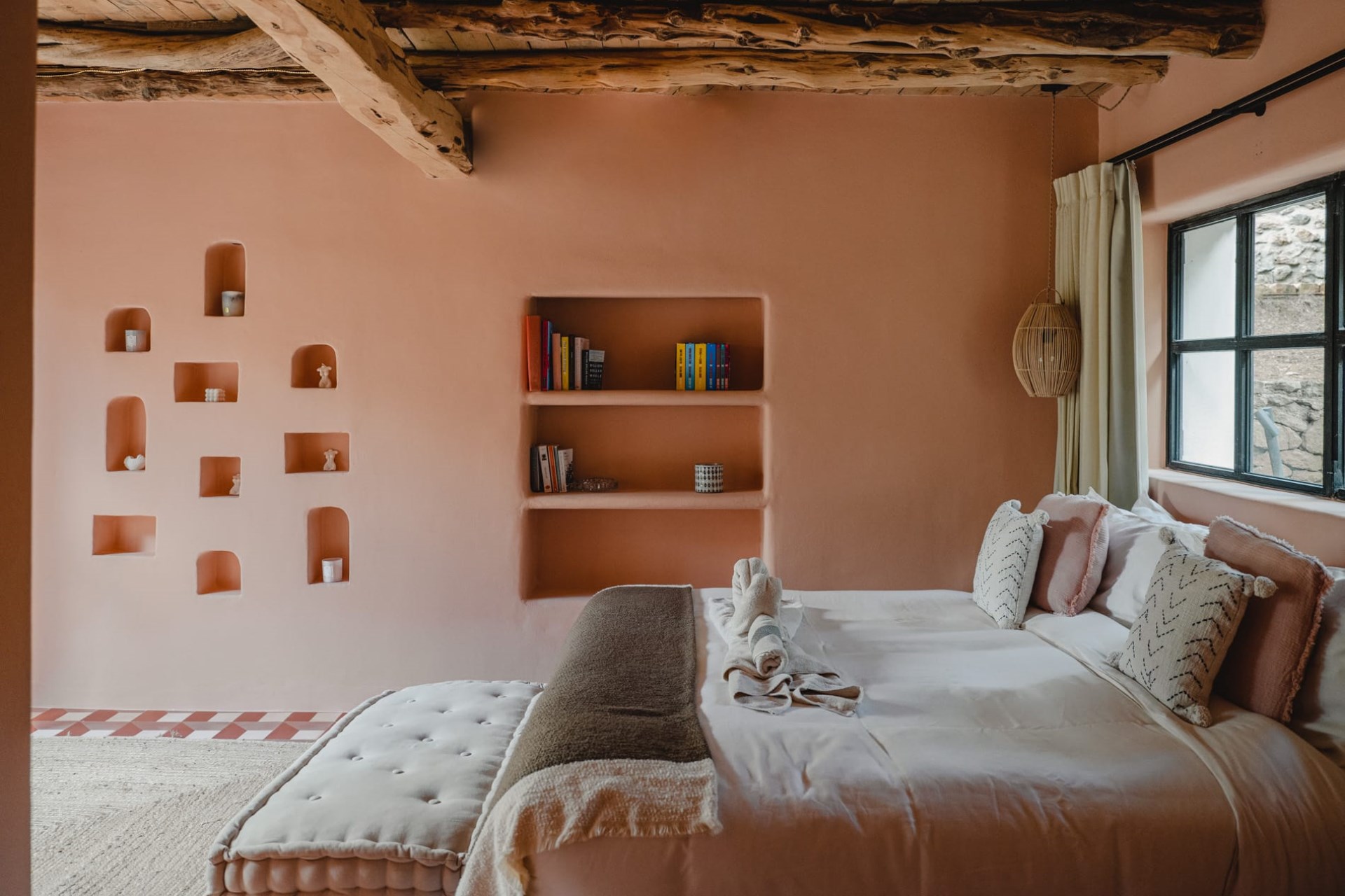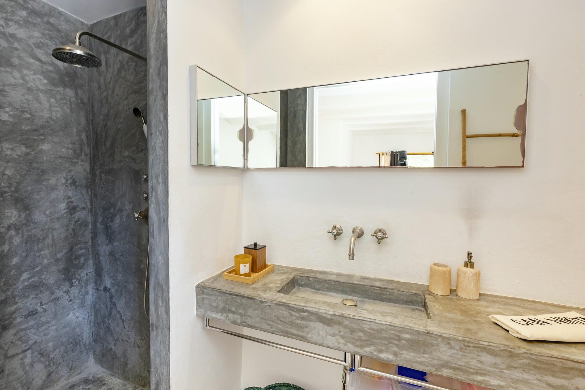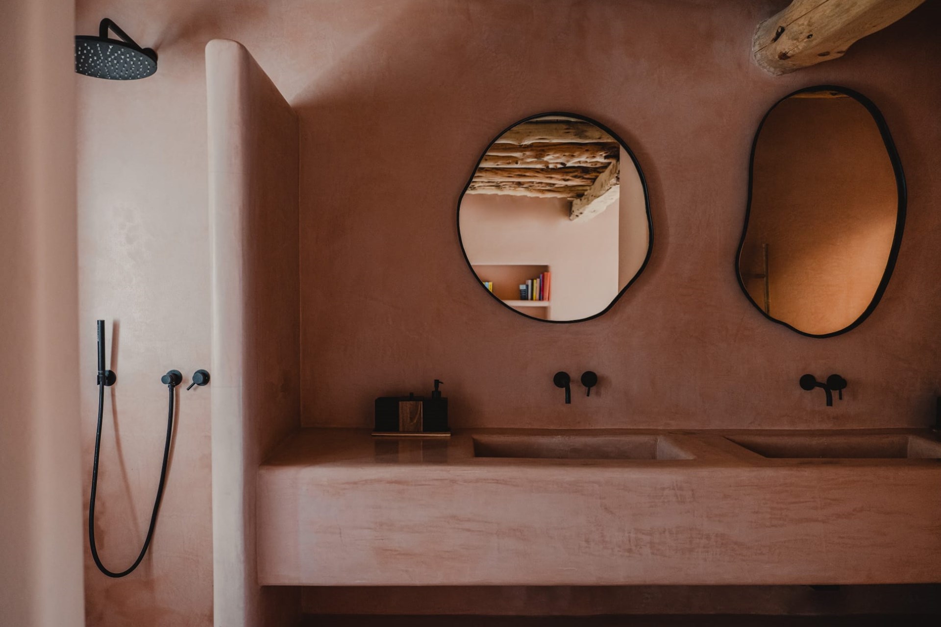 The interiors of this traditional Ibizan home – initially built in the 1800s – have been carefully restored, artfully blending traditional elegance with contemporary design features. Spacious rooms with stone walls, wood-beamed ceilings, and terracotta floors offer plenty of space for relaxation and enhance the property’s connection with nature.