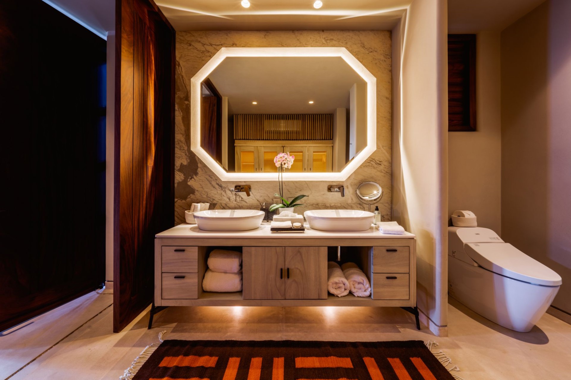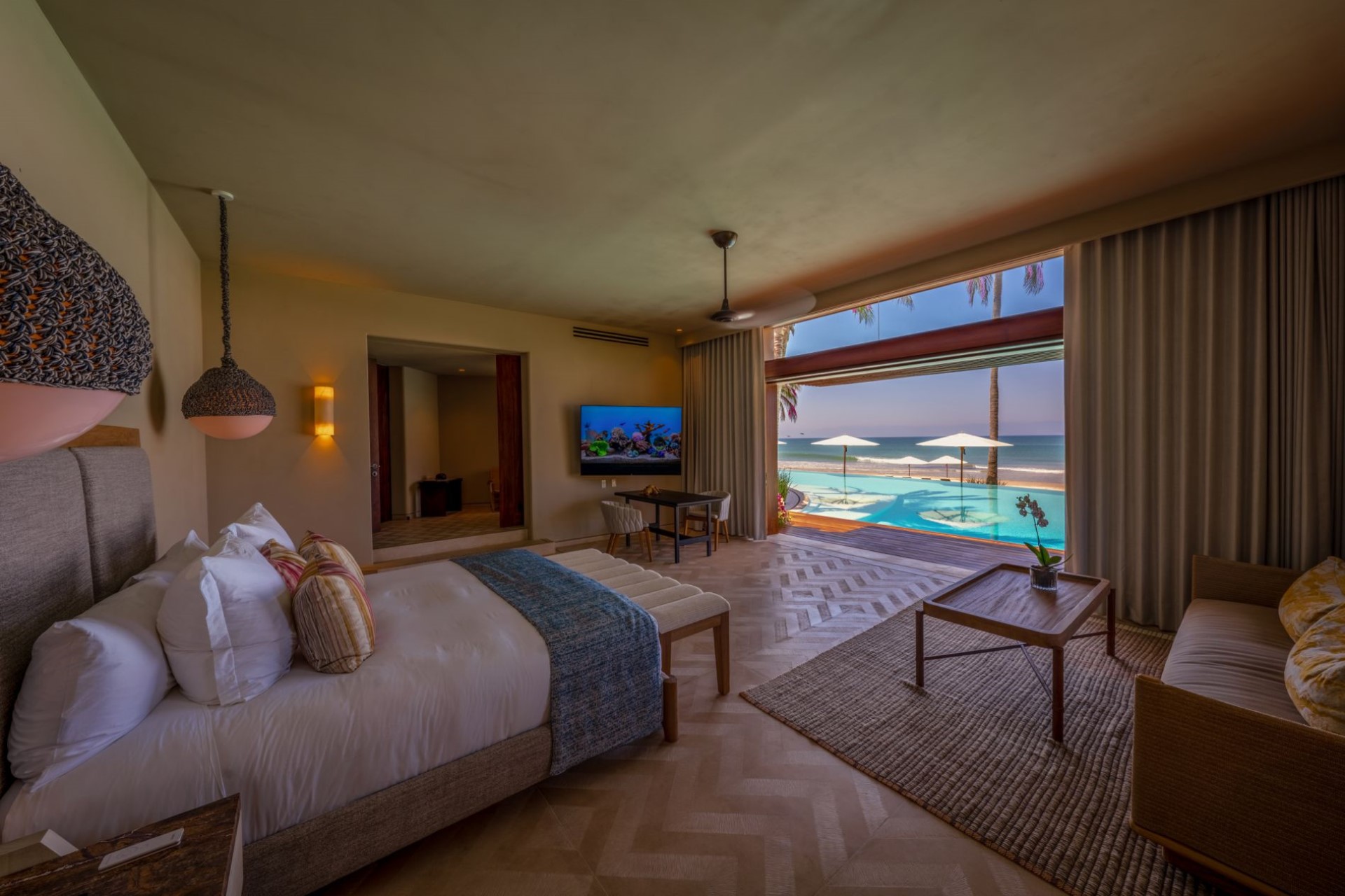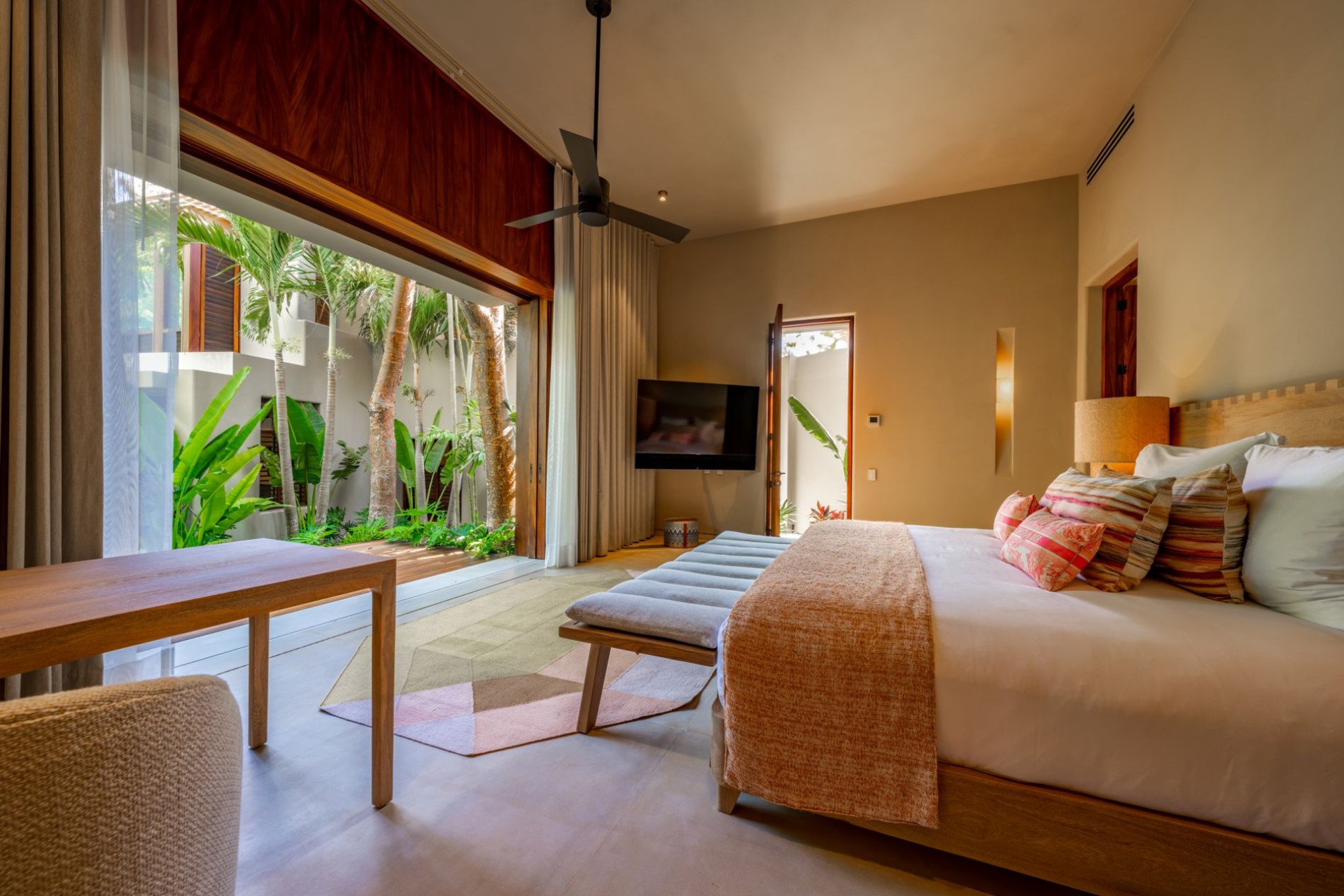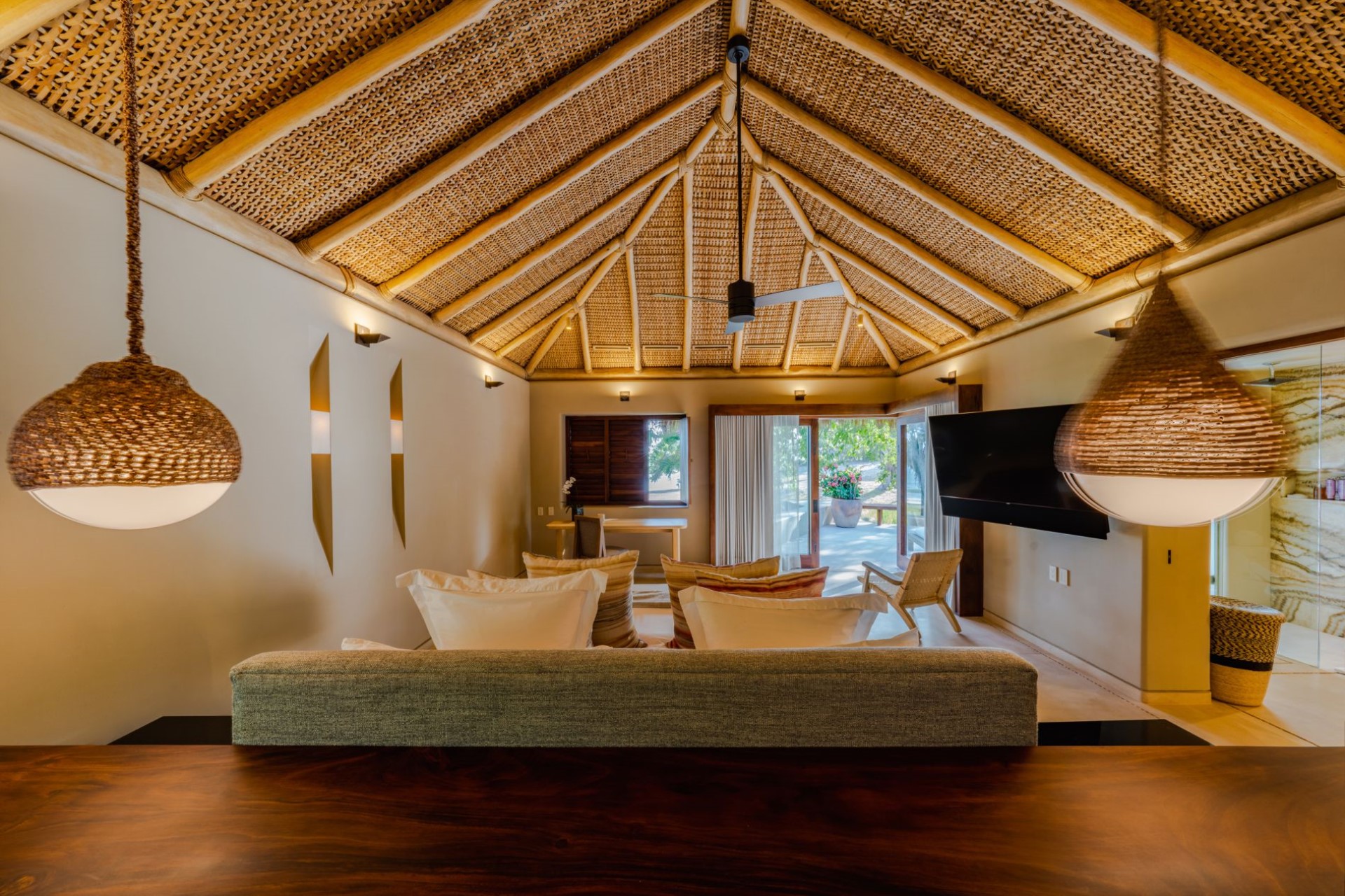 The heart of the villa is the grand palapa, a spacious open-air living area perfect for entertaining or simply relaxing. It offers plenty of lounge seating, a Tequila bar, and a beautiful dining table for relaxed al fresco meals.