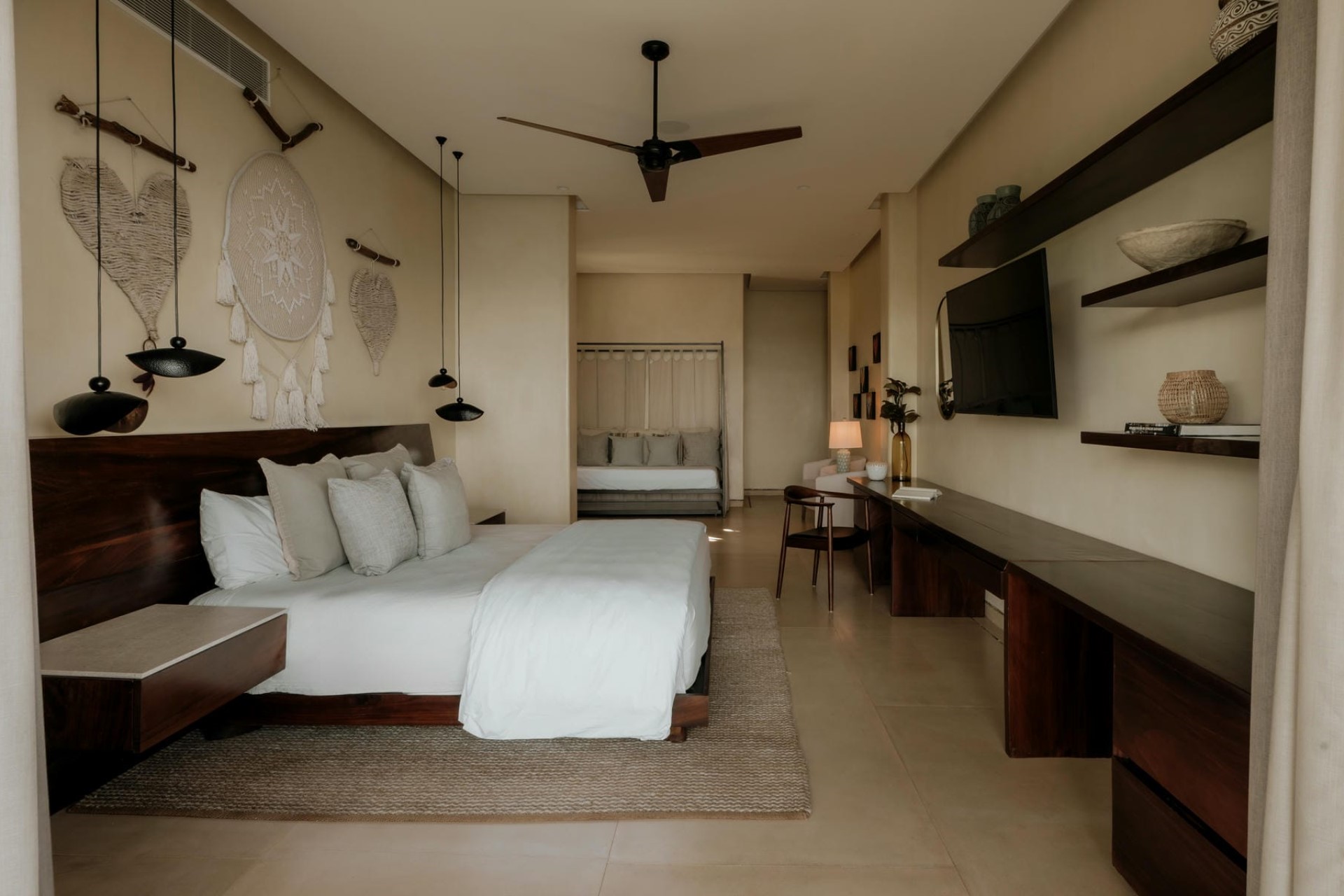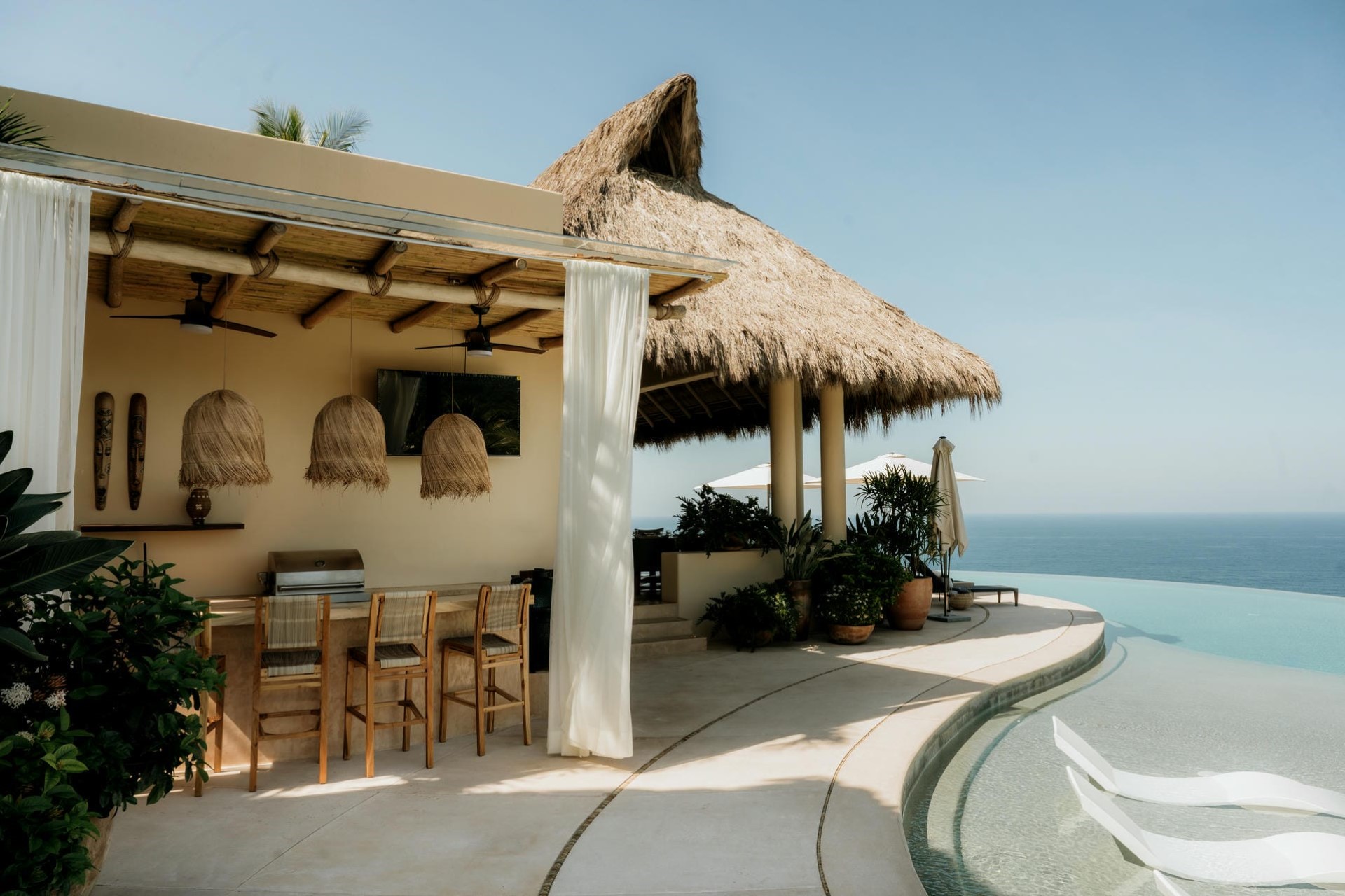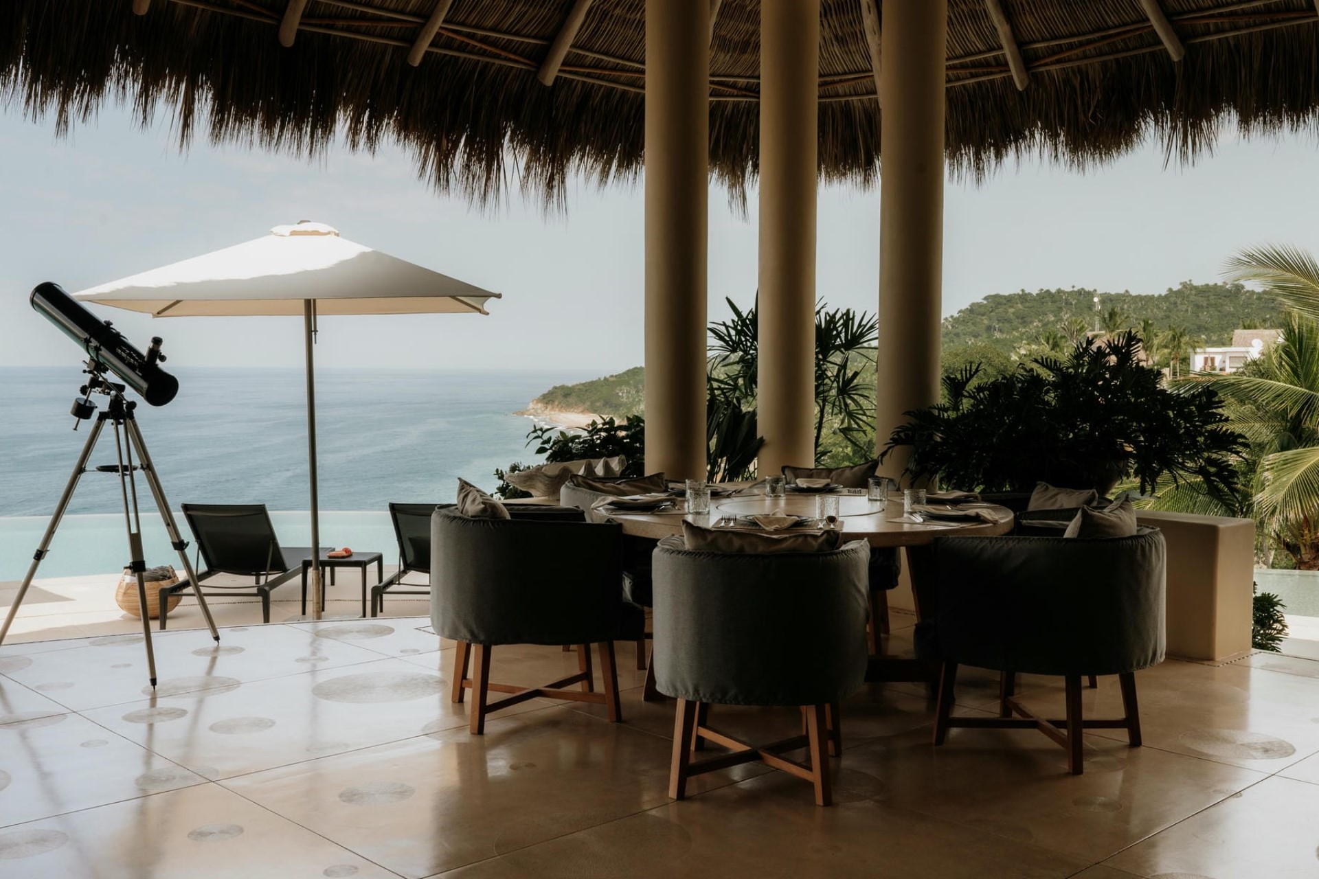 Designed by a renowned Mexican architect, the interiors blend sleek, contemporary lines with traditional elements and local materials. The use of natural stone, rich hardwoods, and vibrant textiles creates a warm and inviting atmosphere that complements the breathtaking views from every room. Large, open-air living spaces blur the line between indoor and outdoor living, allowing guests to feel the gentle ocean breeze and hear the rhythmic sound of the waves no matter where they are.