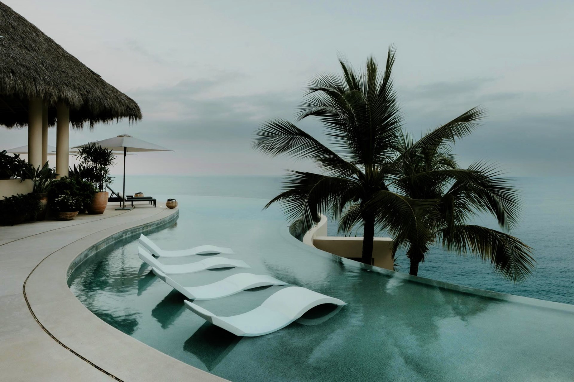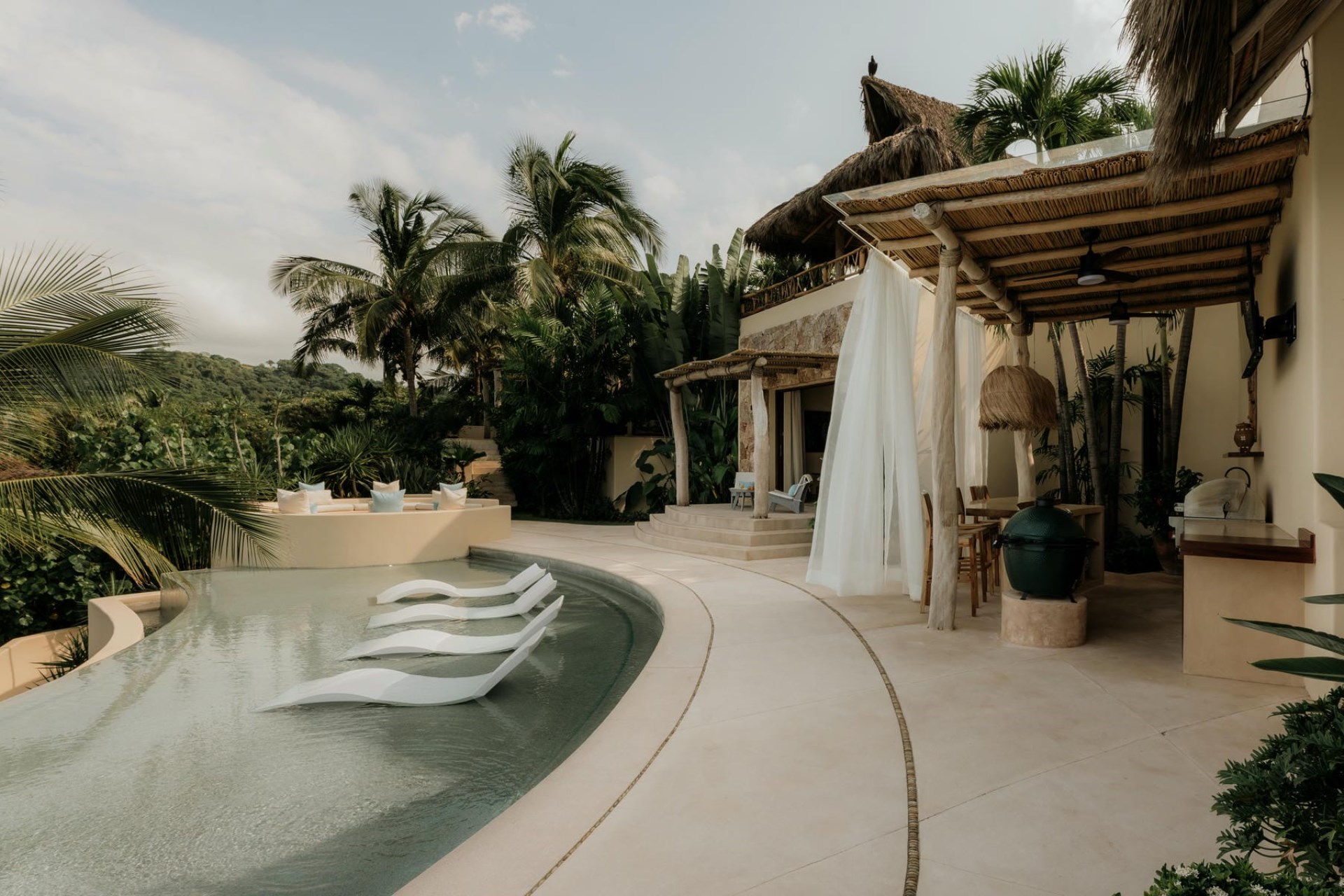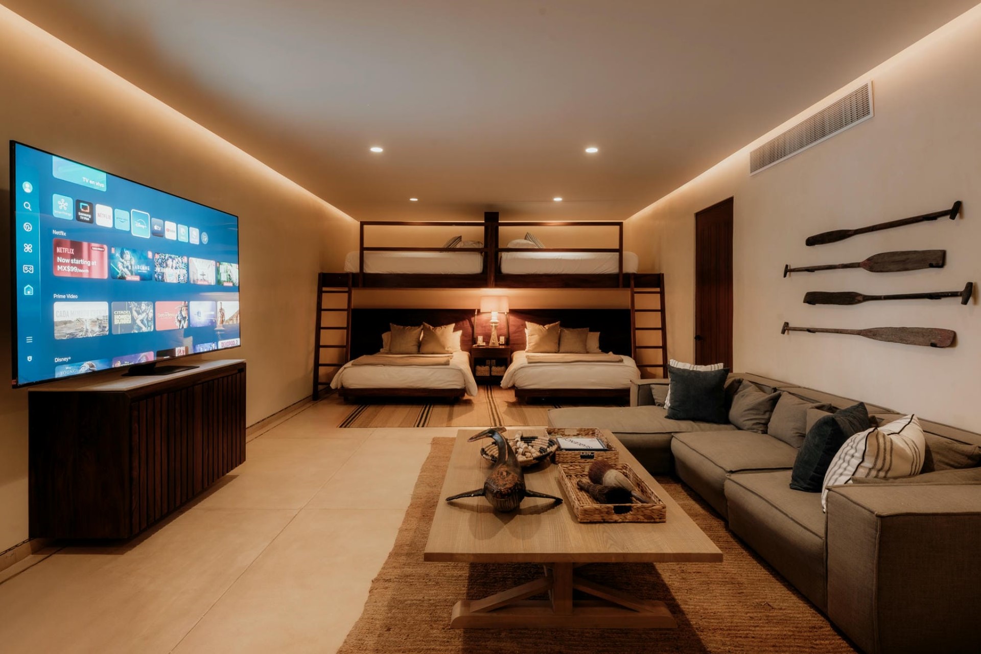 Designed by a renowned Mexican architect, the interiors blend sleek, contemporary lines with traditional elements and local materials. The use of natural stone, rich hardwoods, and vibrant textiles creates a warm and inviting atmosphere that complements the breathtaking views from every room. Large, open-air living spaces blur the line between indoor and outdoor living, allowing guests to feel the gentle ocean breeze and hear the rhythmic sound of the waves no matter where they are.