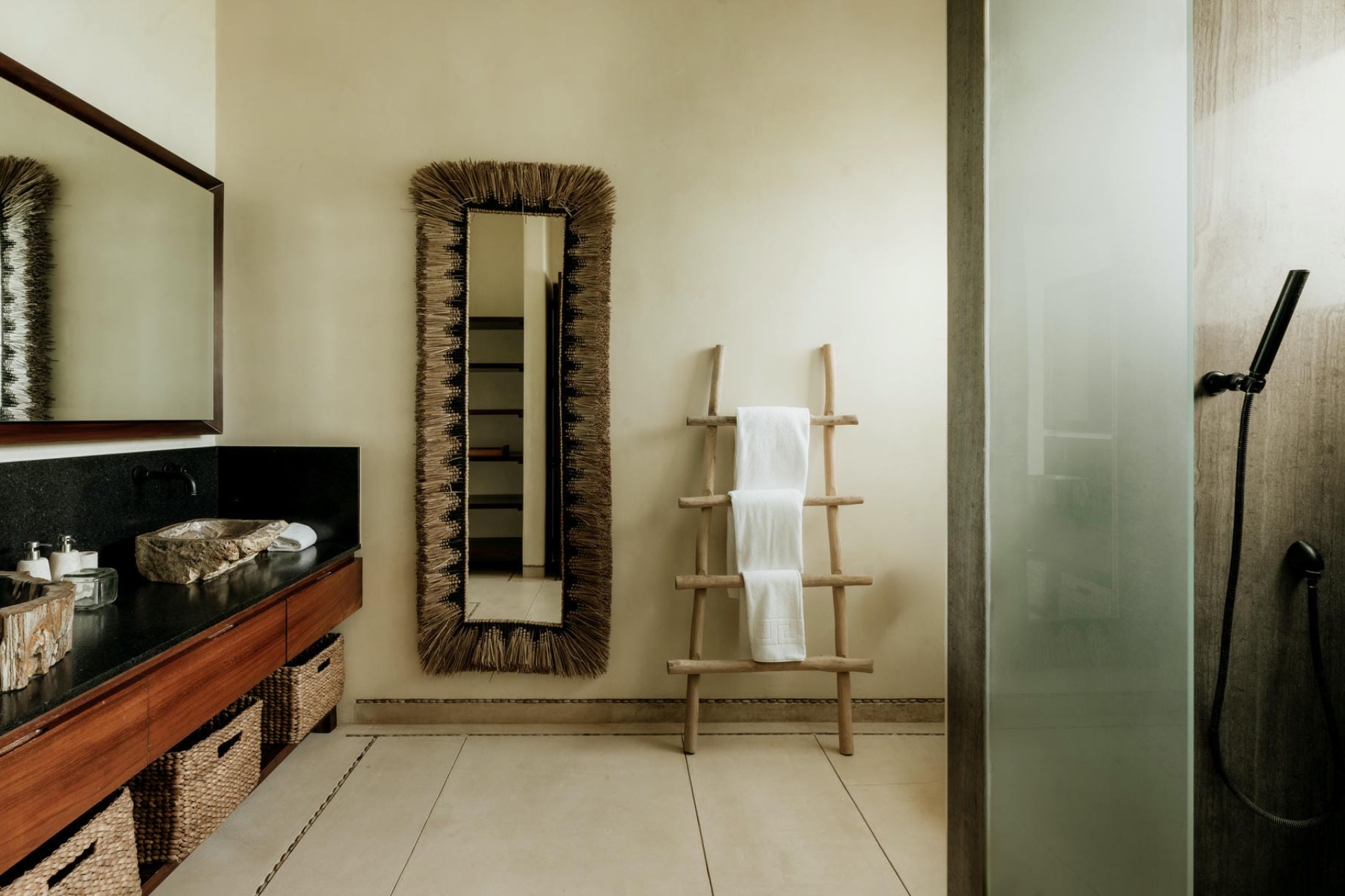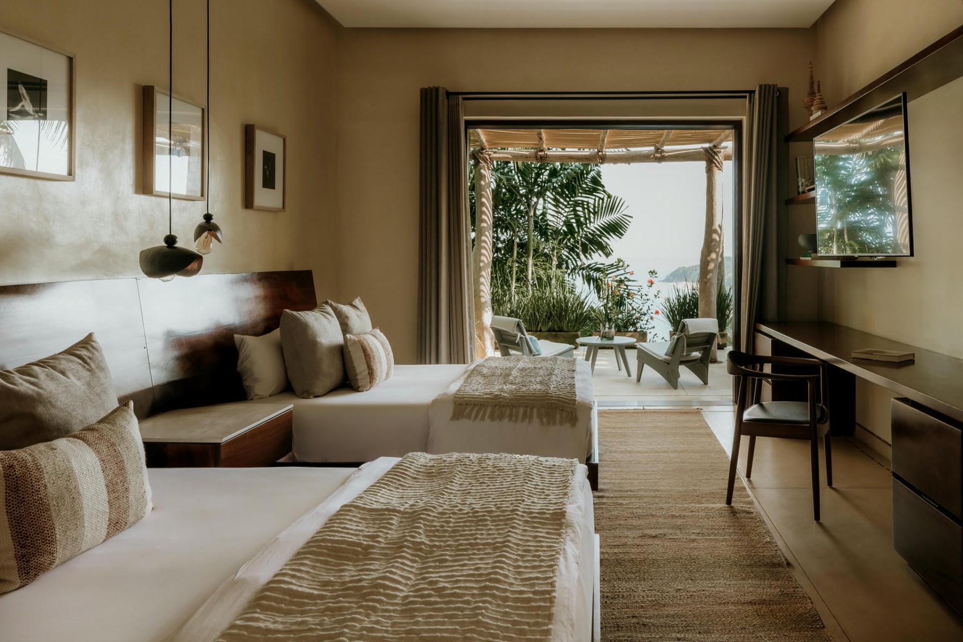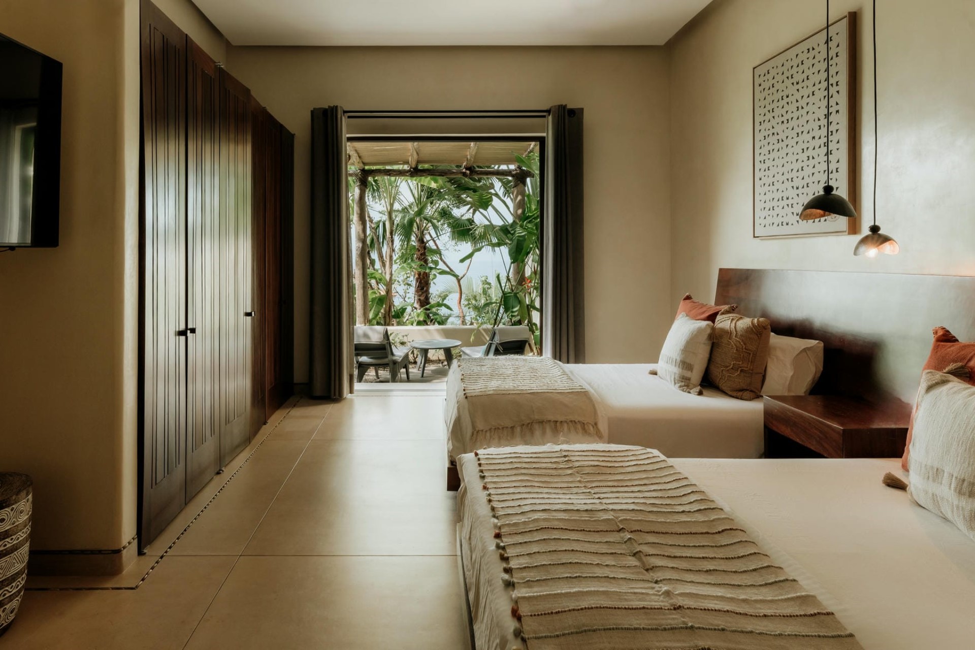 Tierra Bedroom – 2 x queen-size bed, dressing room, en-suite bathroom with shower + outdoor shower, and private terrace