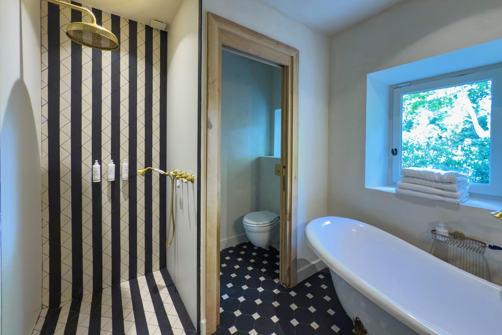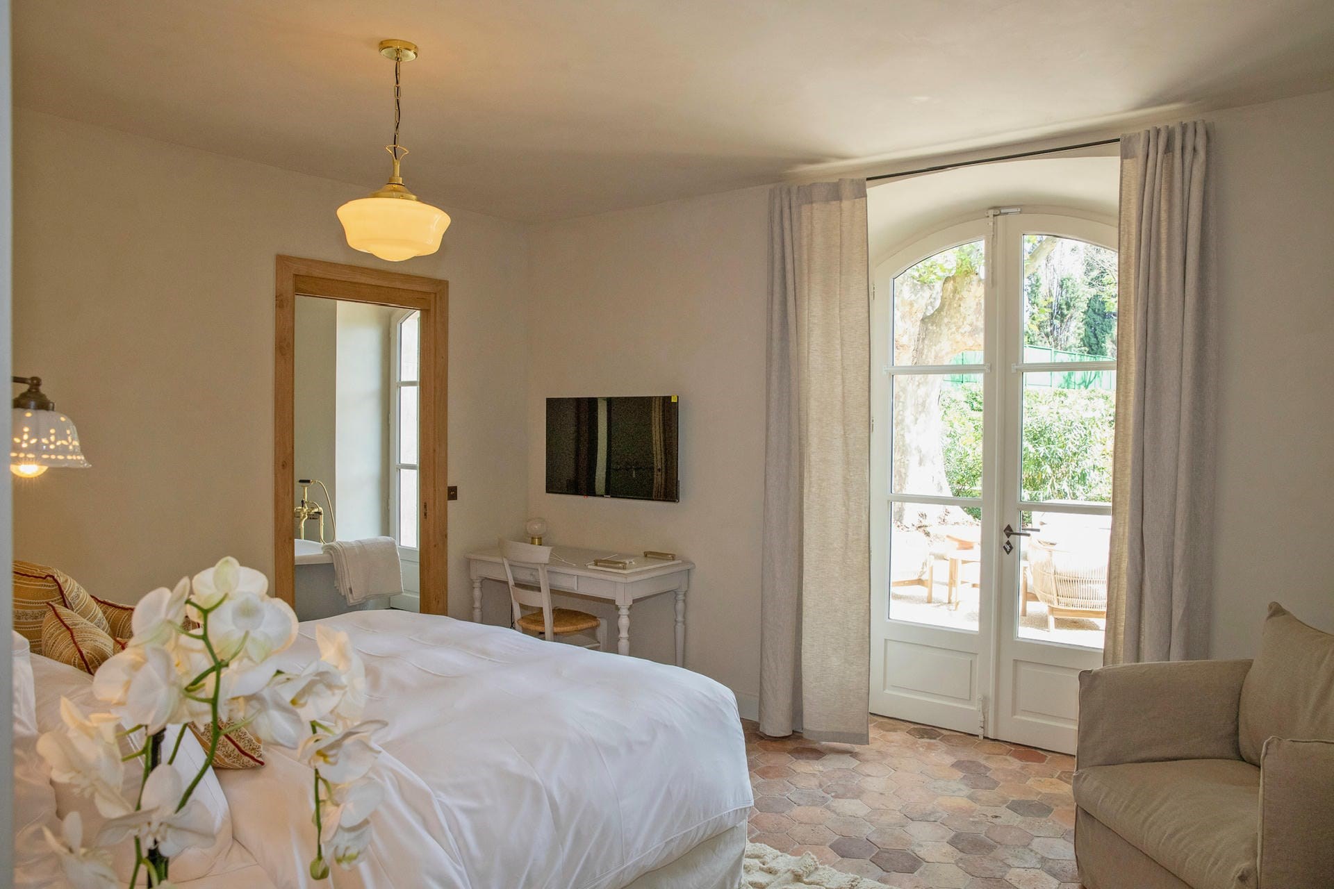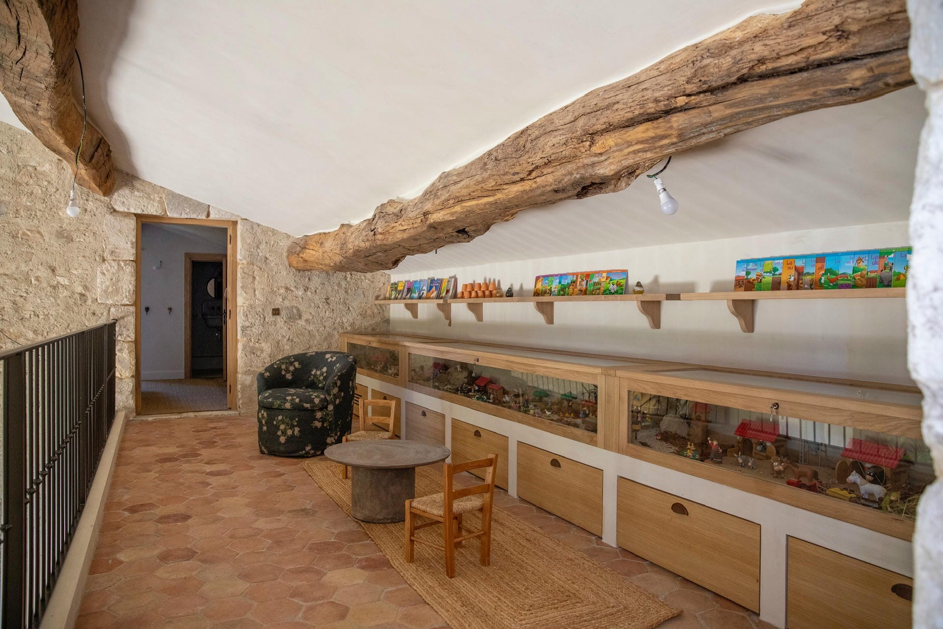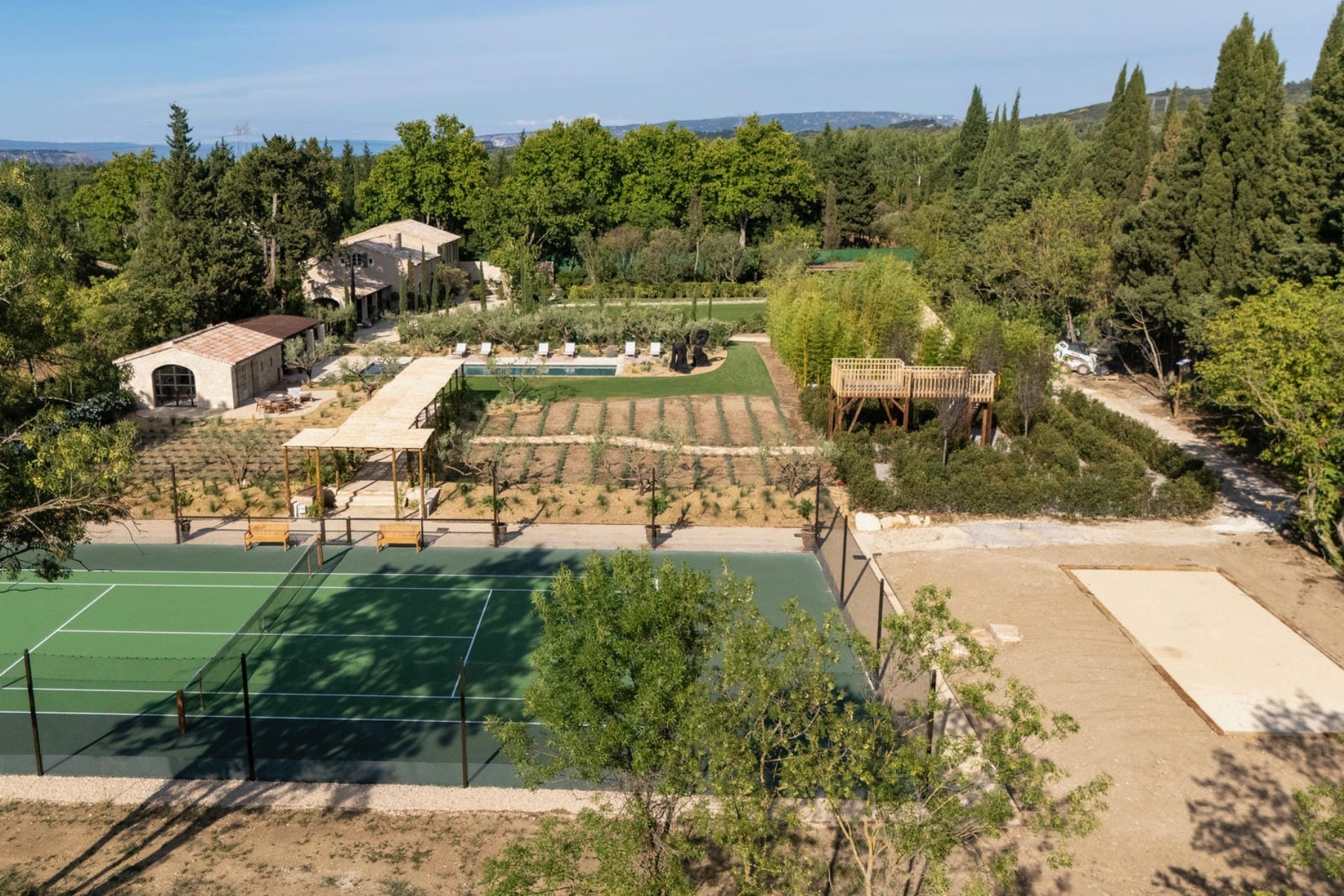 In the center of the garden, there is a heated 17-meter swimming pool, lined with sun loungers around its edges and a shaded lounge area at one end. After taking a dip, guests can engage in a lively round of tennis on the private court, which is surrounded by centuries-old olive trees. For a more relaxed option, a boules court shaded by medlar trees invites relaxed competition.