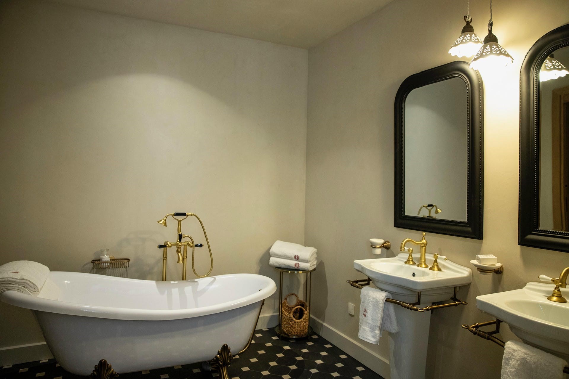 Bedroom 5 – king-size bed and en-suite bathroom with dual vanity, bathtub & separate shower