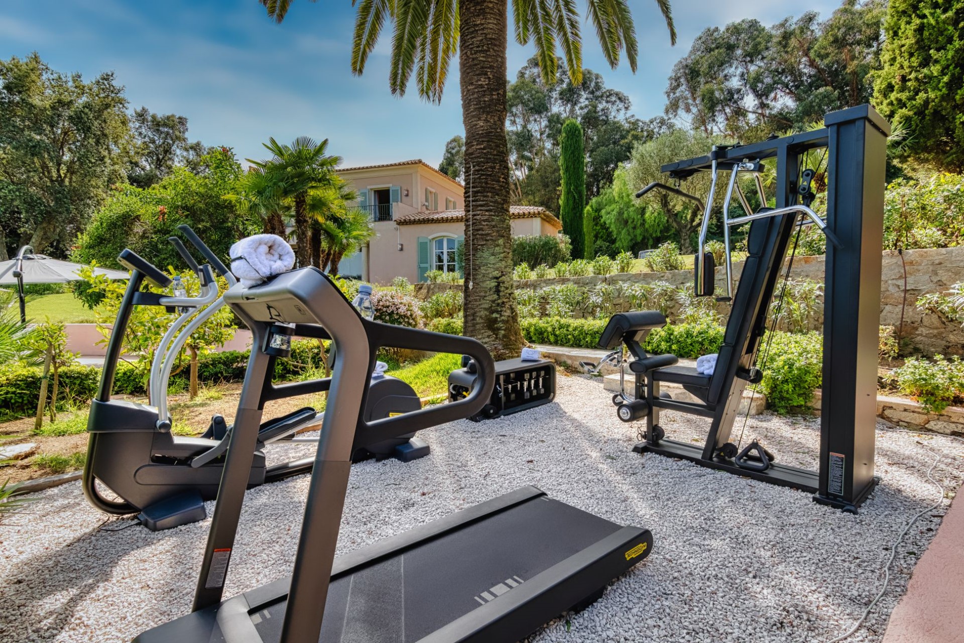 Beside this is a pool house with a lounge area, a barbecue and outdoor bar area, ideal for relaxed afternoons spent soaking up the sun and surrounds. There’s also an outdoor gym with modern Technogym equipment, providing space for a workout with a view, as well as a separate massage and spa treatment area.