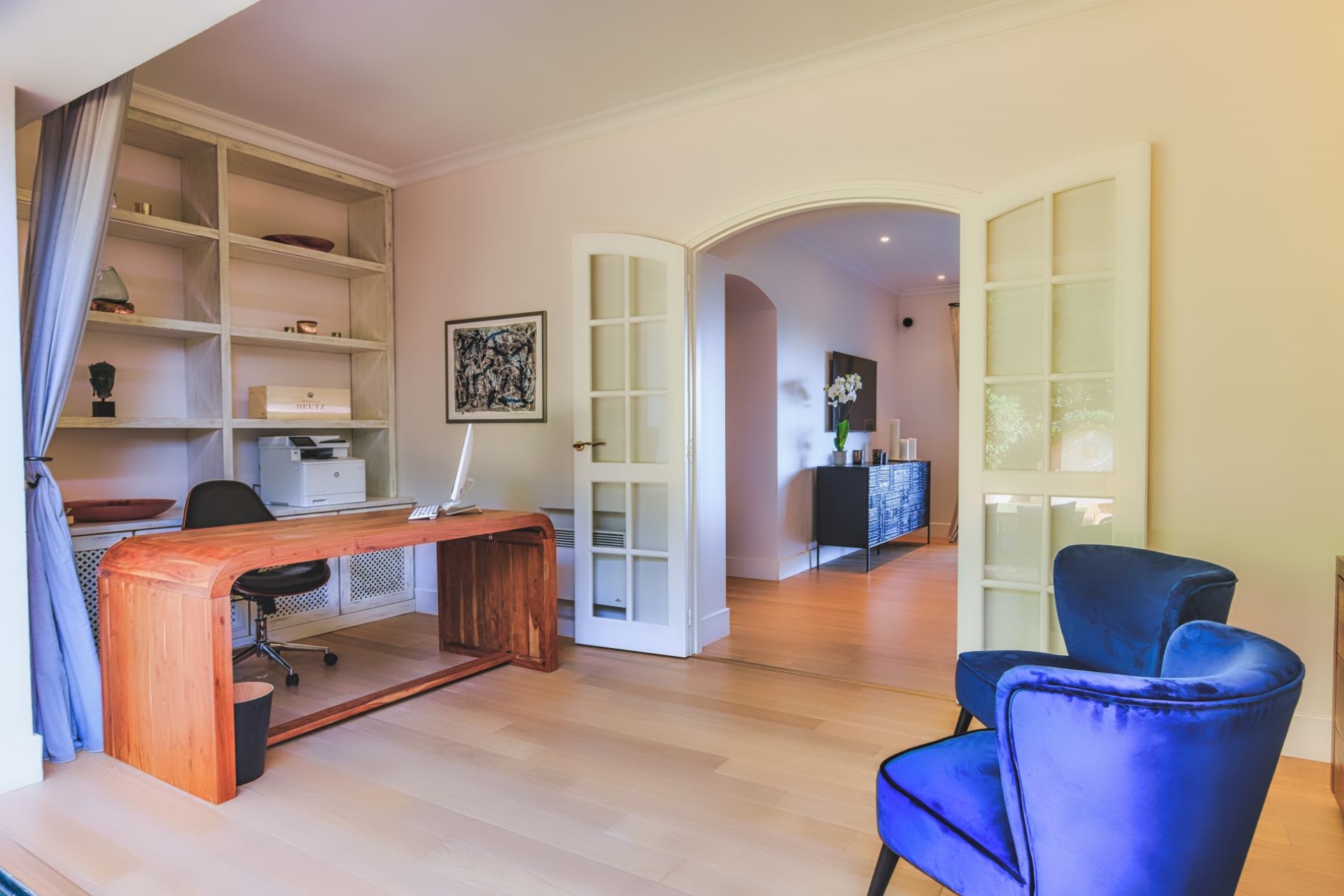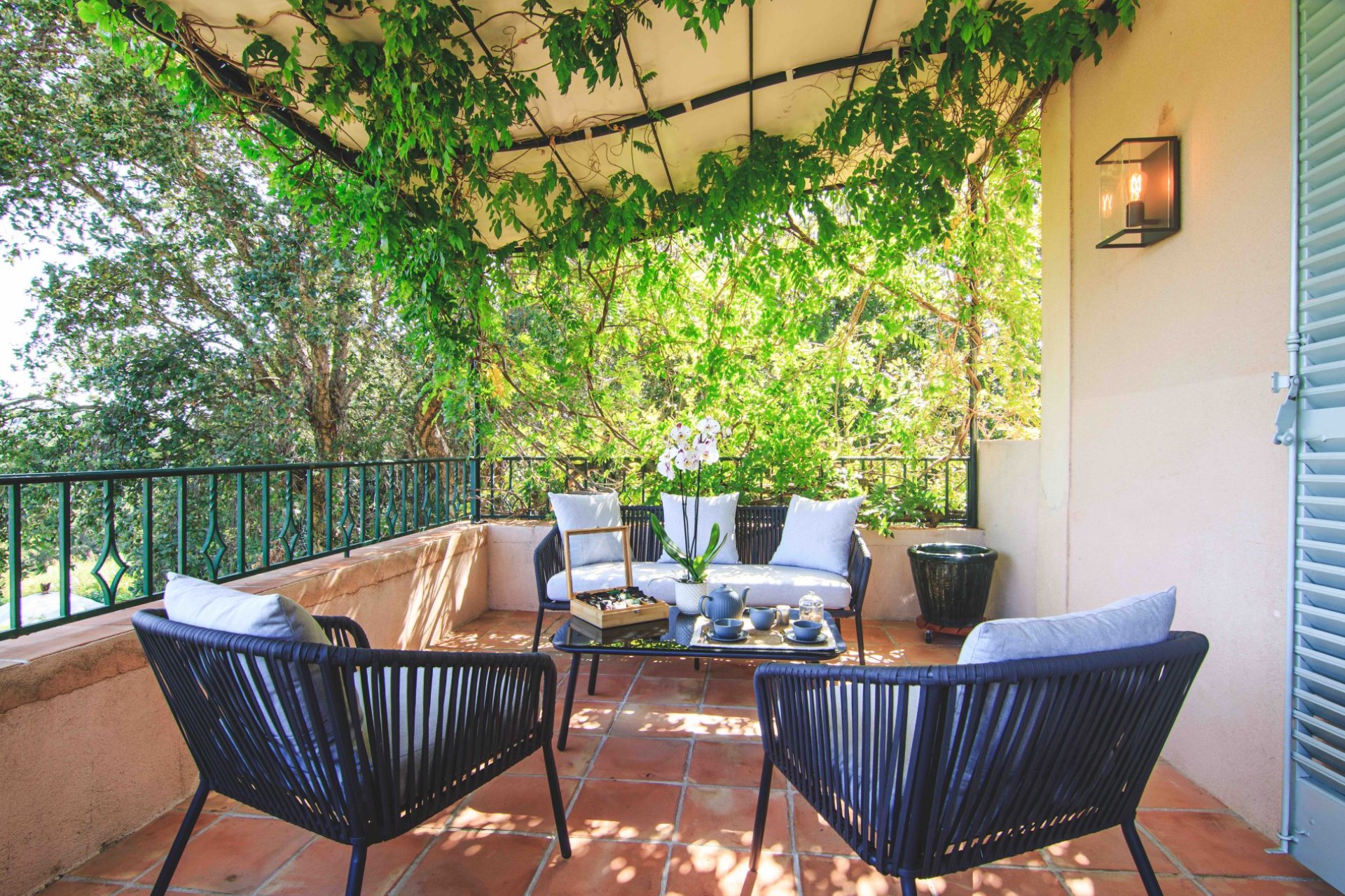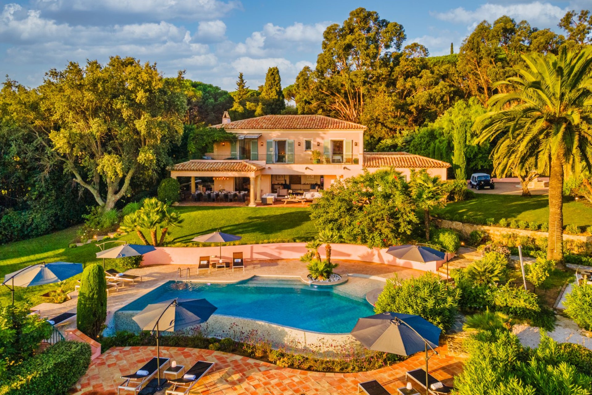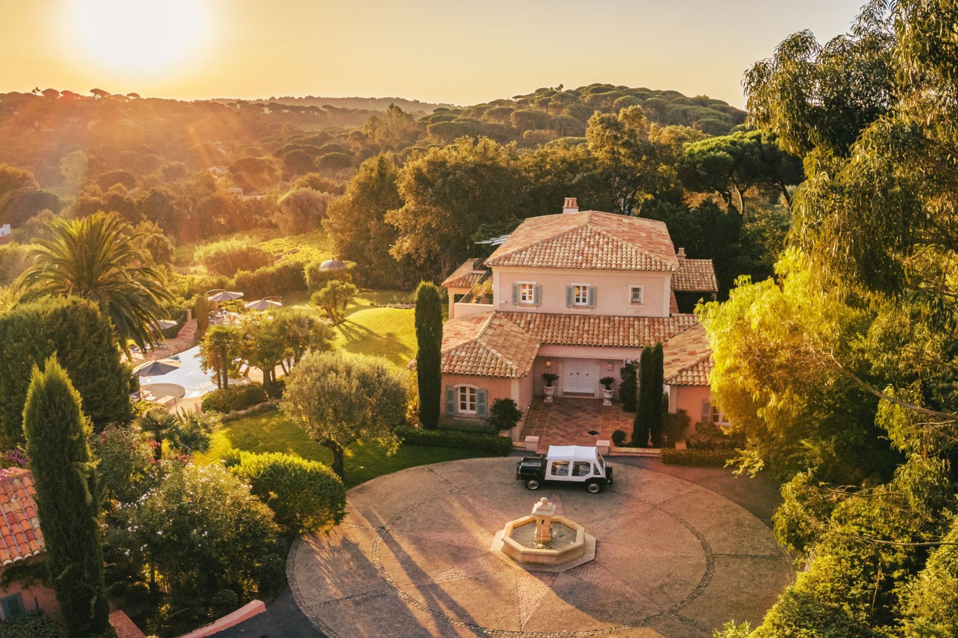 Set on a plot stretching over 4800 square metres of wooded and landscaped land, the property features lush gardens and verdant lawns. The centre point of the gardens is the 12-metre swimming pool, surrounded by a paved terrace flanked with sun loungers and umbrellas.