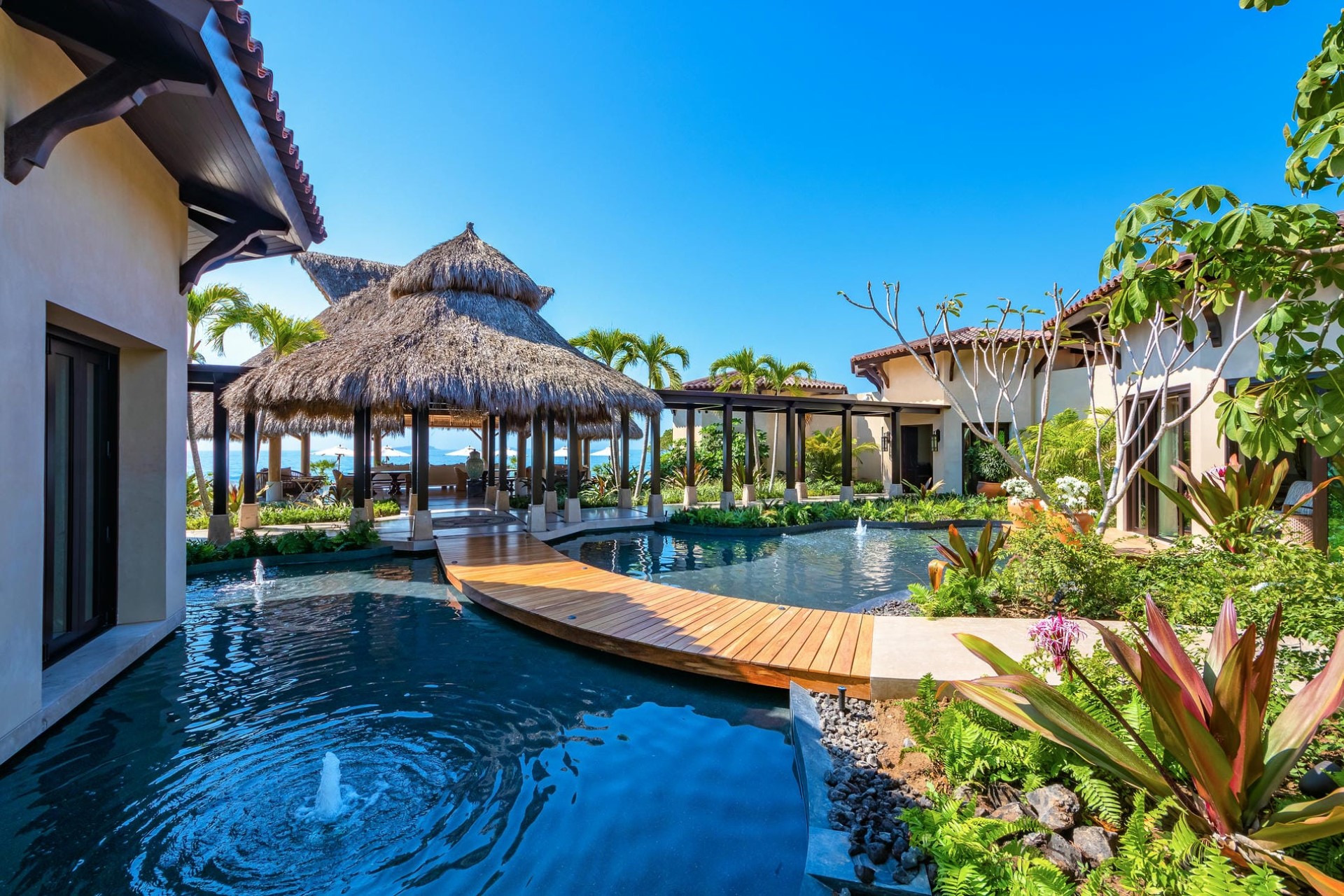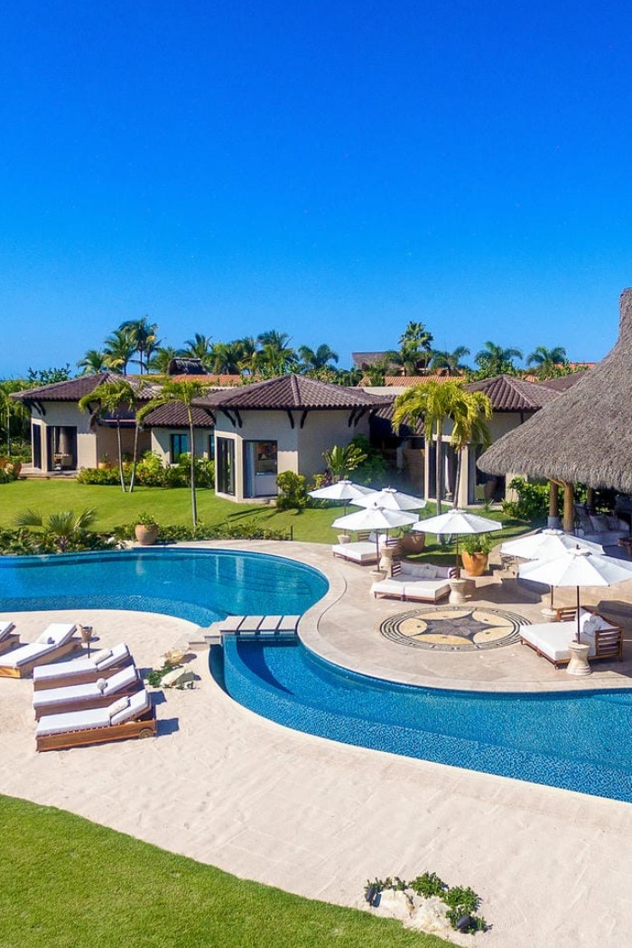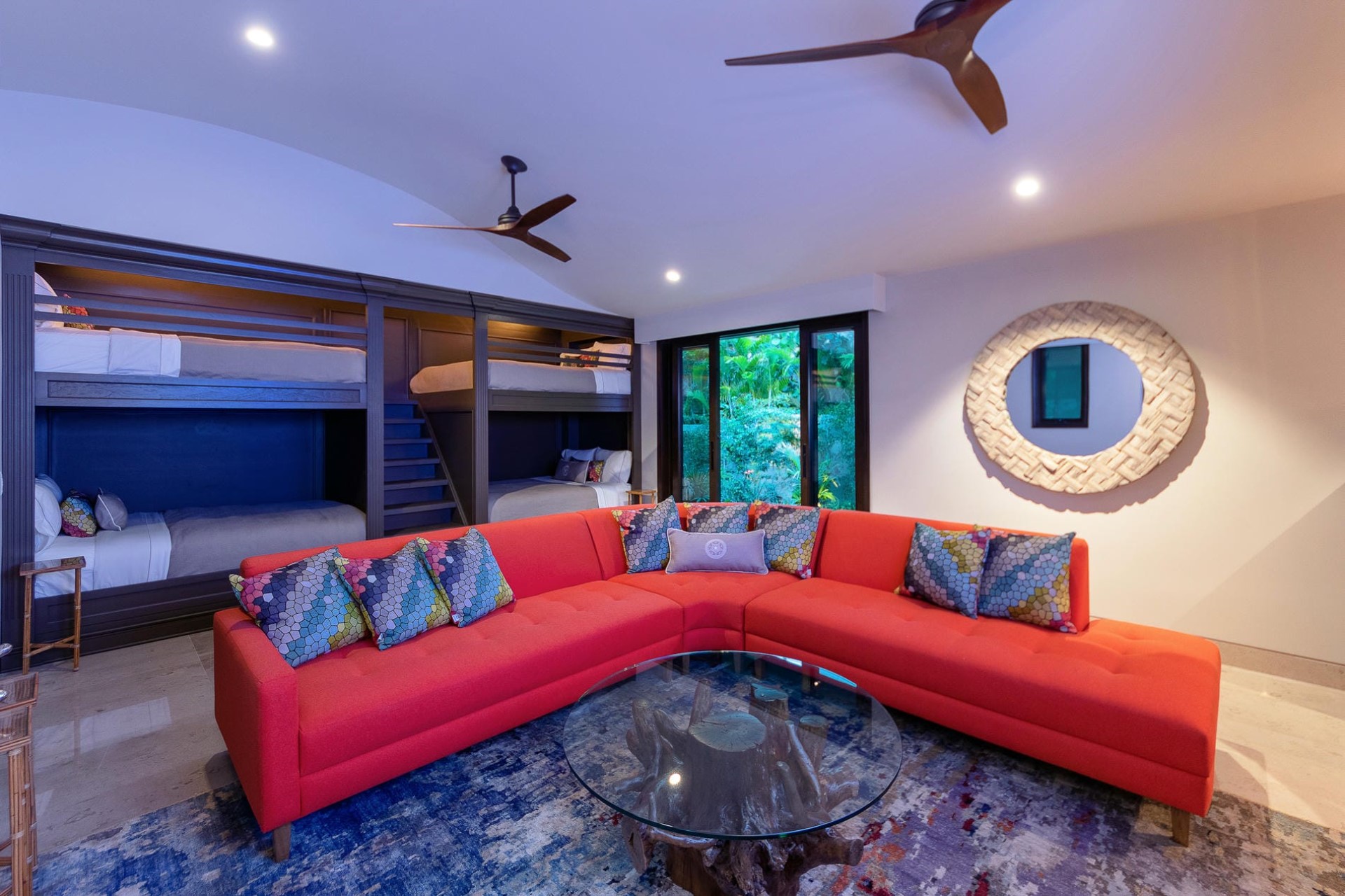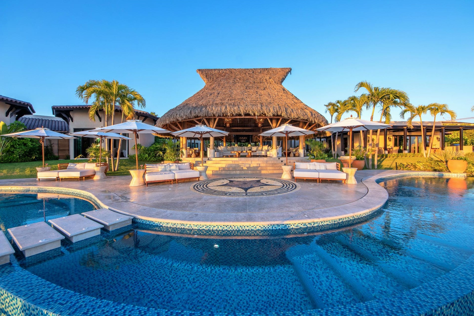 This impressive 24,700-square-foot oceanfront oasis provides ample space for relaxation and socialising with loved ones. At the heart of the villa is the vast outdoor palapa, which connects the separate structures of the estate via wooden walkways. Crafted by local artisans, this traditional palapa features a semi-circle of plush lounges, oversized chairs, games tables, and a beautiful wooden dining table overlooking the pool and the ocean beyond. With free-flowing ocean breezes and stunning views, it’s the perfect place to enjoy casual brunches, sunset cocktails, or elegant dinner parties.