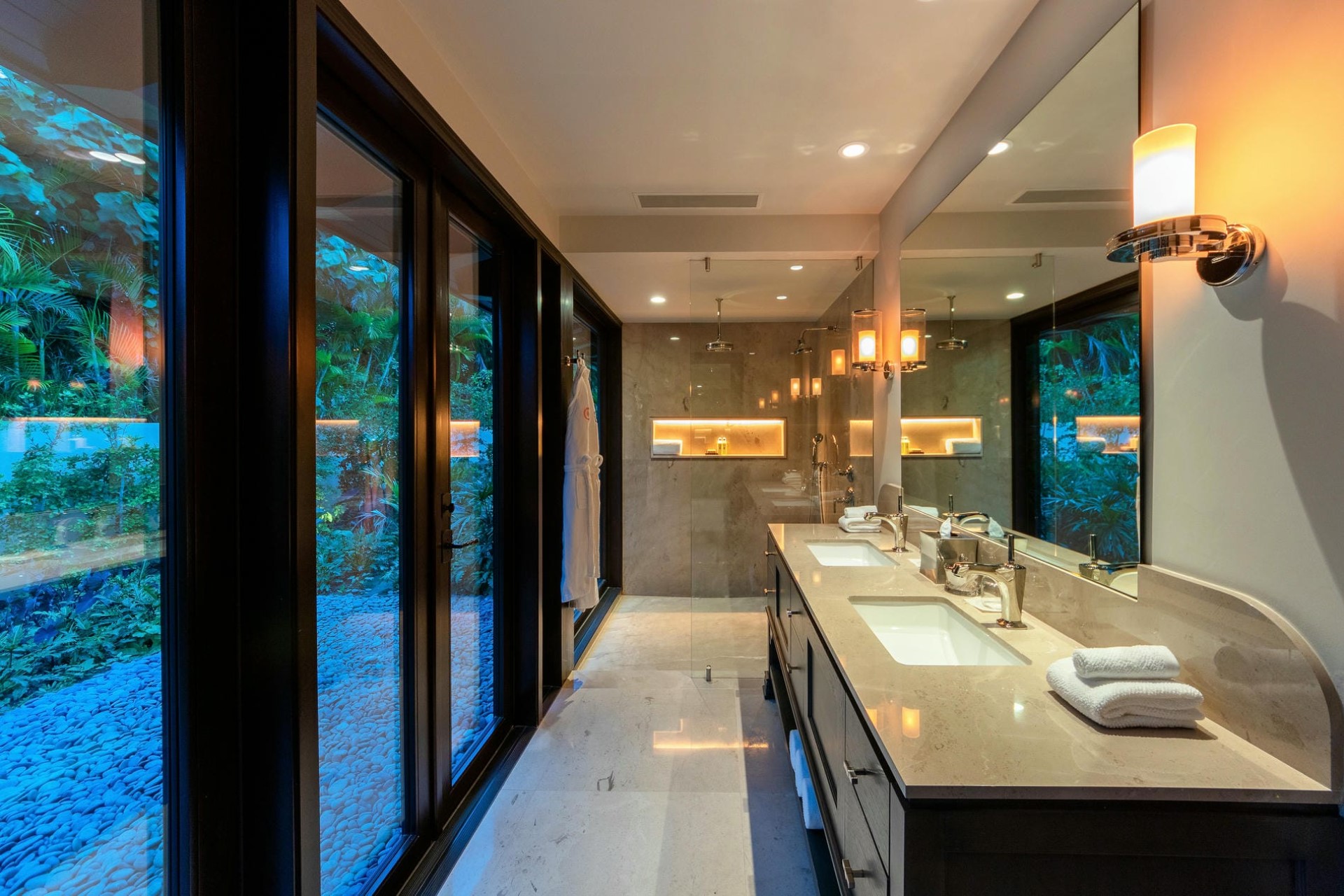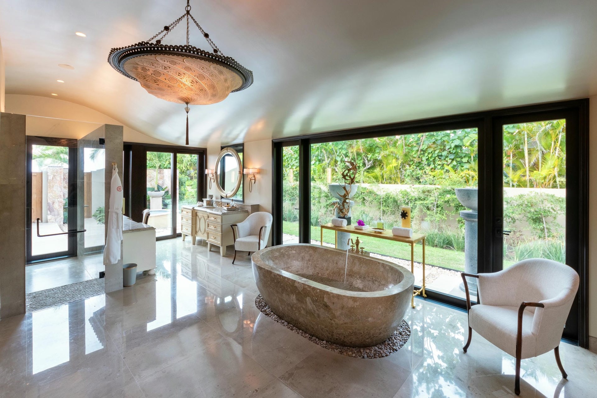 The villa’s design flawlessly blends opulence and comfort to please even the most discerning guests. Floor-to-ceiling windows in the elegant dining room and most suites allow for breathtaking views and the flow of fresh tropical breezes throughout.