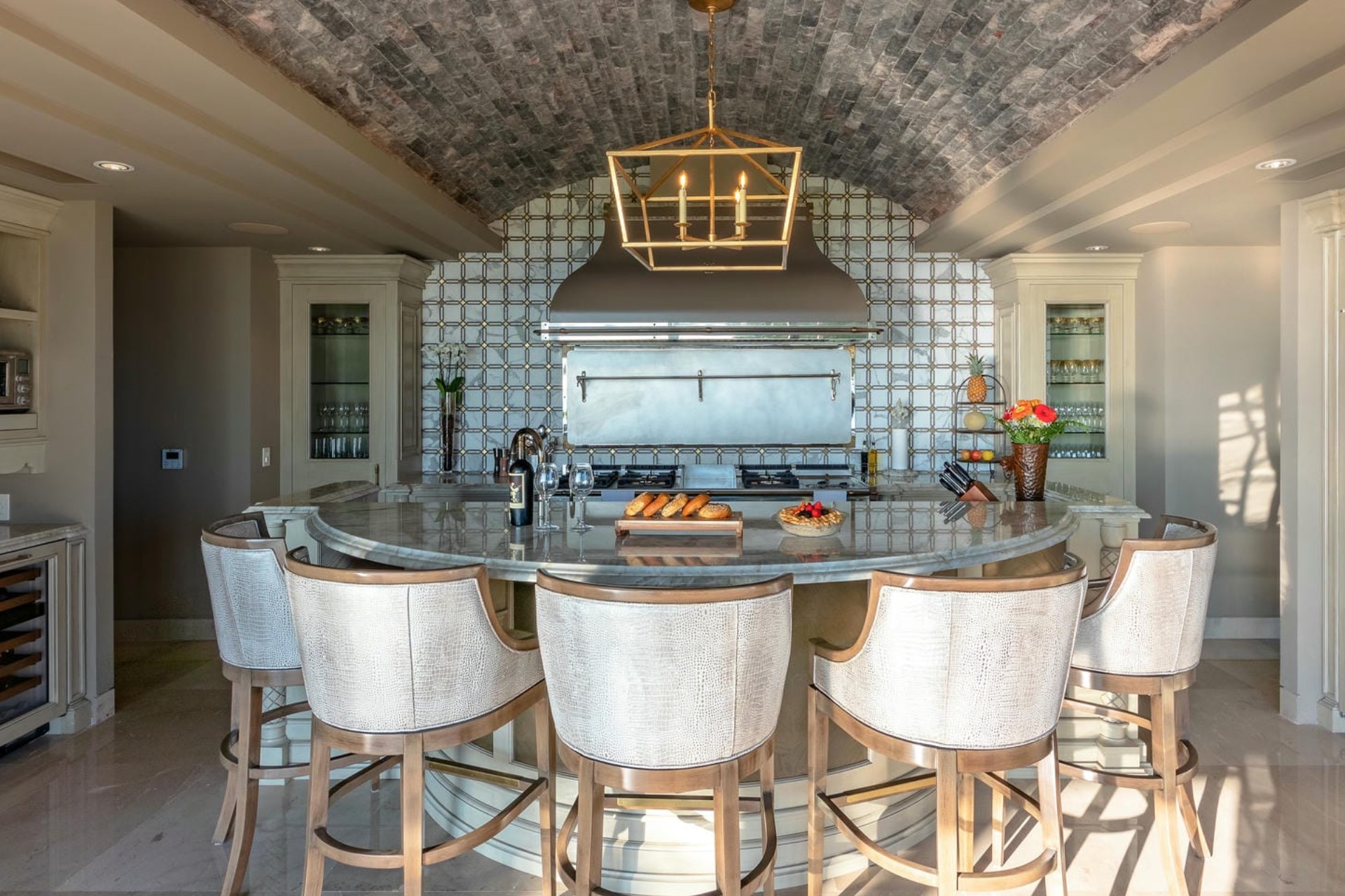 A separate terrace leads to an outdoor kitchen with a stone grill and a wood-fired pizza oven, perfect for relaxed barbecue meals. Adjoining the barbecue terrace is a professionally appointed kitchen where the private chef will prepare delectable feasts using fresh, locally sourced ingredients.