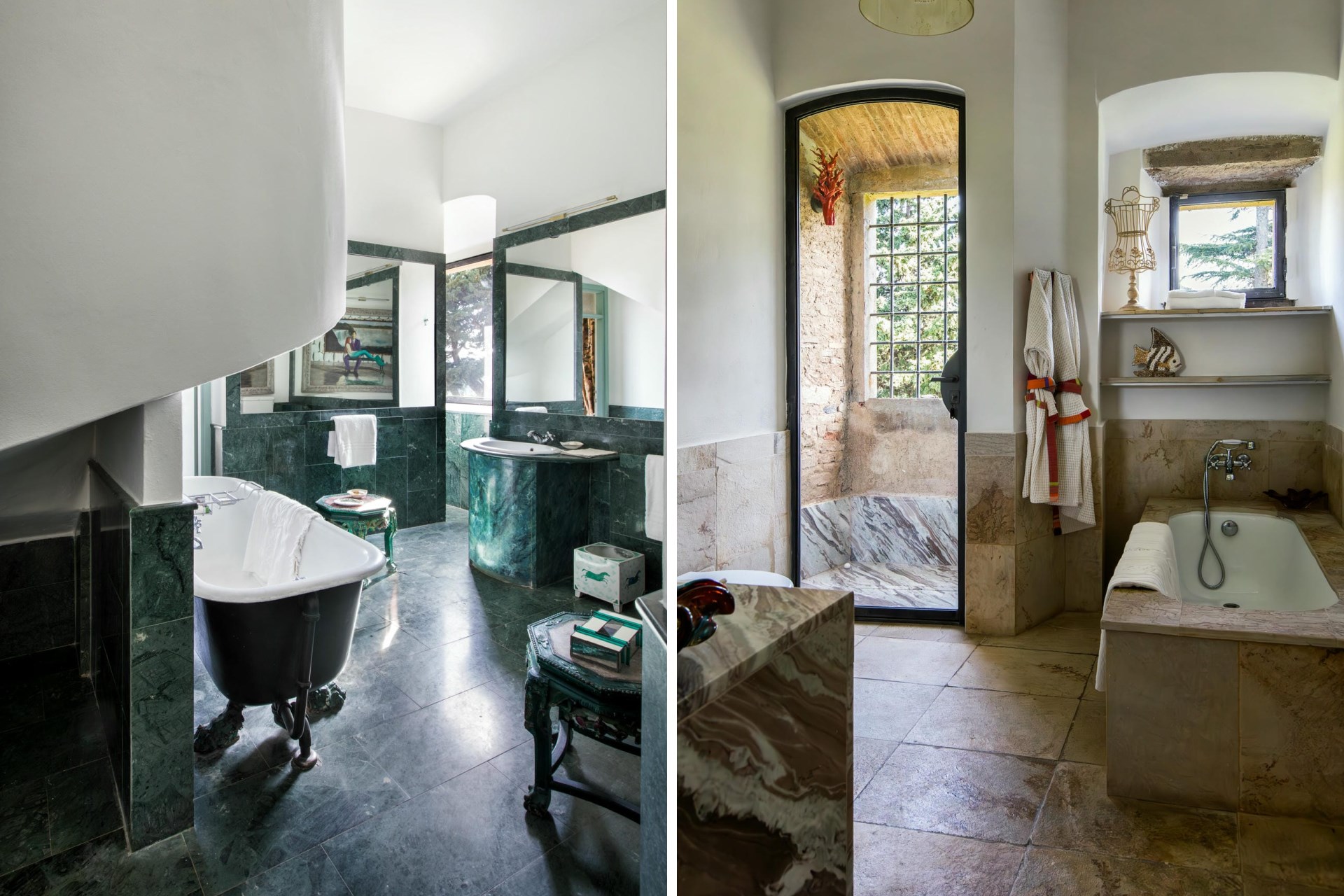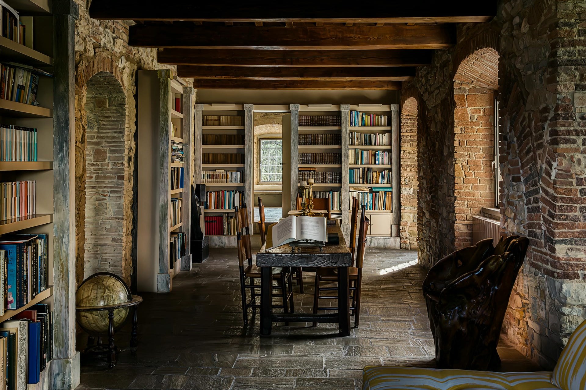 Inside its ancient ramparts and stone walls, the castle boasts chic, contemporary interiors that effortlessly blend with period features. A magical atmosphere is created by the details in each room, from the exposed stone walls in the main salon to the prestigious art collection displayed in the library.