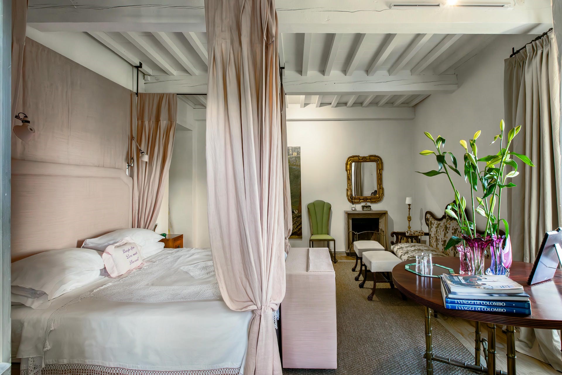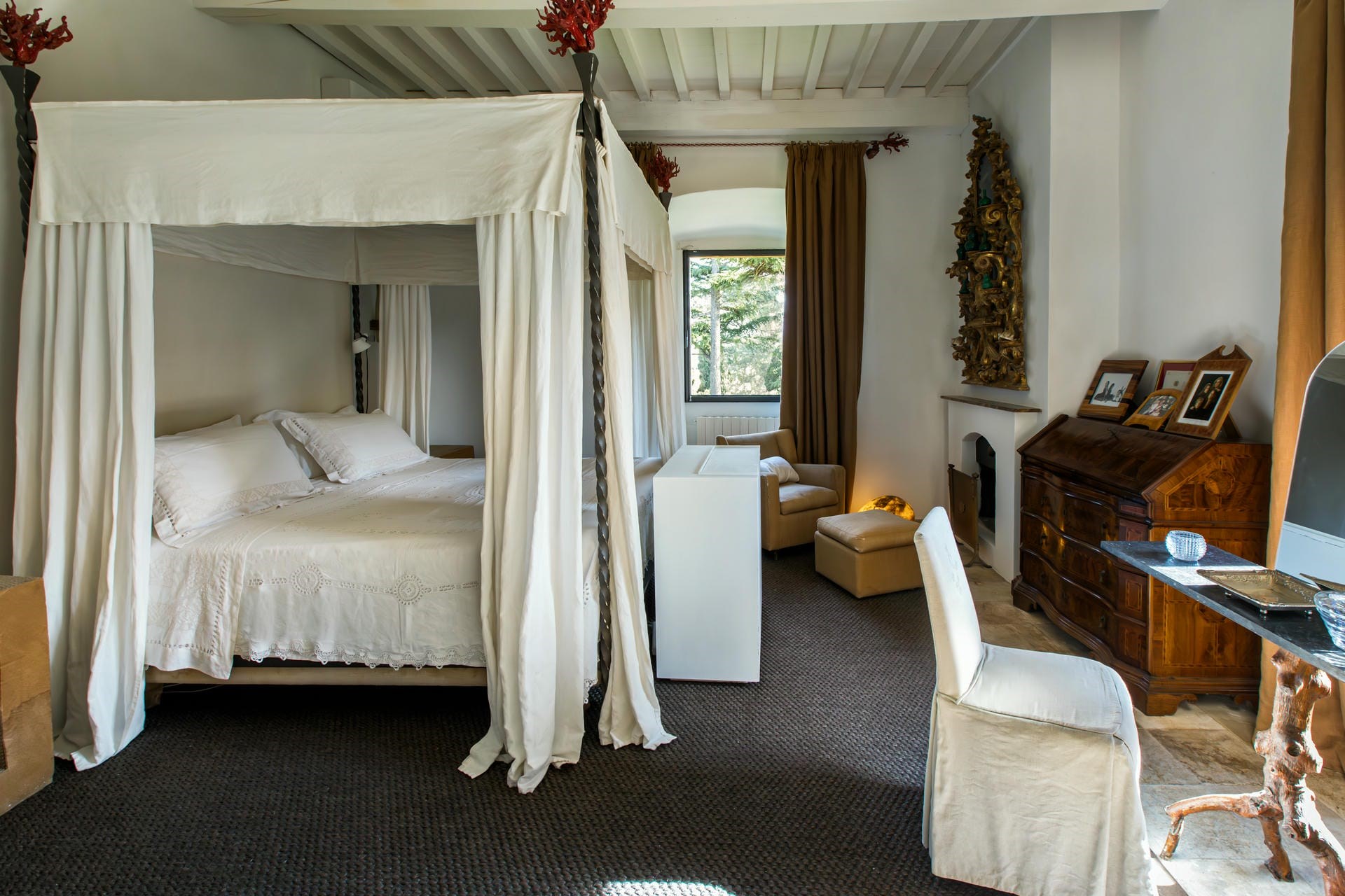 Up to 20 guests can be accommodated in 10 beautifully appointed bedrooms, each featuring a unique character created by carefully selected antiques and artisanal touches. All bedrooms boast a crackling fireplace and an en-suite bathroom. Most rooms offer a double bed, though two have twin beds and one has three singles, making them ideal for those travelling with children or teens.
