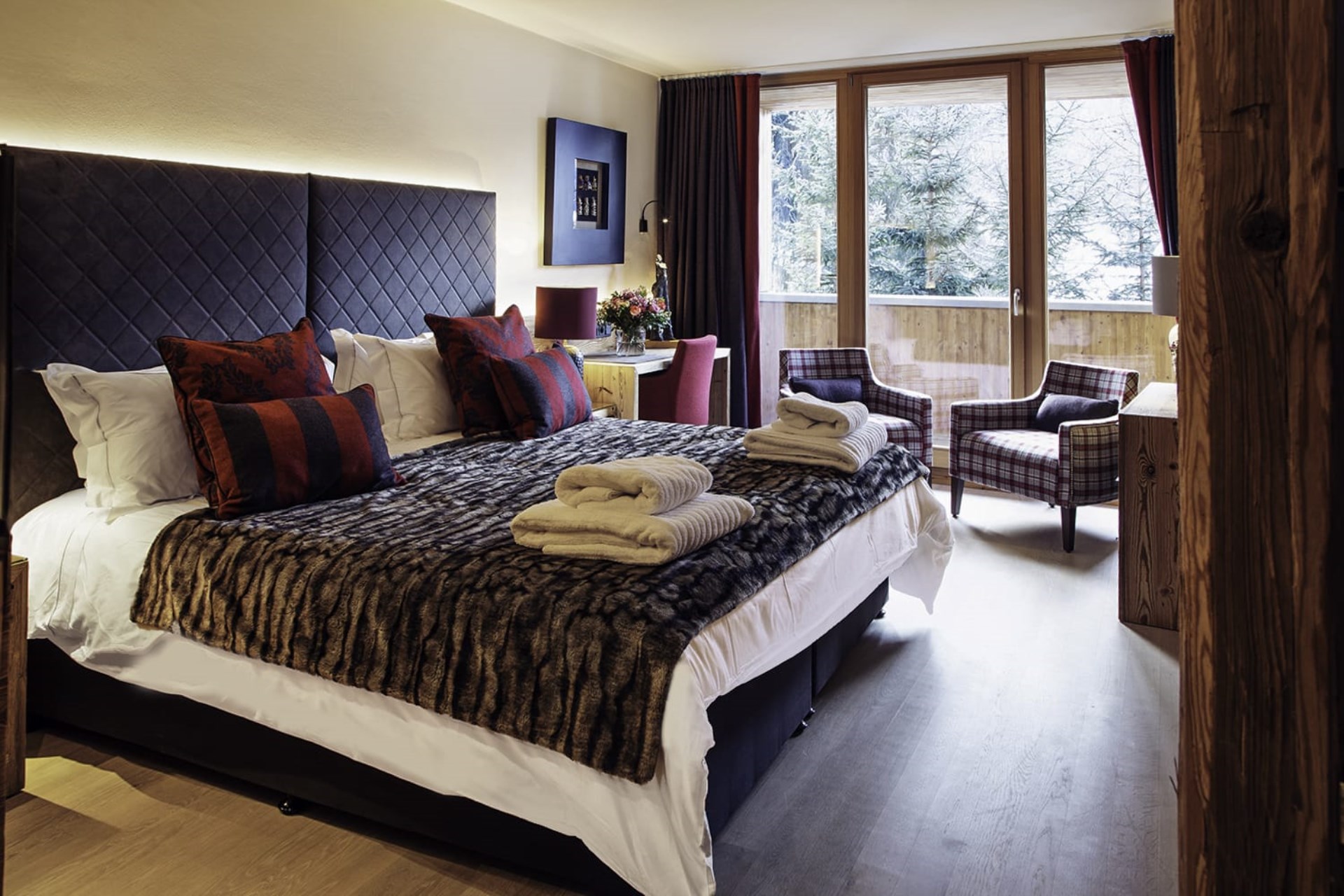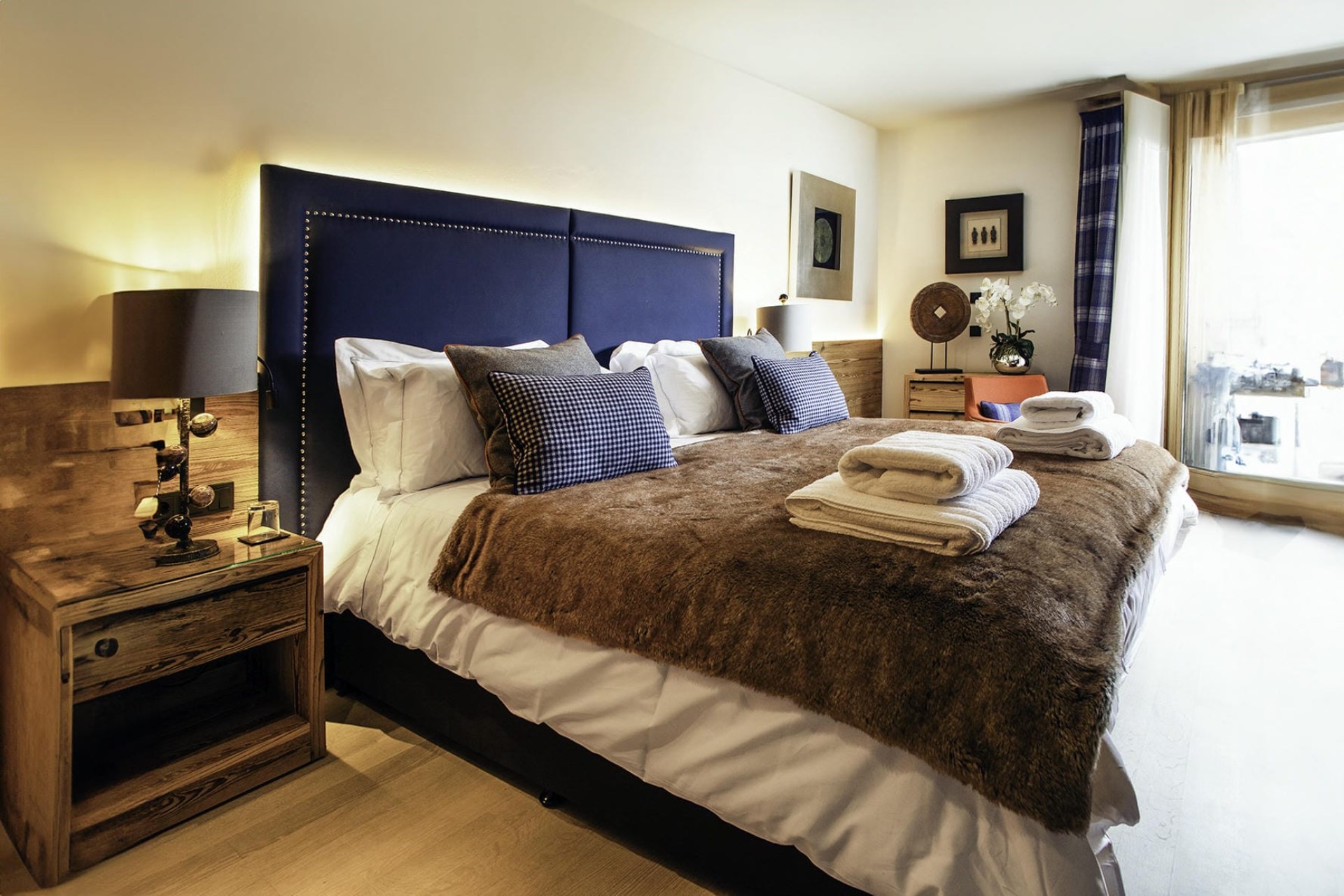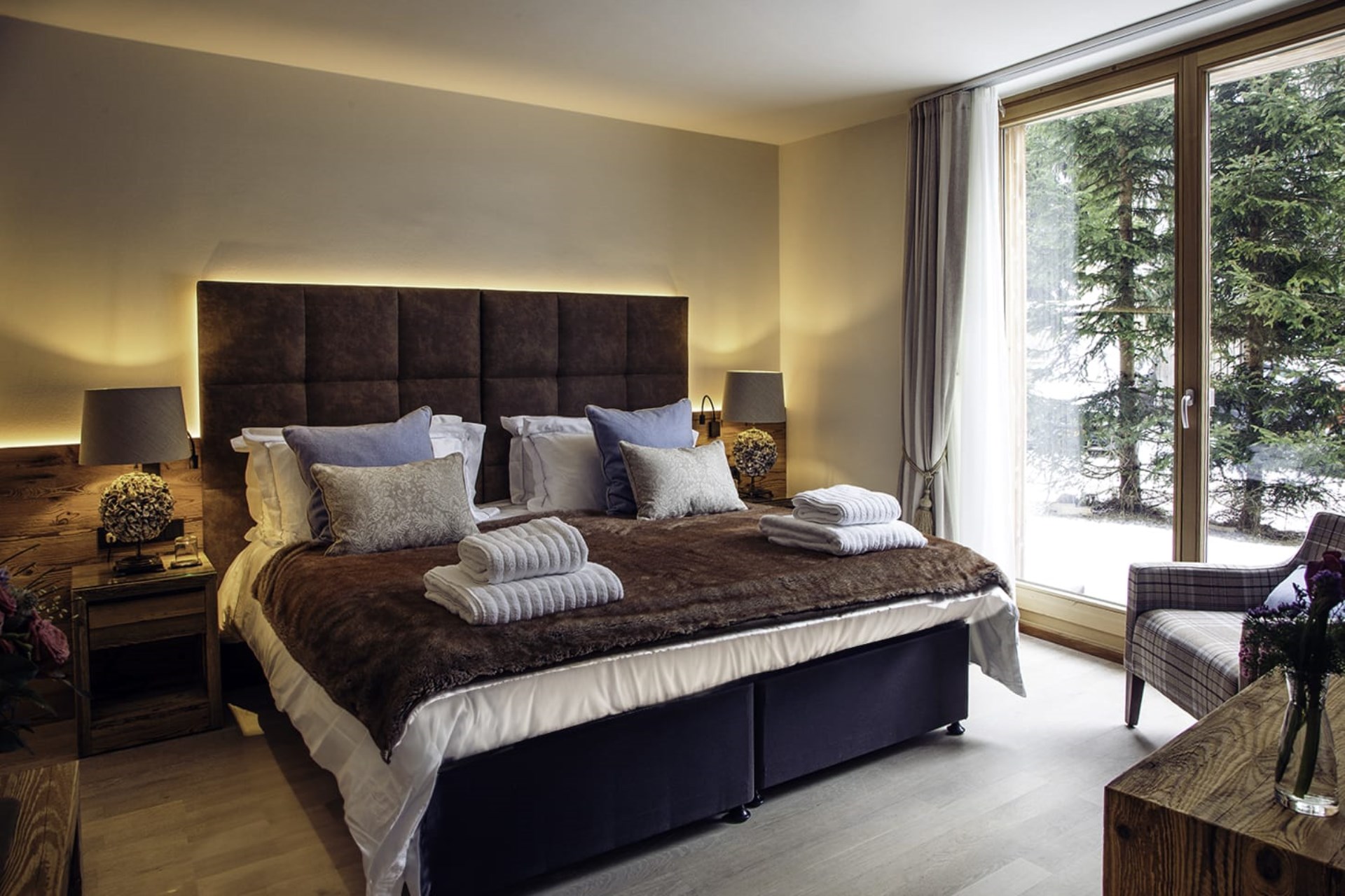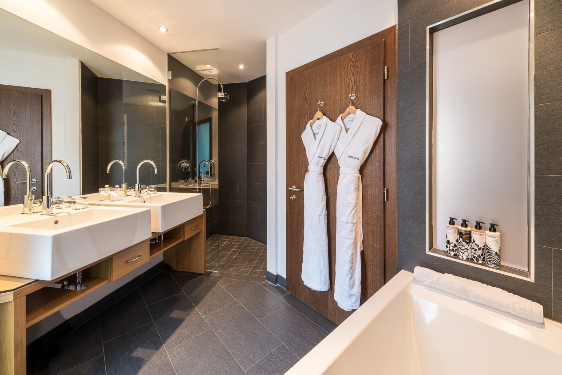 Six luxurious en-suite bedrooms, all named after a Greek god or goddess, are spread across the chalet’s ground and first floors. Each room can be configured as either a double or twin, and all feature luxurious linens and mattresses to ensure a restful night’s sleep after a day on the slopes. Two bedrooms also boast a private terrace, perfect for taking in the views whilst enjoying a moment of solitude.