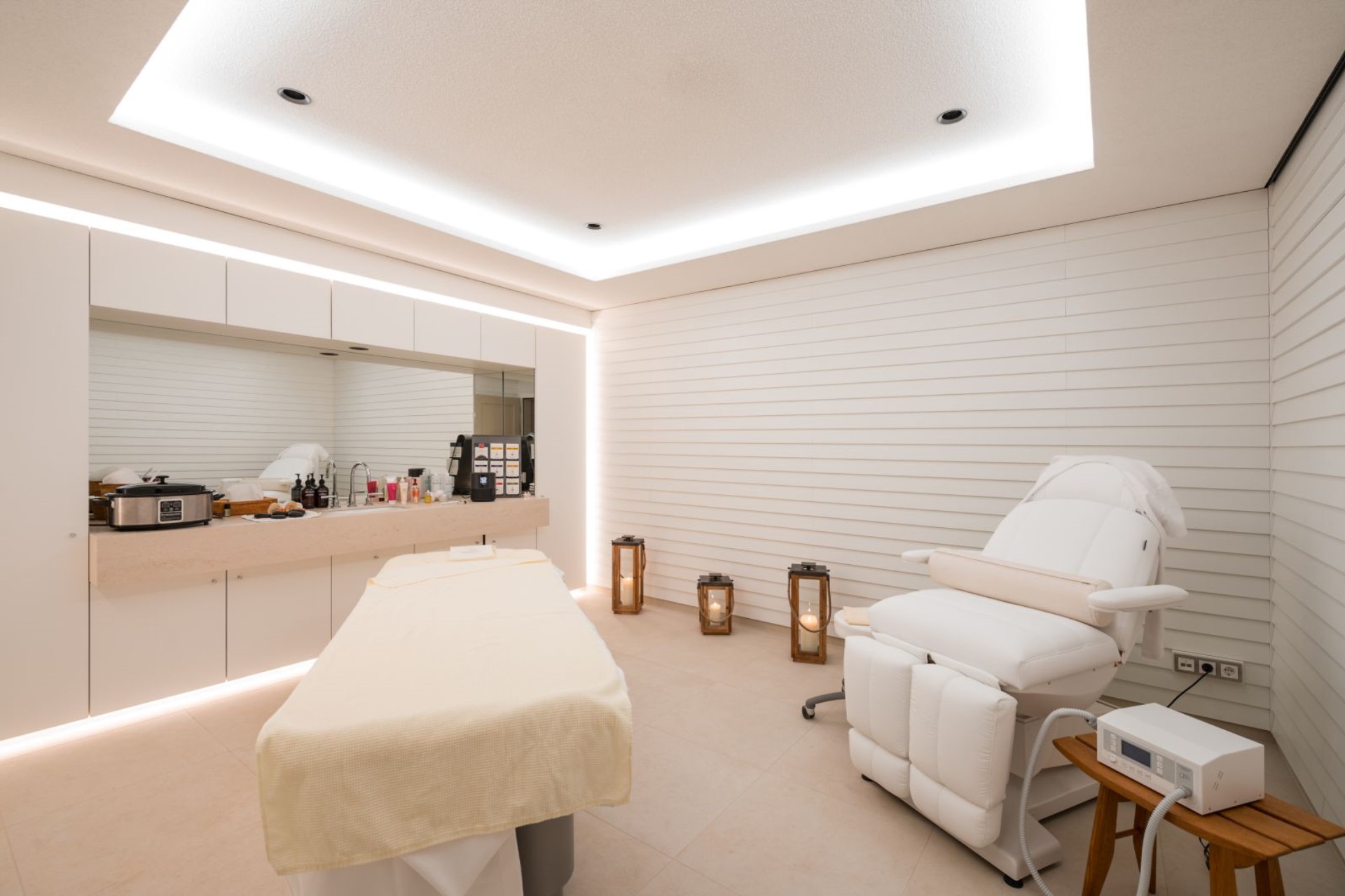 Indoors, the relaxation can continue in the vast wellness area. Along with a 14-metre swimming pool, sauna and steam bath for easing tired ski muscles, there is also an infrared cabin, a relaxation area, a vital bar with refreshments, and massage and beauty treatment rooms where in-house treatments can be arranged.