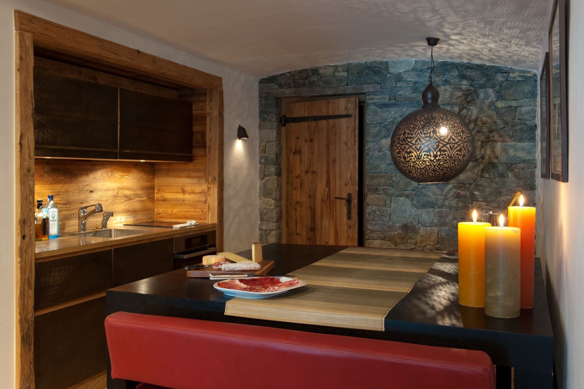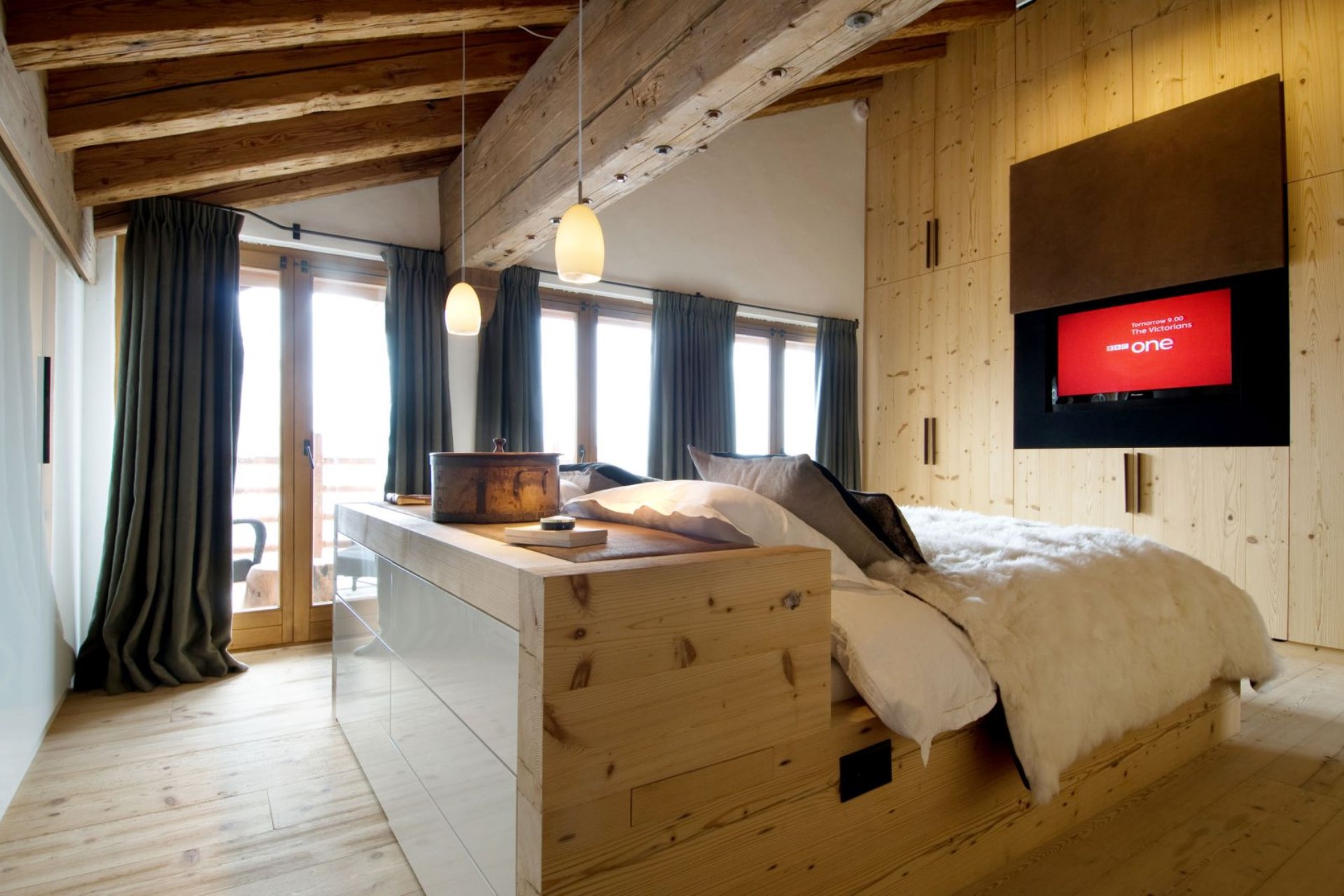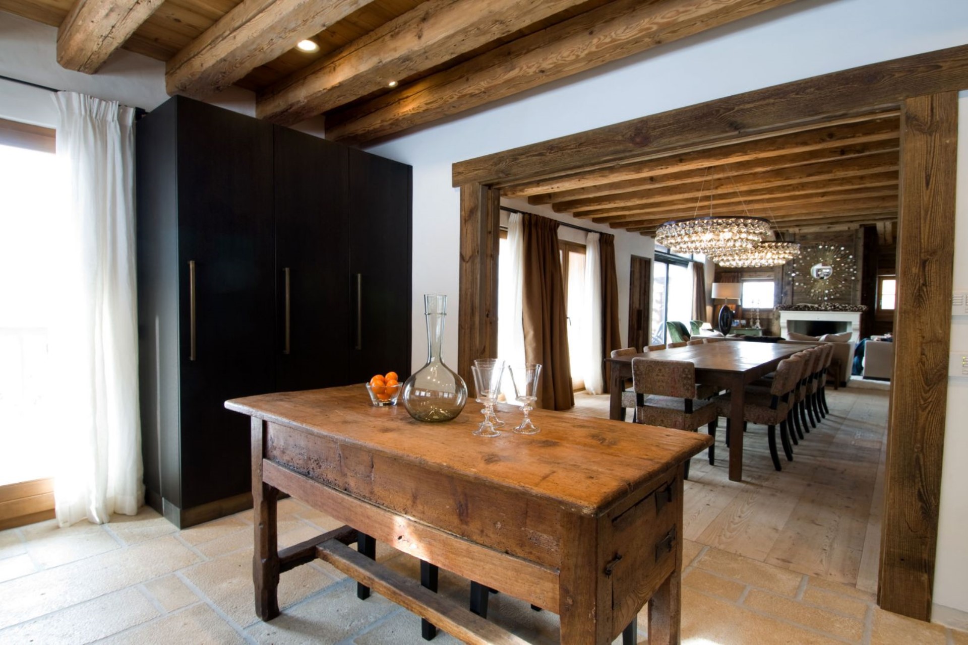 The chalet exterior has been traditionally designed using old wood, in-keeping with the local architecture. In contrast, the interior blends modern art, beautiful artefacts and furniture with a contemporary design to create the height of alpine chic.