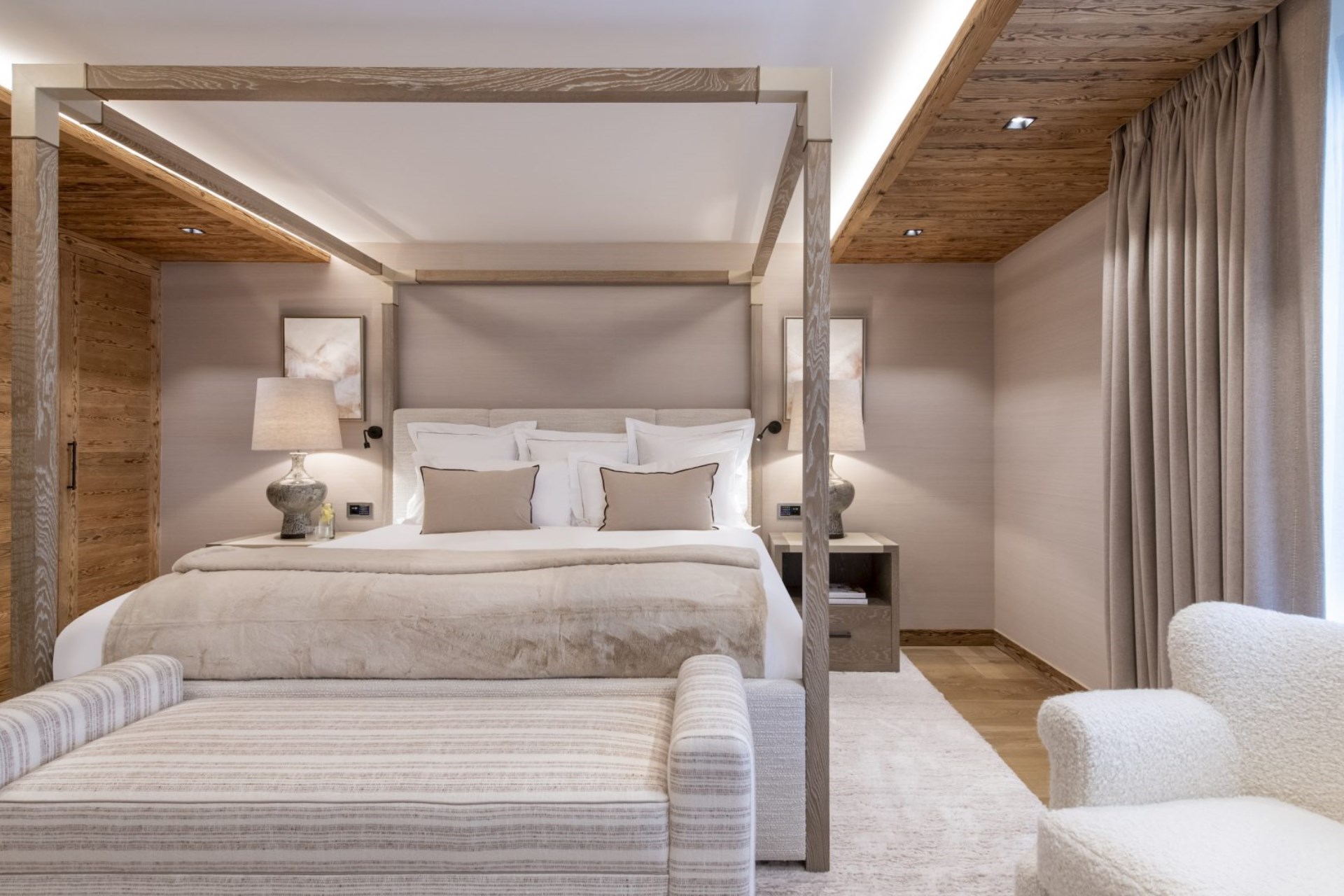 One level down lies two master bedrooms both offering panoramic views, en-suite facilities, and modern entertainment systems. Retreating to the lavish bedrooms will only enhance the feeling of luxury expected in a chalet of this league.