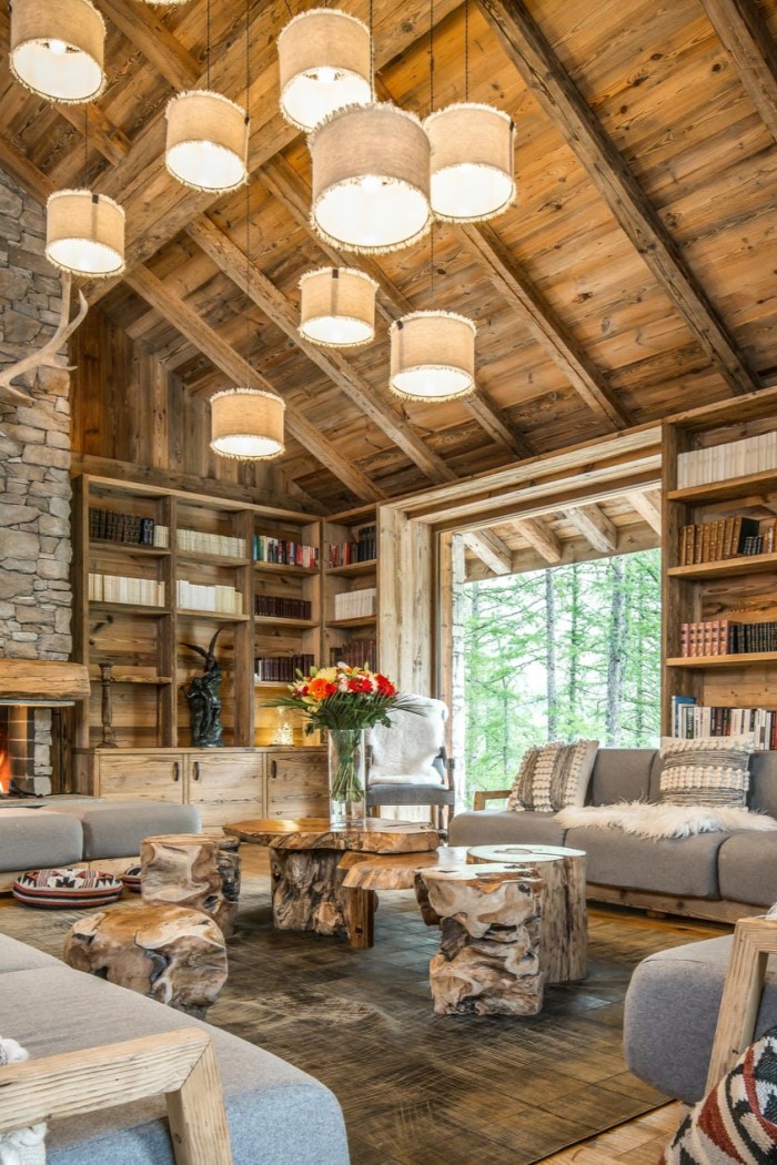 An impressive stone fireplace is surrounded by plush, oversized sofas, inviting guests to relax with a glass of champagne after a day on the slopes. Guests can savour hearty meals prepared by the private chef in the dining area, which is adorned with elegant statement lighting.