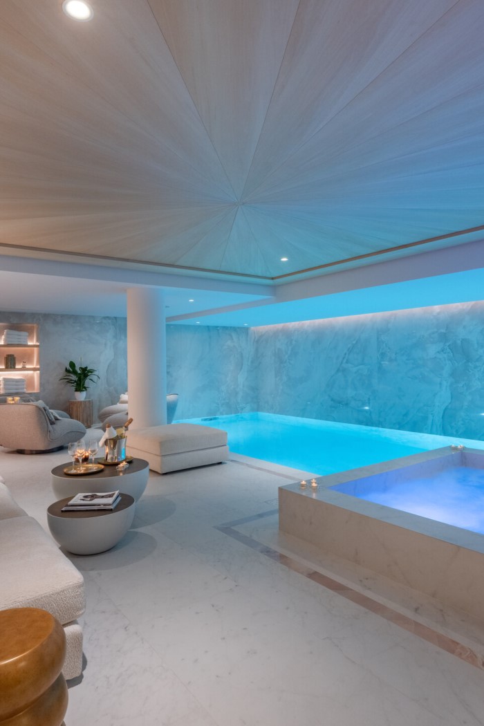 Spread over five floors, the chalet has a traditional exterior with a state-of-the-art interior, boasting luxurious and modern facilities. The numerous balconies offer some of the best views over the valley and the snow-covered mountains.