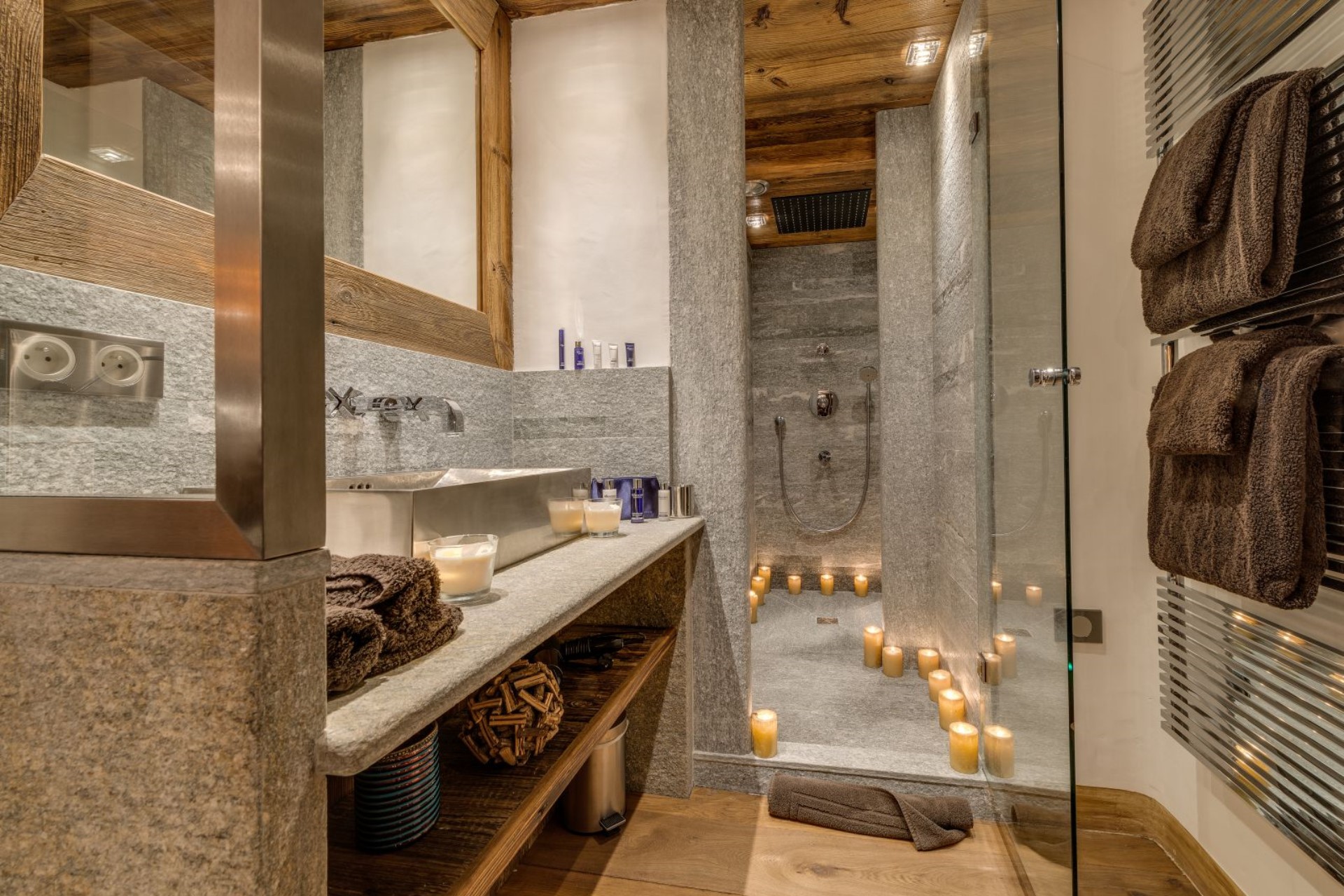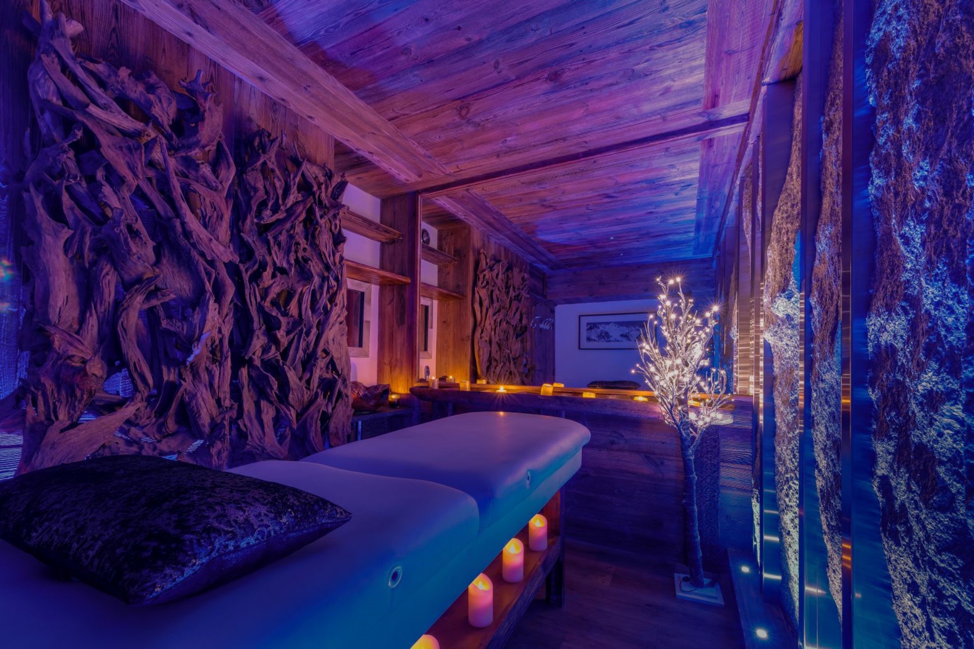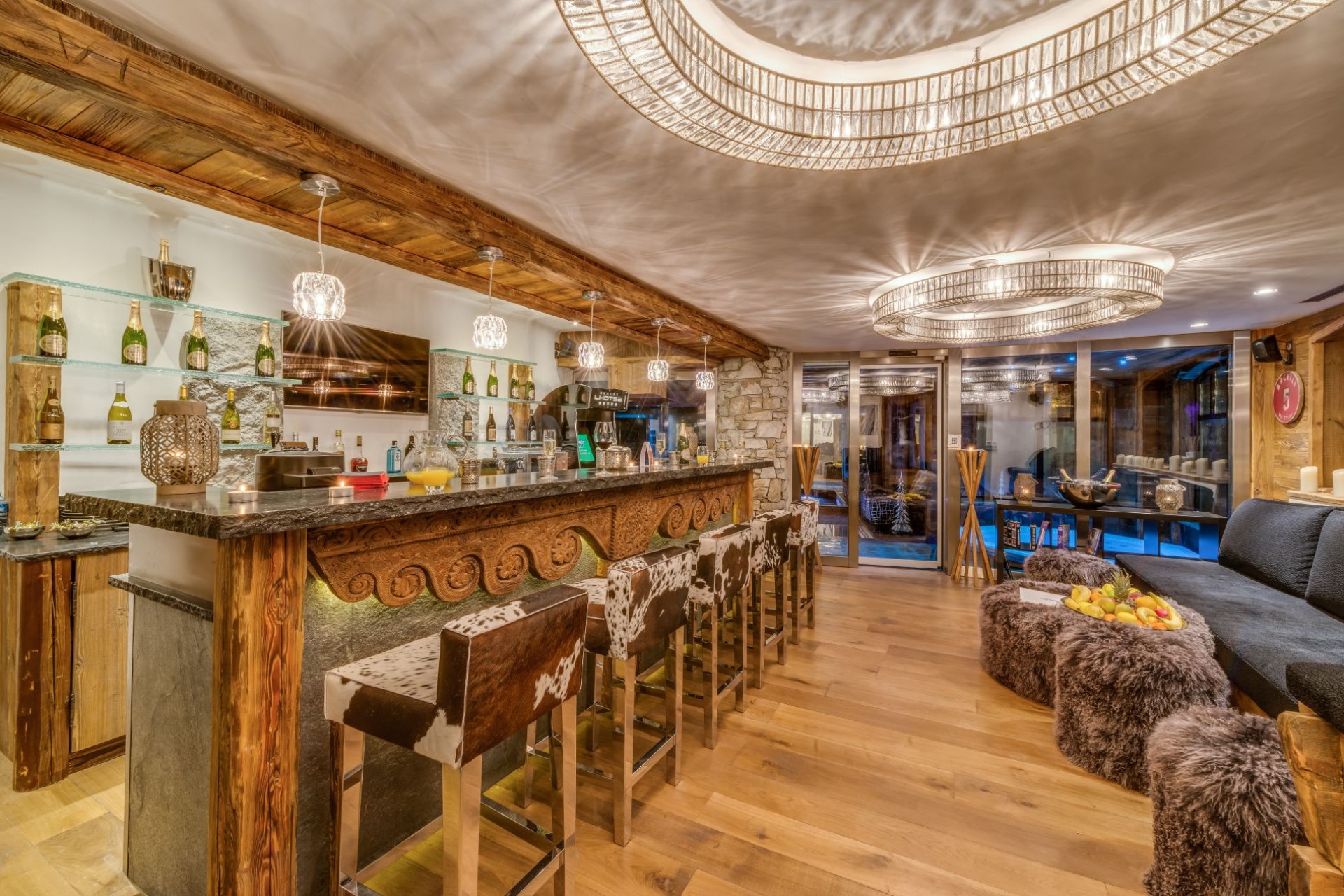 The whole ground floor of the chalet is dedicated to relaxation with extensive spa facilities. Guests can take a dip in the pool or hot tub whilst enjoying a film on the drop-down projector screen. For easing tired ski muscles, there is a sauna, hammam and massage room where in-chalet treatments can be arranged and for keeping up fitness off the slopes, guests can enjoy a fully-equipped gym. There is also a spacious relaxation area with comfortable lounge seats and a bar complete with bar games, perfect for socialising.