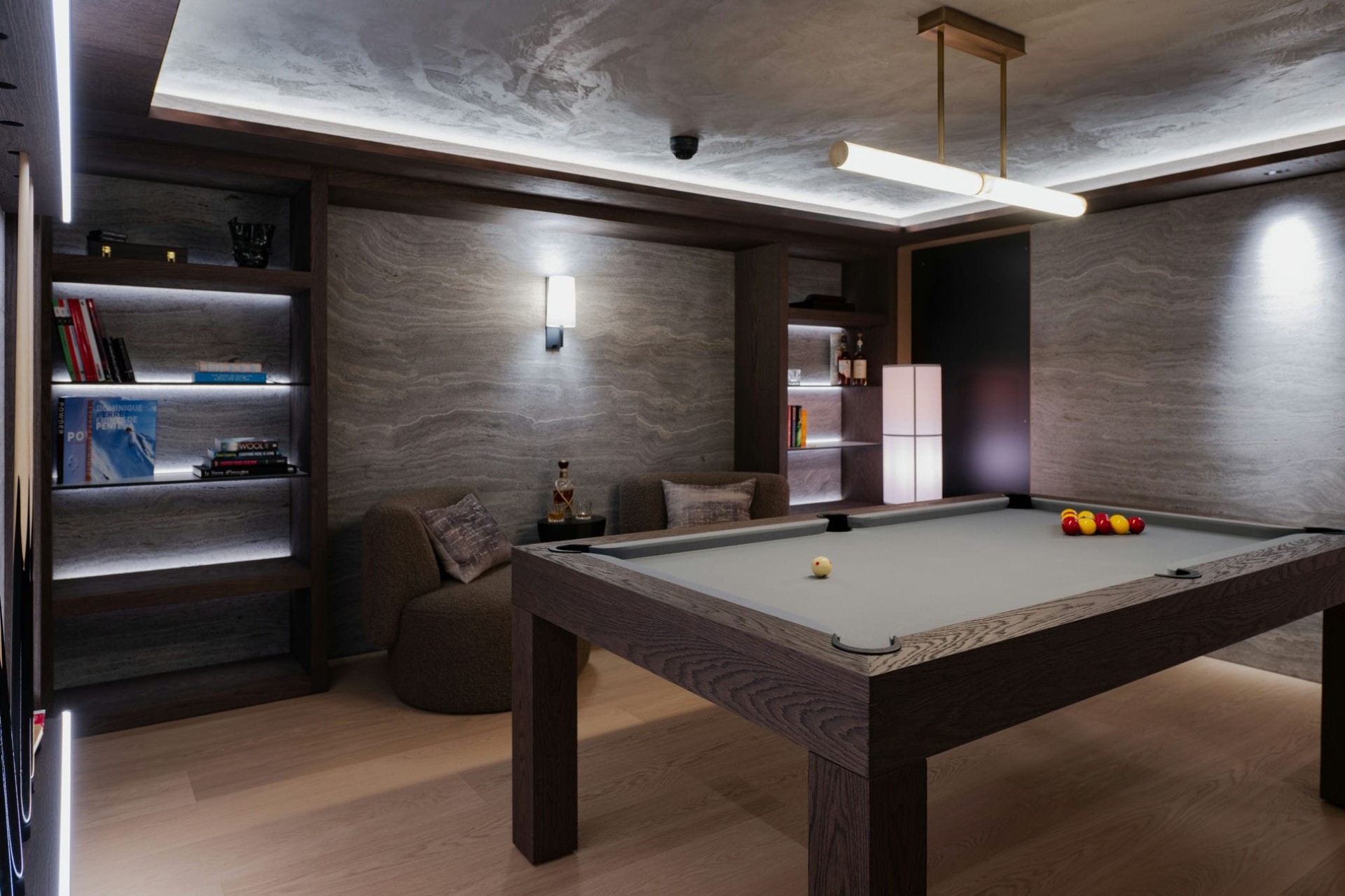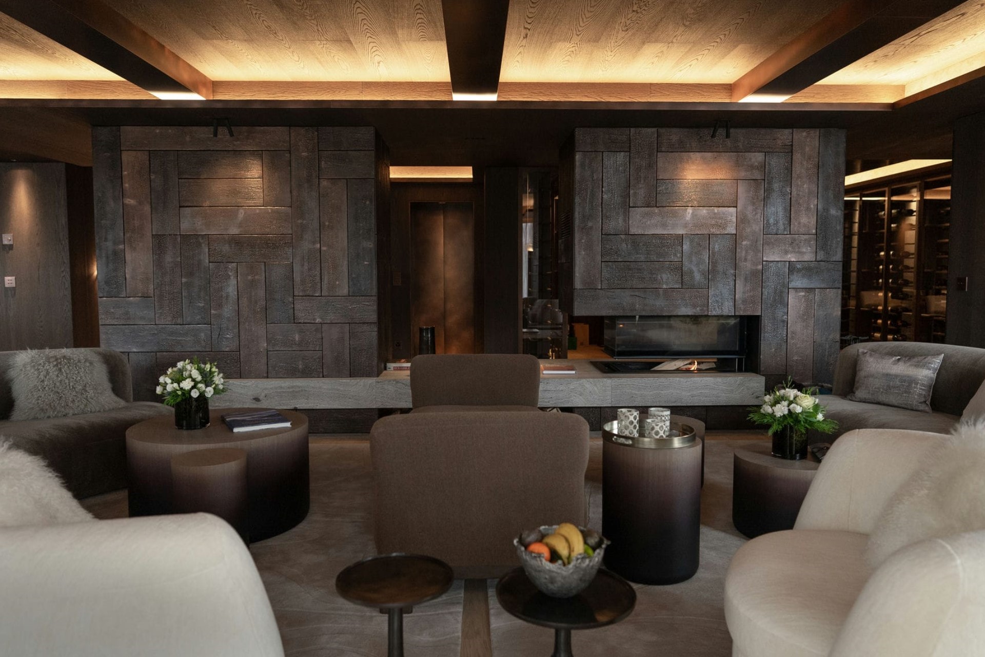 The chalet’s 1100 square metres of living space is characterised by quality fixtures, deluxe fittings and bespoke furniture, hand-made in London.