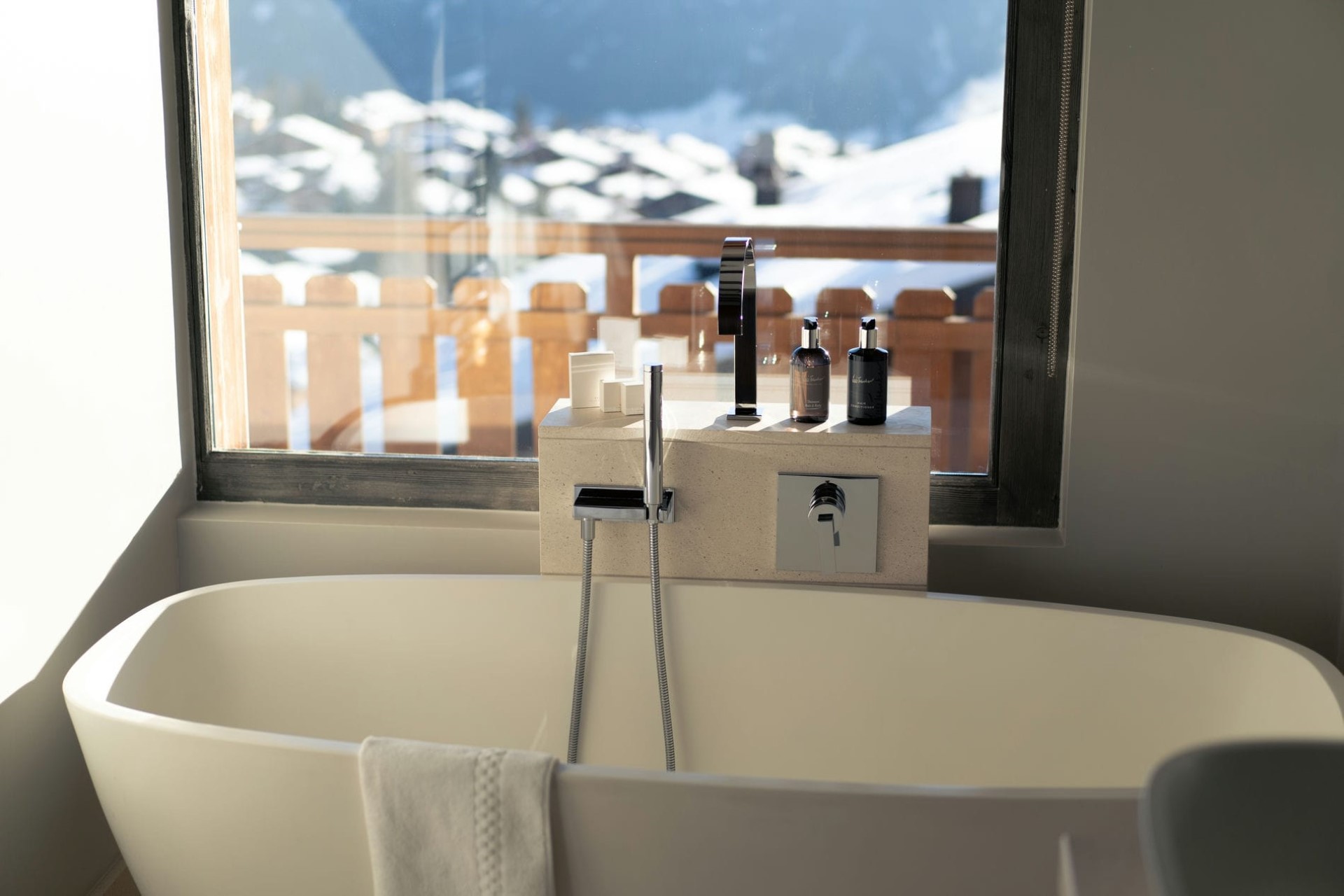 Guests can admire the unparalleled views of both the Grand Combin and Petit Combin mountains from the large private terrace, or enjoy a soak in the outdoor hot tub, whilst sipping a glass of champagne.