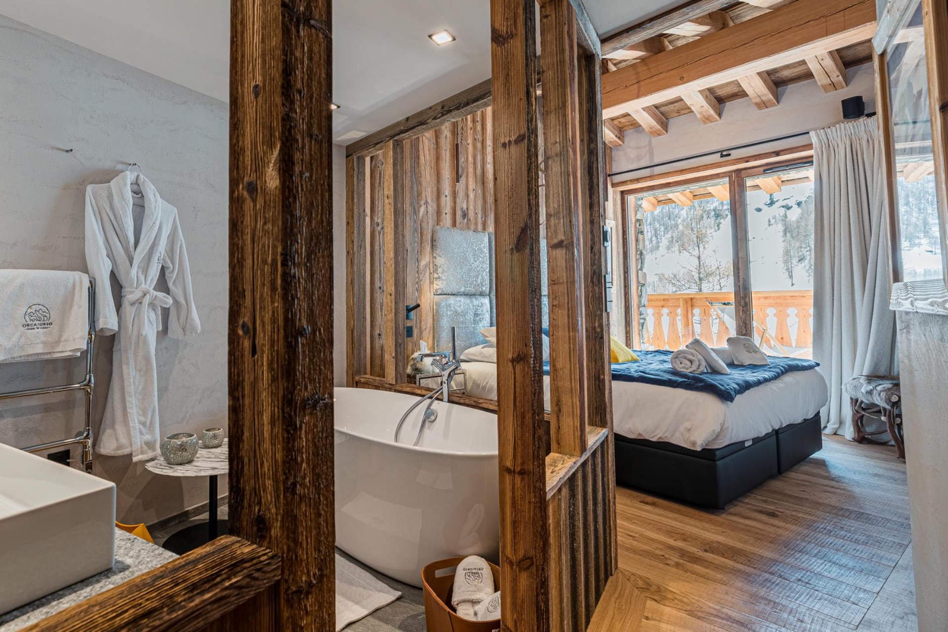 Chalet Orca is a stunning luxury chalet in the sunny hamlet of Le Fornet in Val d’Isere. Its elevated position offers breathtaking, 180-degree panoramic views of the surrounding Tarentaise peaks and the charming Old Village of Le Fornet.